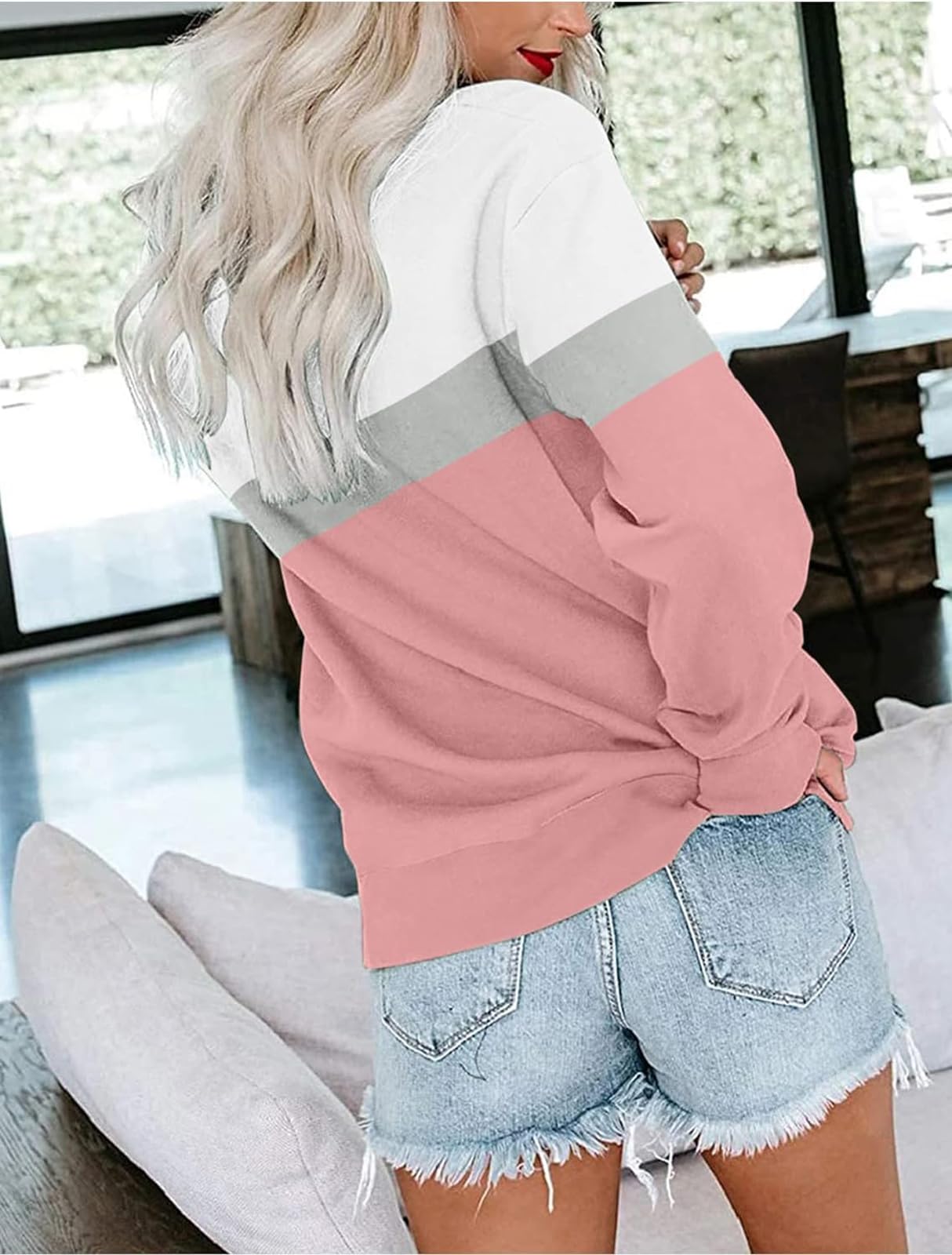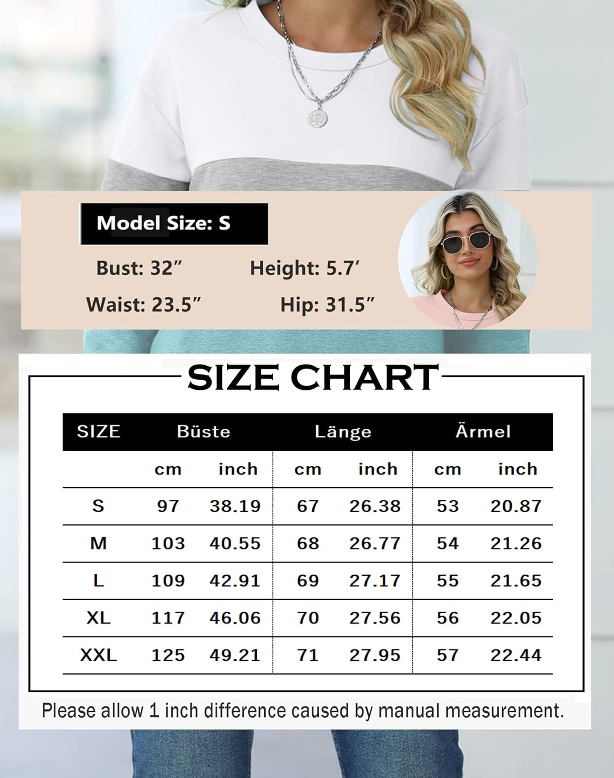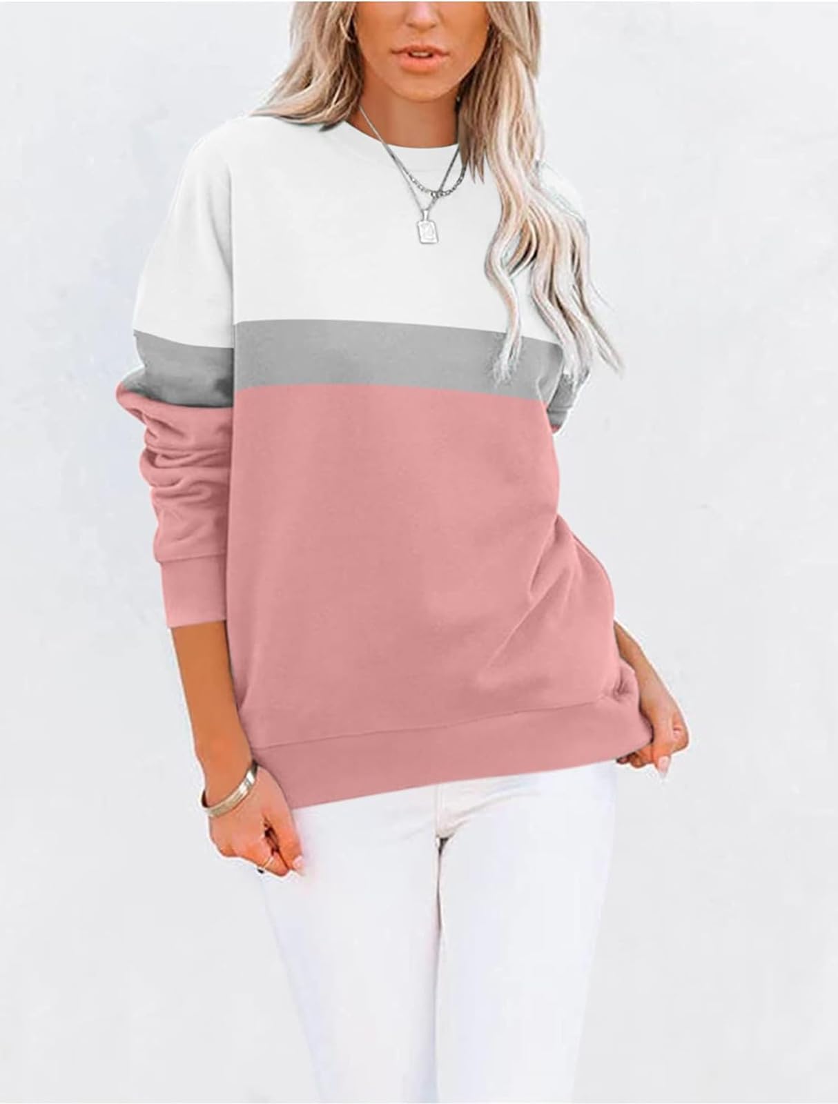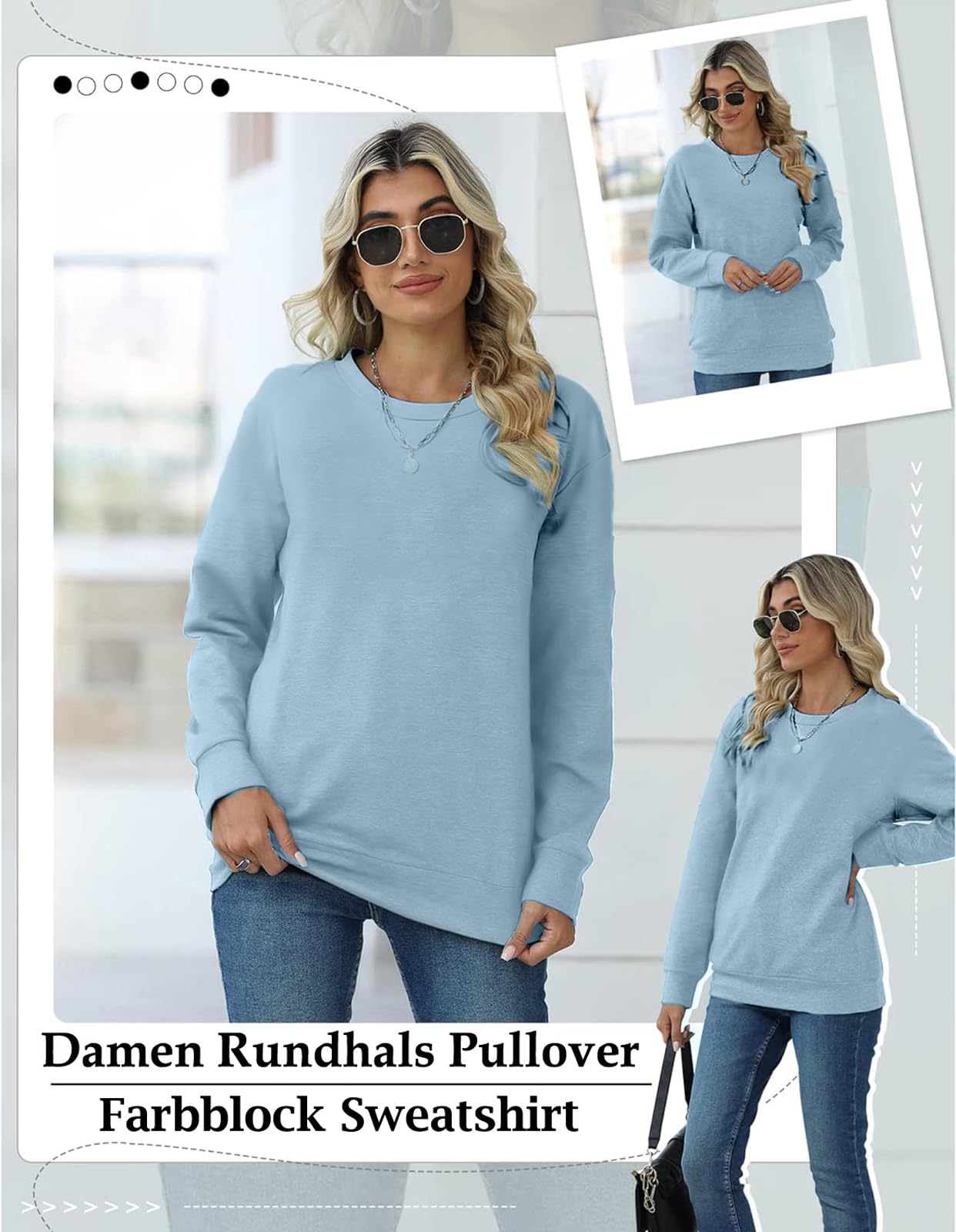 BUHIM Women’s Colorblock Sweatshirt – Casual Crewneck Long Sleeve Pullover