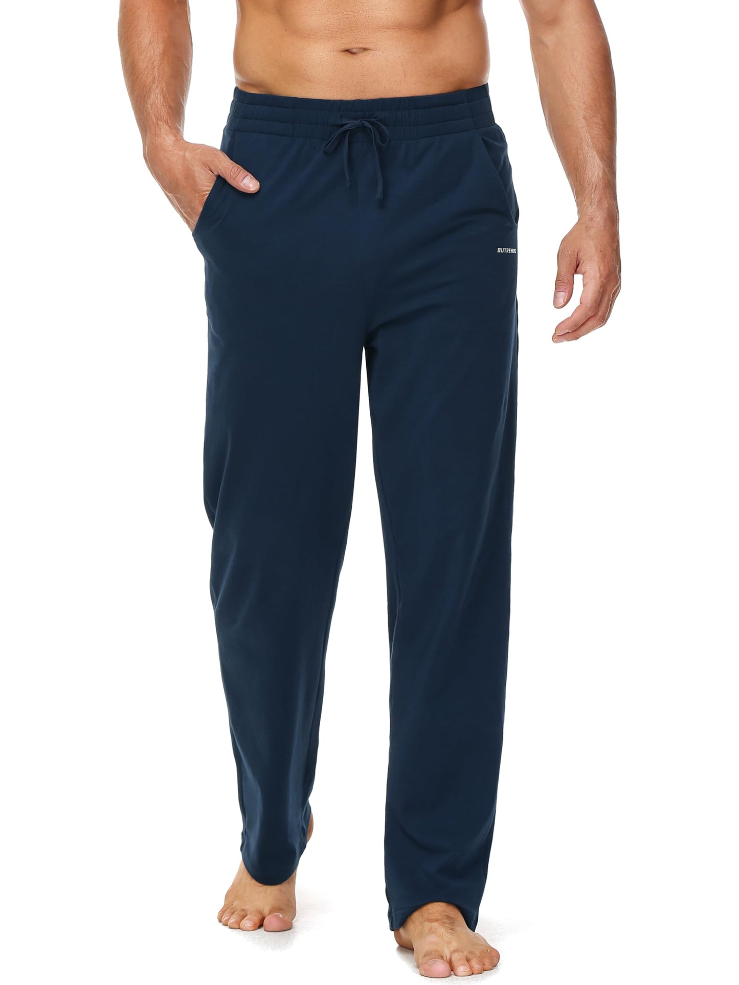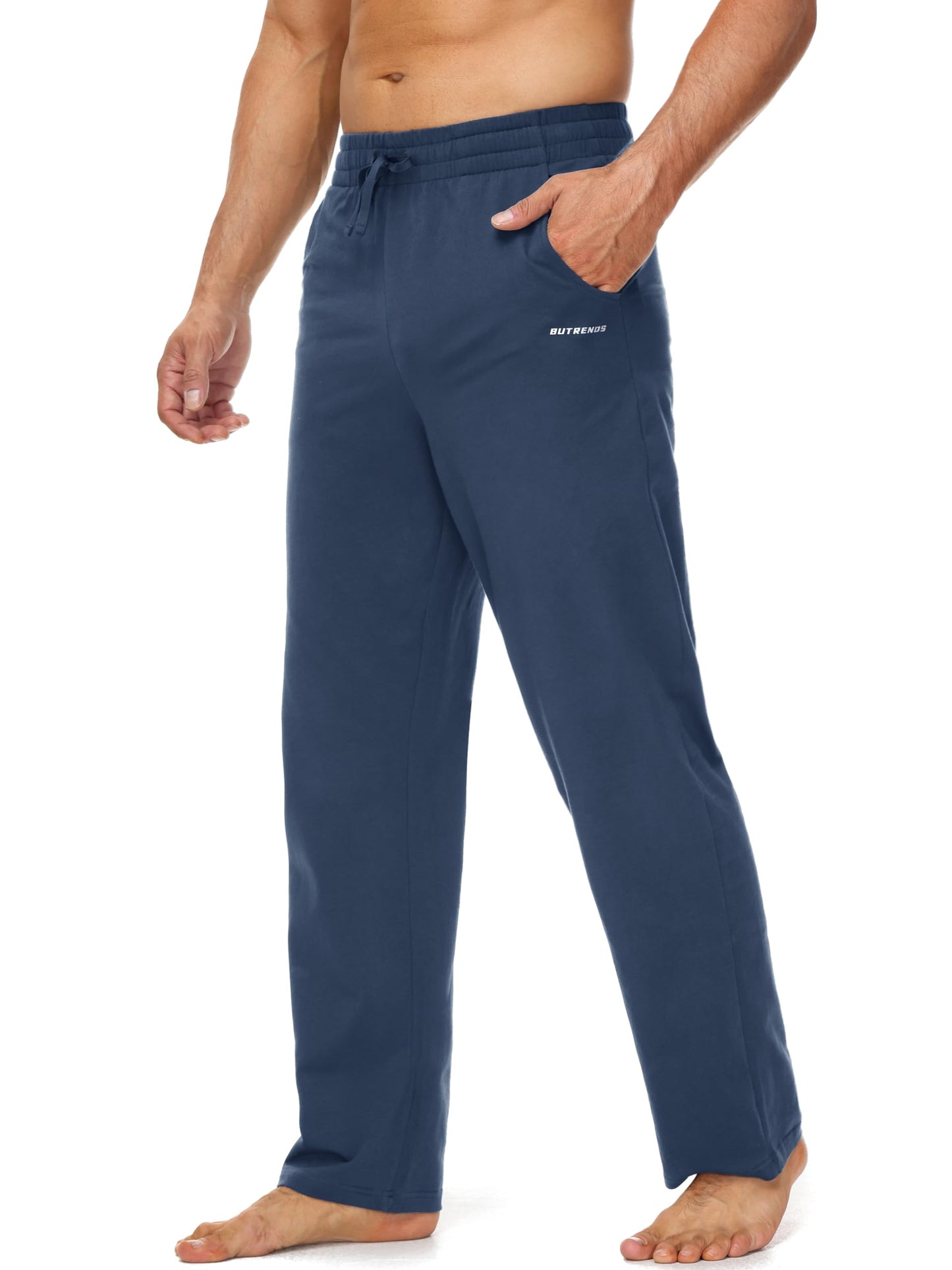 Experience ultimate comfort and mobility with Butrends men’s joggers, crafted from a soft, breathable cotton-elastane blend. These yoga-inspired sweatpants feature a relaxed fit, open-bottom design, and stretchy fabric perfect for both active movement and casual wear. Designed with a mid-rise elastic waistband and adjustable drawstring, they offer a secure fit tailored to your body. Functional side pockets keep your essentials safe whether you're training, walking, or simply unwinding at home.