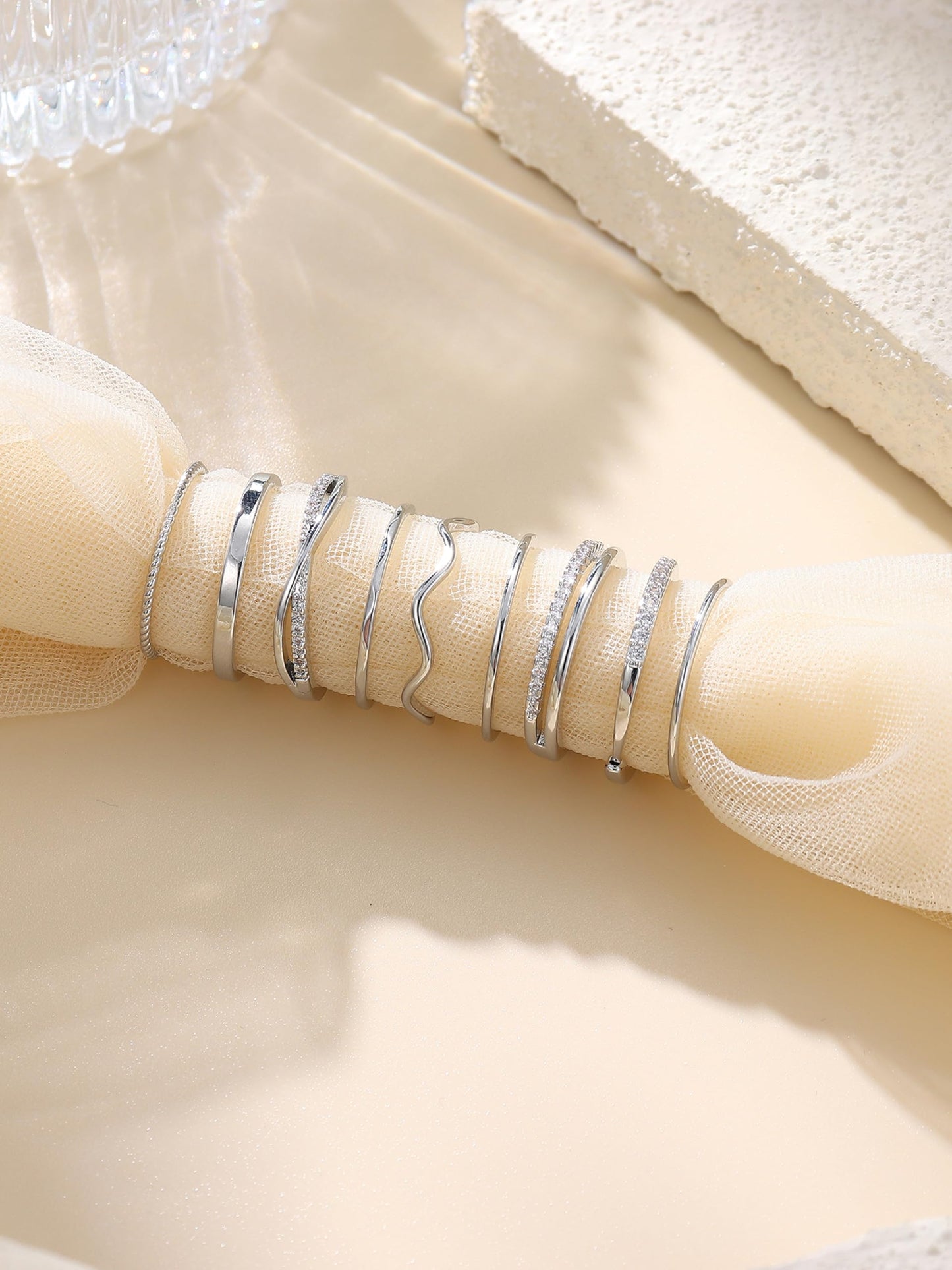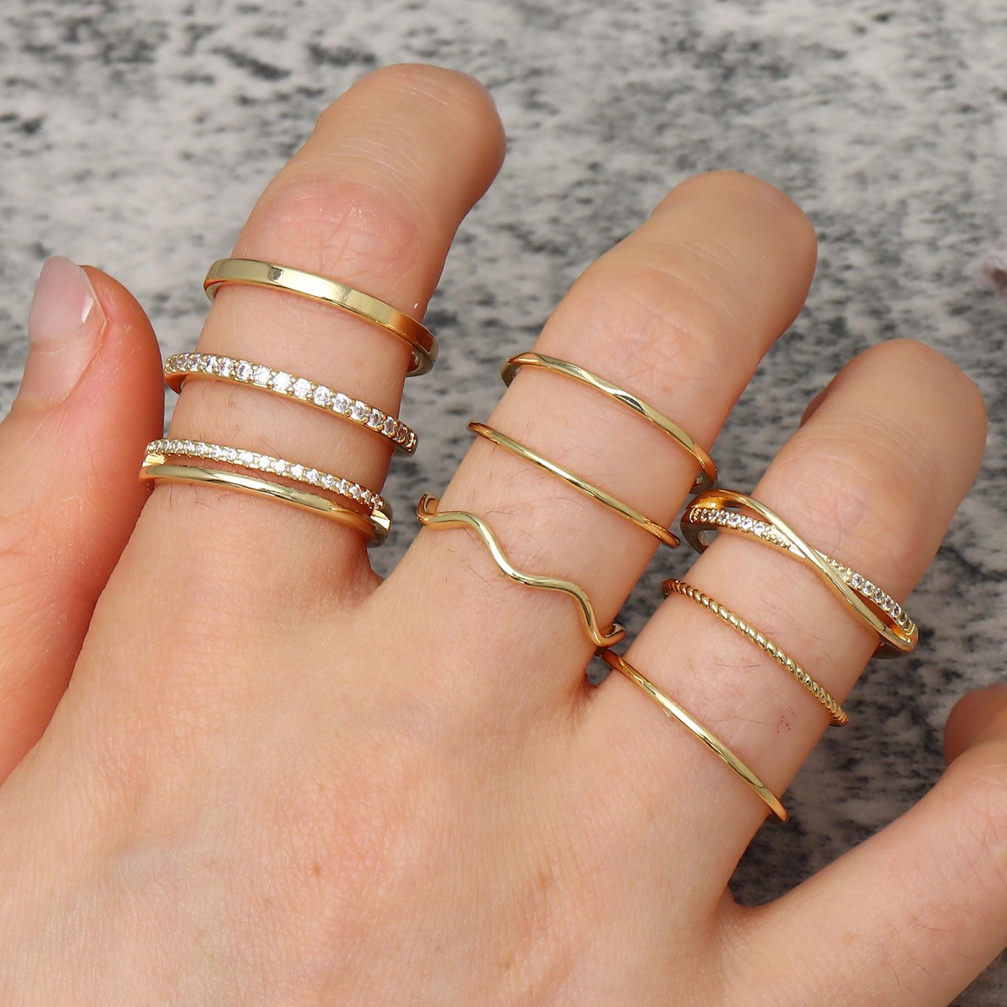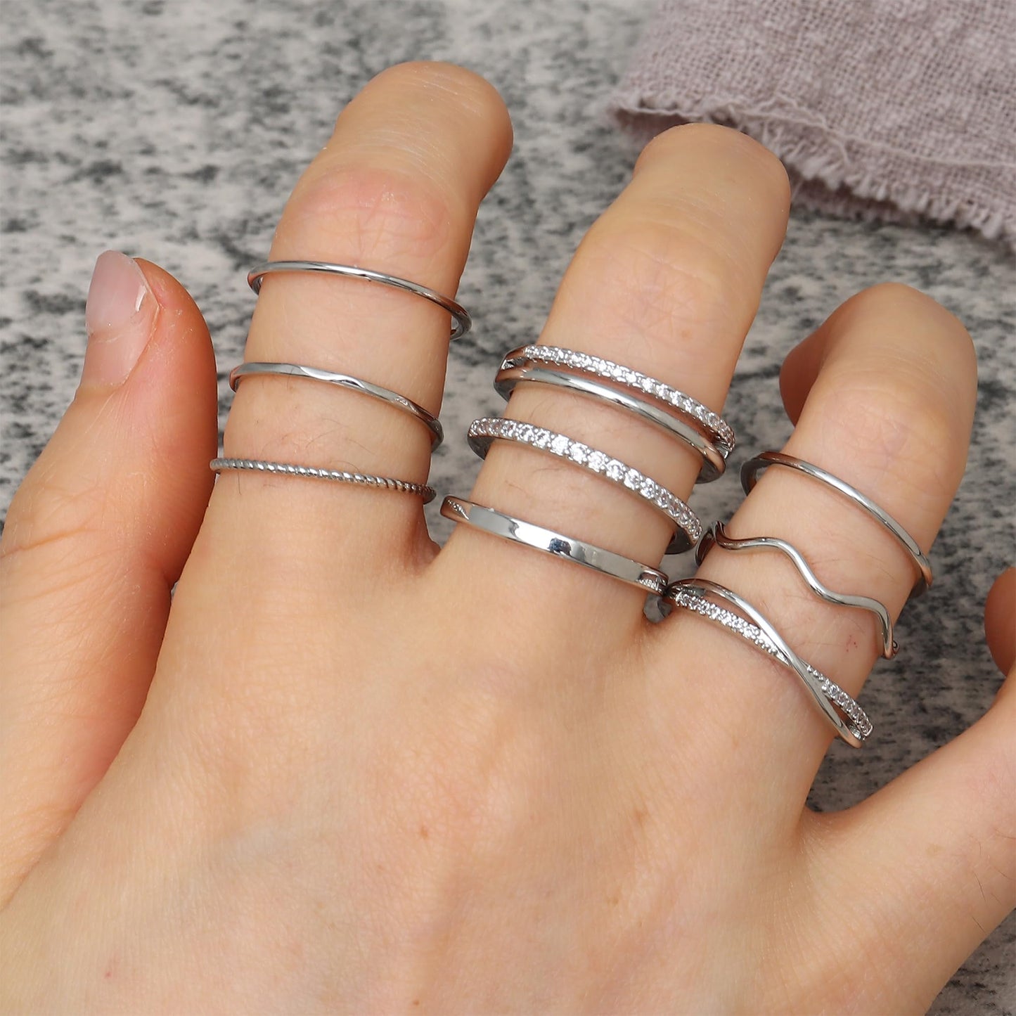 - Design: Mix of minimalist styles and sparkling cubic zirconia rings