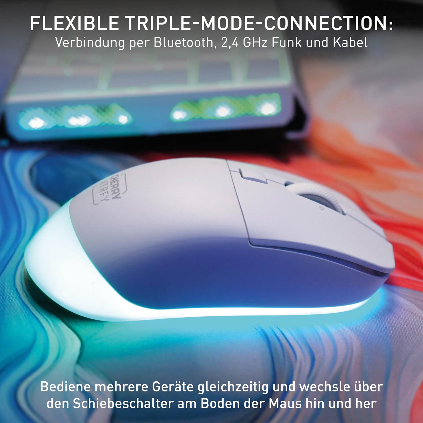 CHERRY XTRFY M50, Leichte Kabelgebundene Gaming-Maus, Ergonomische Form für Optimalen Komfort und Kontrolle, 5 On-Board-Profile, USB-A Anschluss, Weiß