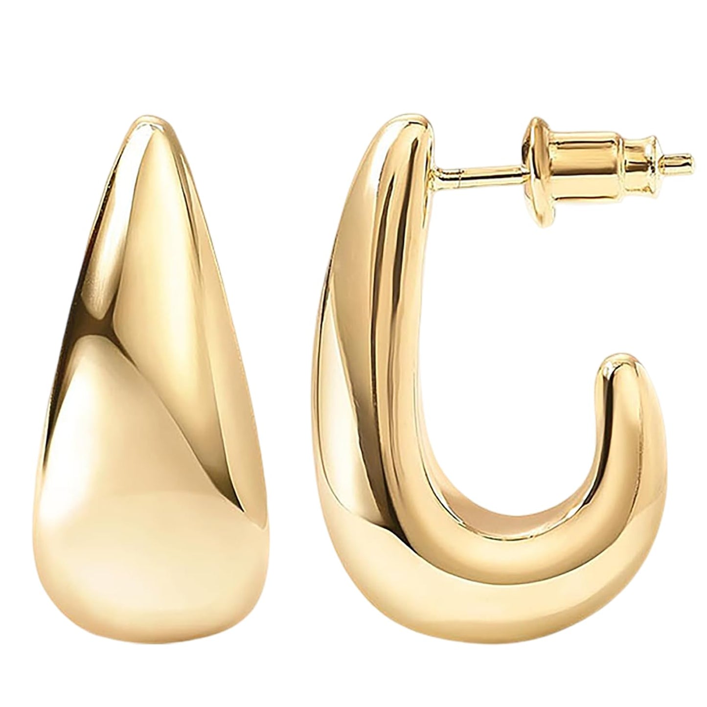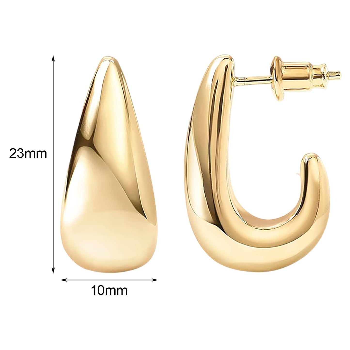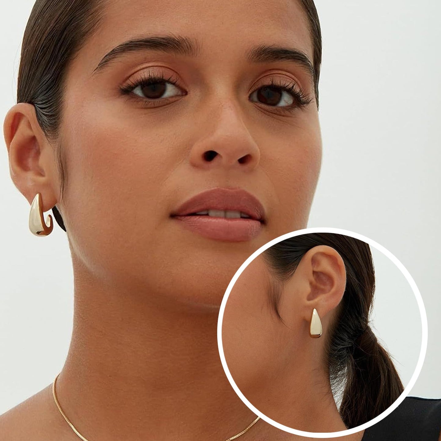 Elevate your look with these chunky yet lightweight hoop earrings, designed with a unique blend of teardrop and dome shapes. These 14K gold-plated earrings combine comfort, durability, and style – perfect for everyday wear or special occasions.