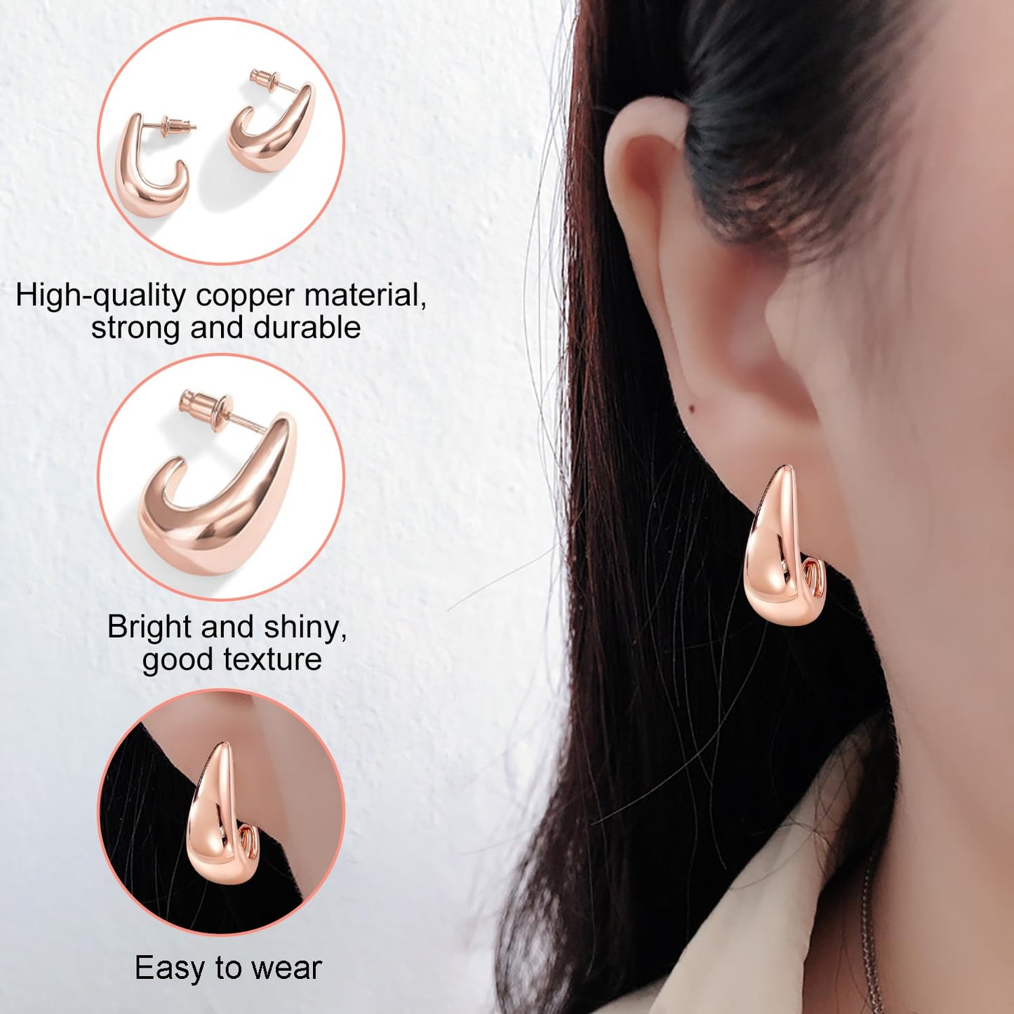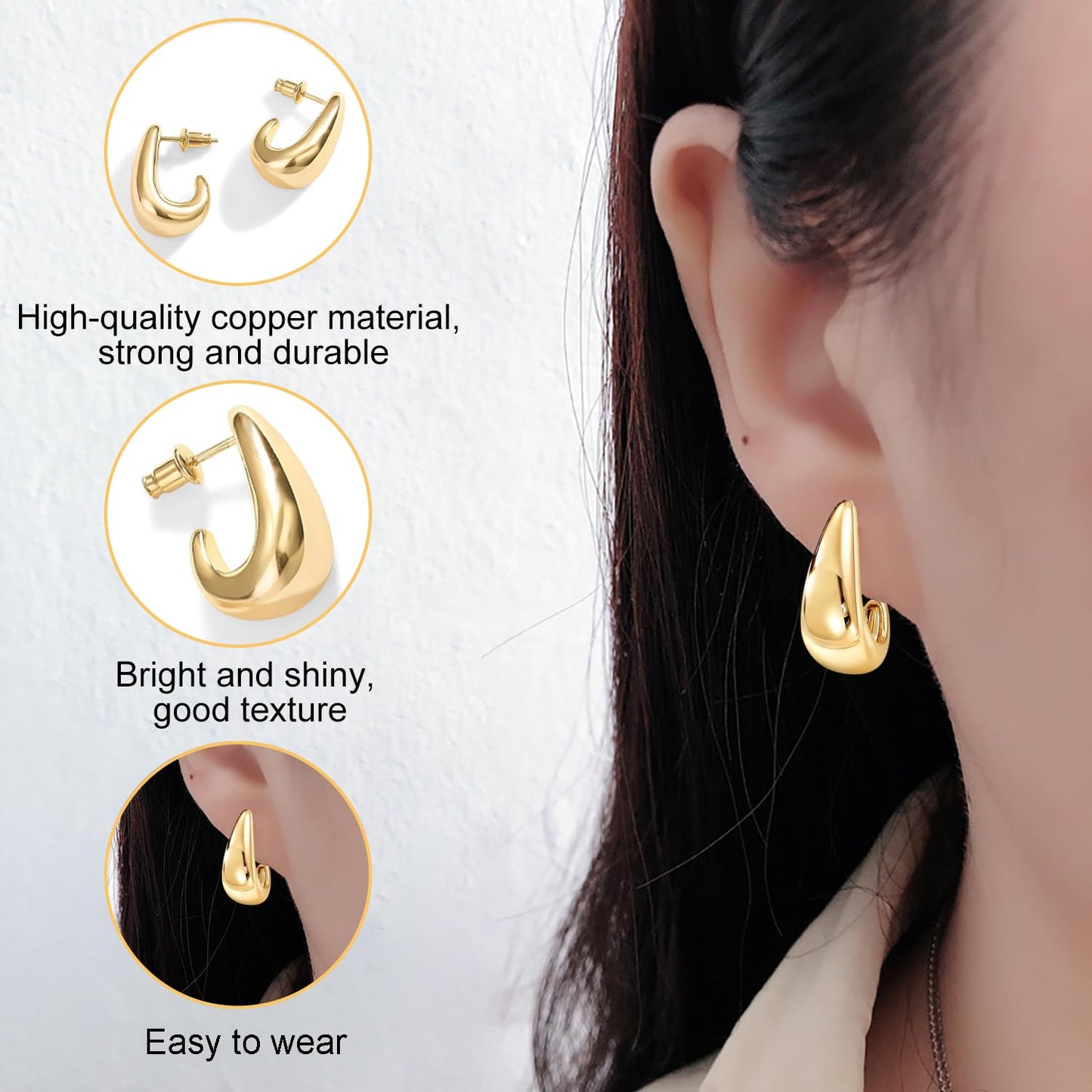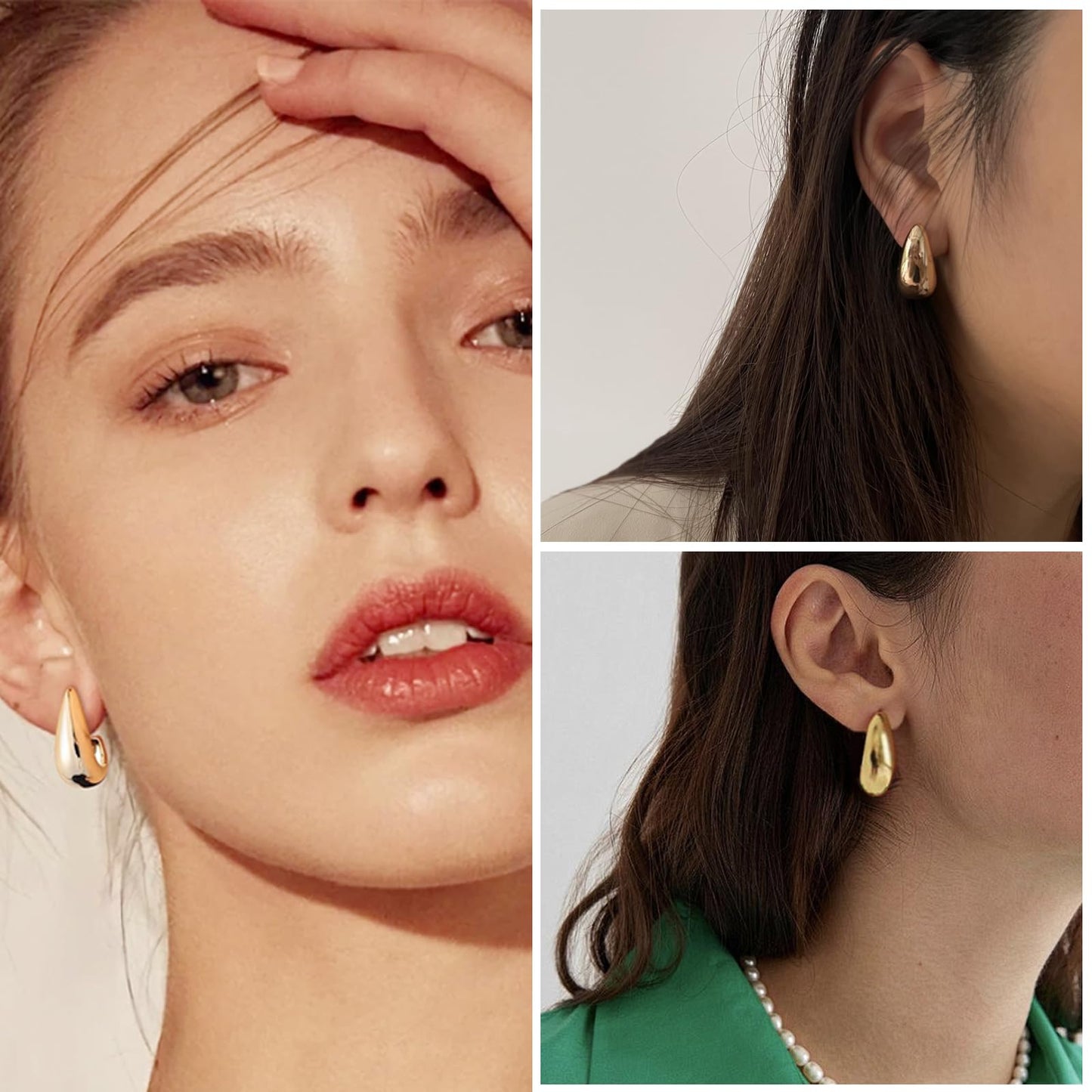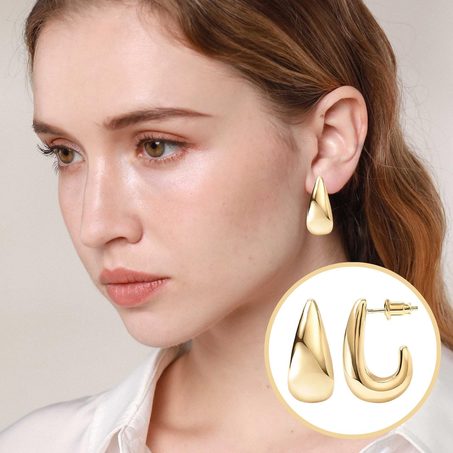 Elevate your look with these chunky yet lightweight hoop earrings, designed with a unique blend of teardrop and dome shapes. These 14K gold-plated earrings combine comfort, durability, and style – perfect for everyday wear or special occasions.