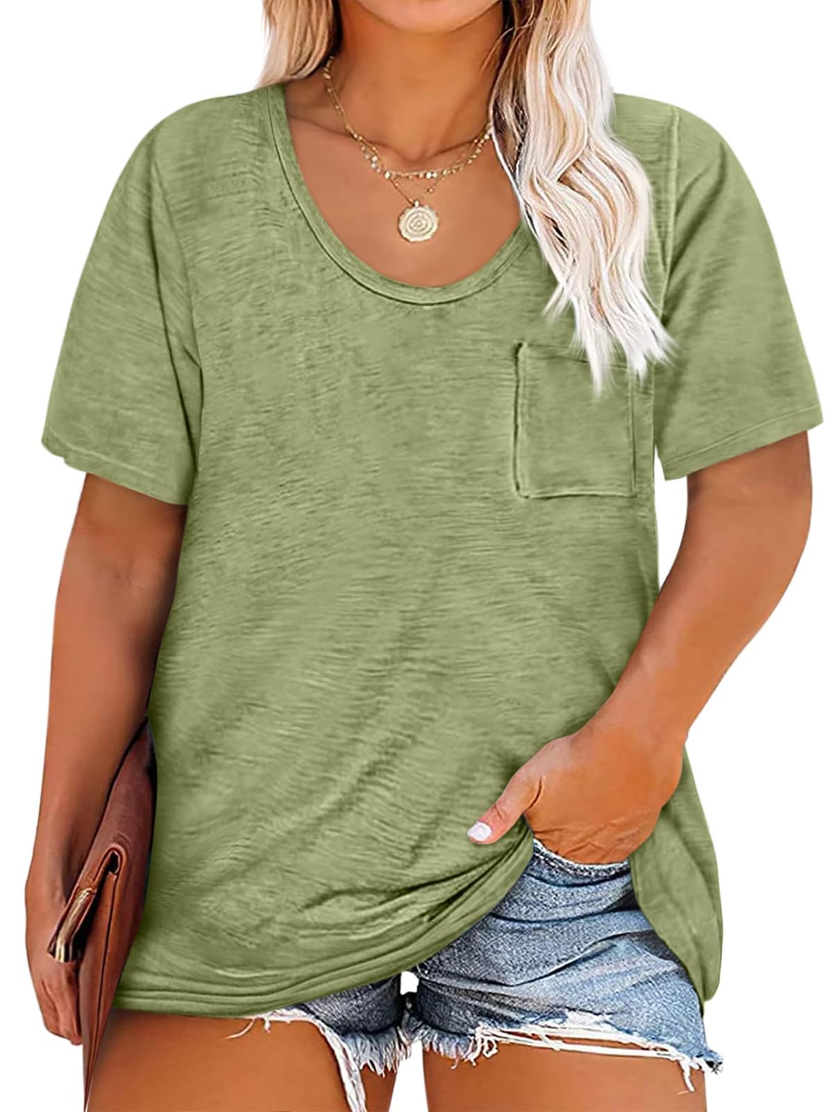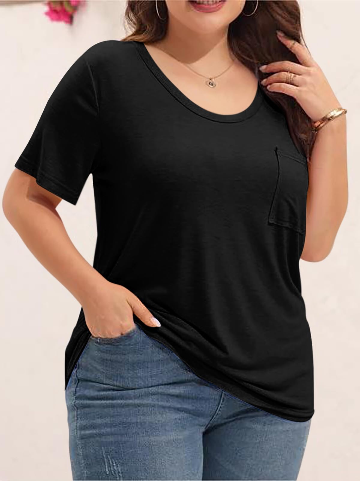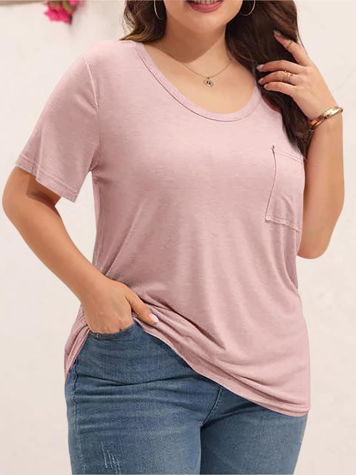 The Cicy Bell Plus Size T-Shirt is perfect for casual summer days. With a soft and breathable fabric blend, this oversized top offers both comfort and style. Featuring a relaxed fit, a classic crew neckline, and handy front pockets, it's designed for everyday wear, from home to casual outings.