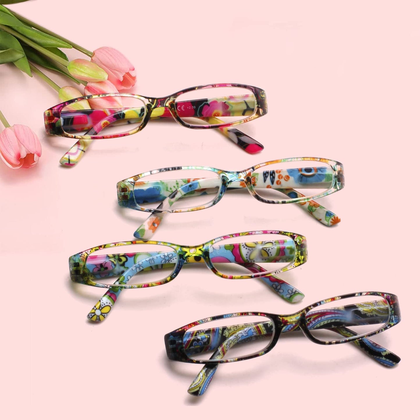 COJWIS 4 Pack Damen Lesebrille Mit Schönes Muster Brille Federscharnierleser für Frauen Reader (4 Farbe Mischen-2, 2.00, multiplier_x)