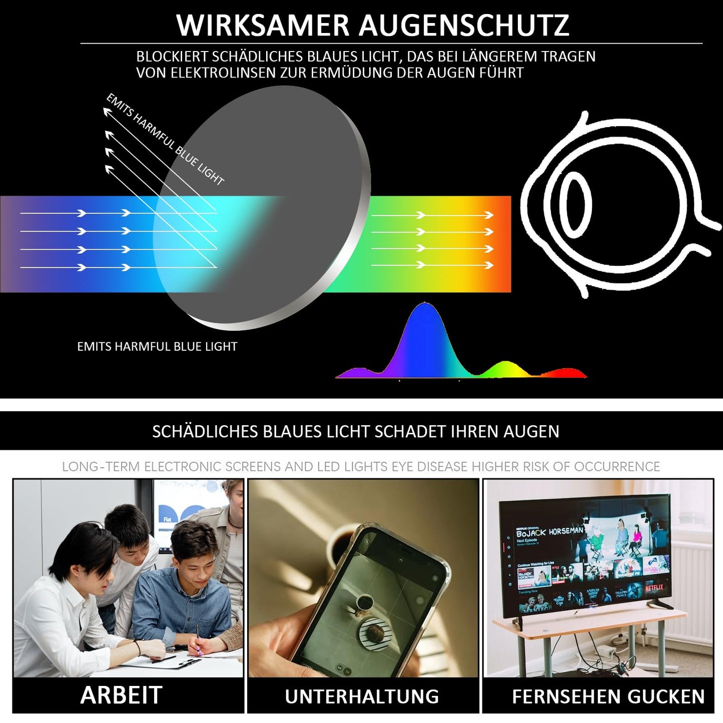 - Anti-Blaulicht gläser - COJWIS blaulicht blockierende Brille Schützen Sie Ihre Augen vor schädlichen UV-Strahlen und Blaulicht ab. Blaufilter im Brillenglas verhindern, Blenden, Ermüden, Kopfschmerzen und trockene Augen aufgrund von kurzwelligem blauen Licht, da sie dieses nicht zur Netzhaut durchlassen.