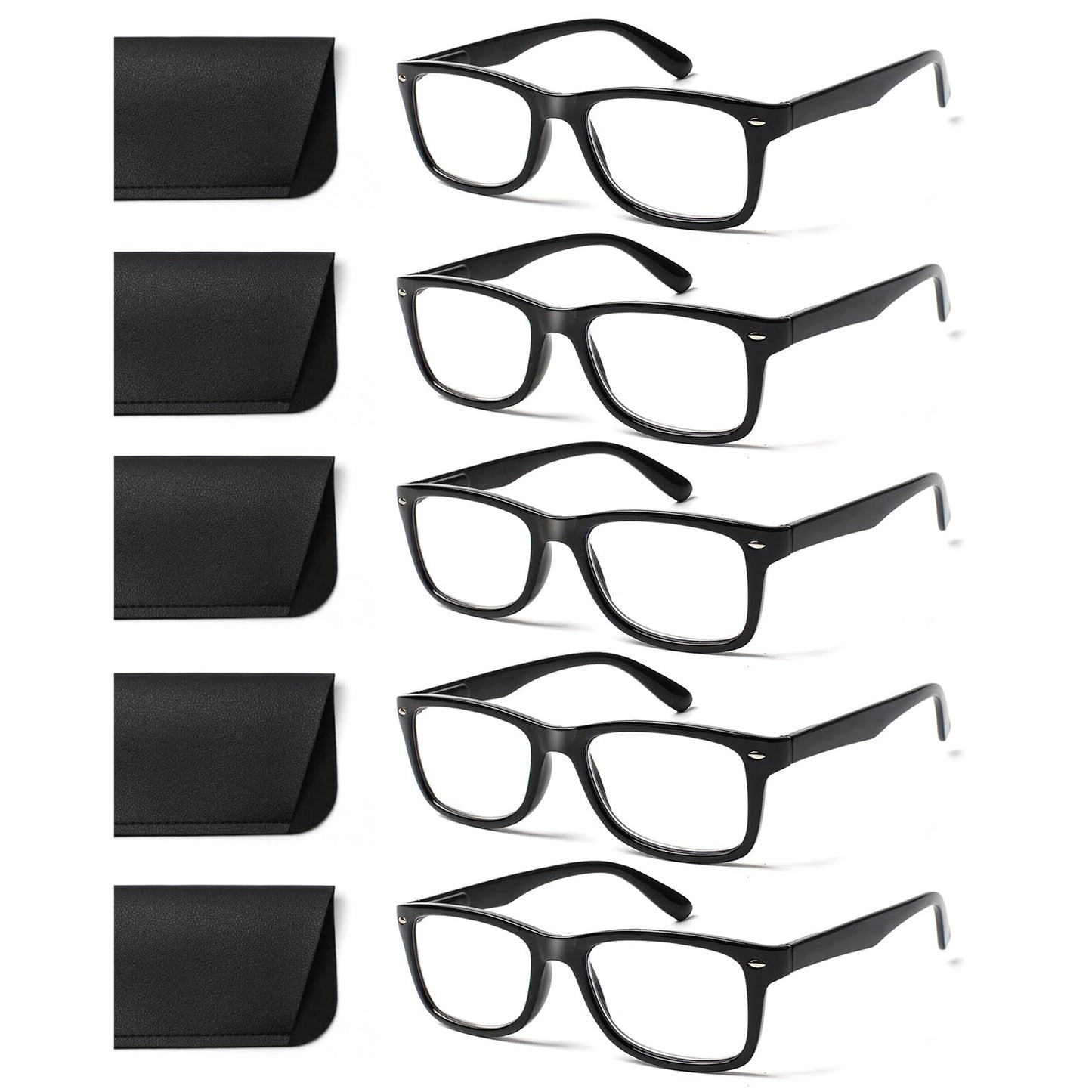 COJWIS 5 Pack Lesebrille Blaulichtfilter Brille Herren Damen Schwarz Leser Computer Brillen Feder Scharnier Lesebrillen (5 Schwarz, 2.75, Dioptrien)