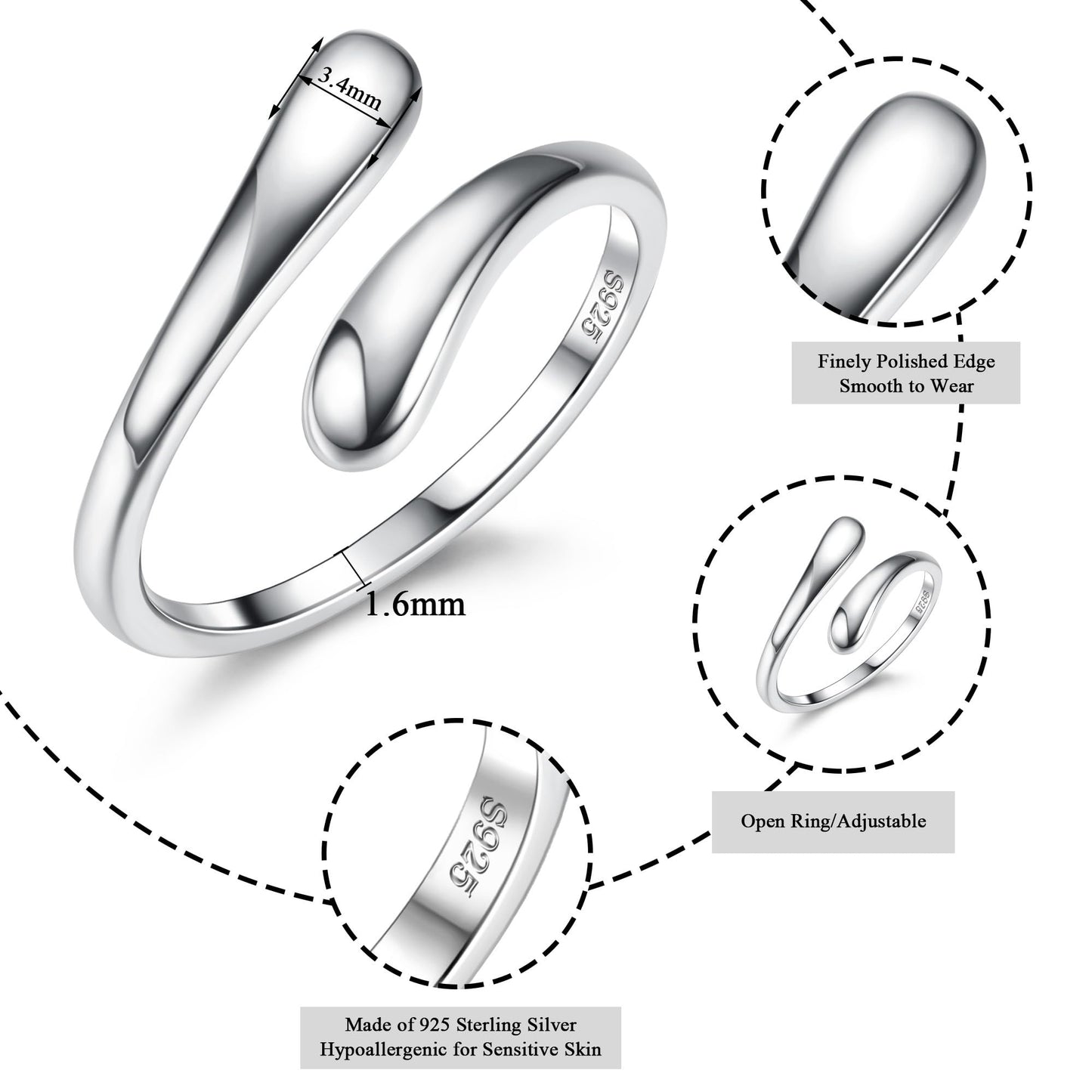 Diamday 925 Sterling Silver Adjustable Teardrop & Chunky Ring