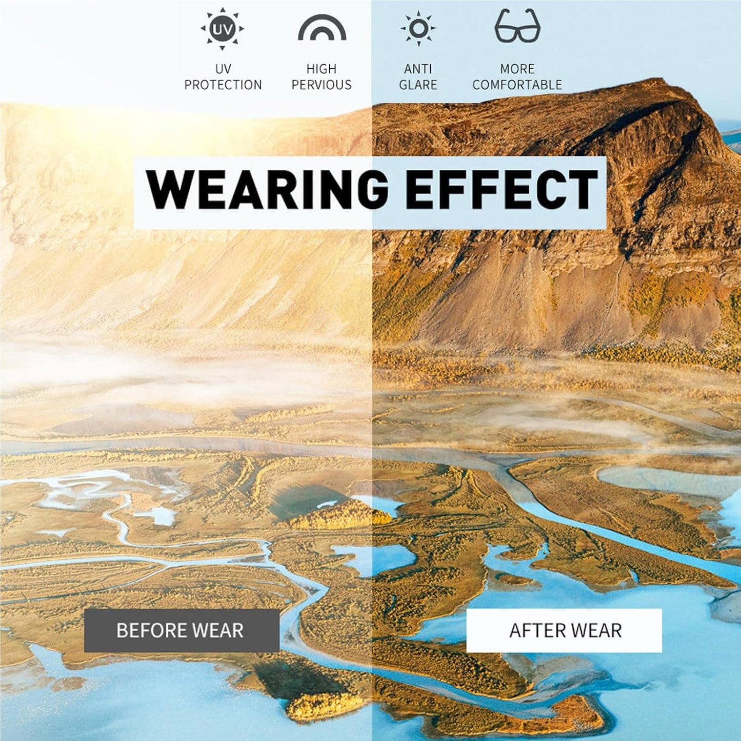 - 【Linseneffekt】Unsere Brillen verwenden hochwertige polarisierte Linsen, um Ihnen eine hochauflösende Sicht in der Sonne zu bieten. Sie können ultraviolette Strahlen effektiv verhindern und Blendung blockieren. Das Linsenmaterial ist leicht zu reinigen und nicht leicht zu zerbrechen.