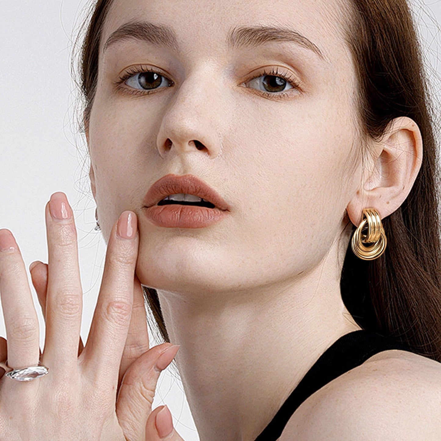 Make a bold statement with the Dochais Knot Drop Earrings. These 14k gold-plated earrings feature an elegant knot design, combining both modern style and timeless sophistication. Crafted from 316L stainless steel, these chunky drop earrings are hypoallergenic, lightweight, and durable, perfect for everyday wear or special occasions.