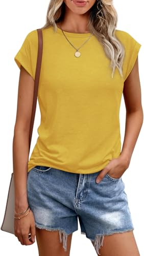 The ELFIN Women’s Round Neck Short Sleeve T-Shirt is a comfortable and stylish choice for warm summer days. Featuring a classic round neckline and wing sleeves, this basic tee is versatile and perfect for any casual occasion. Made from a soft, breathable fabric, it pairs effortlessly with leggings, shorts, jeans, or skirts for a relaxed, stylish look.