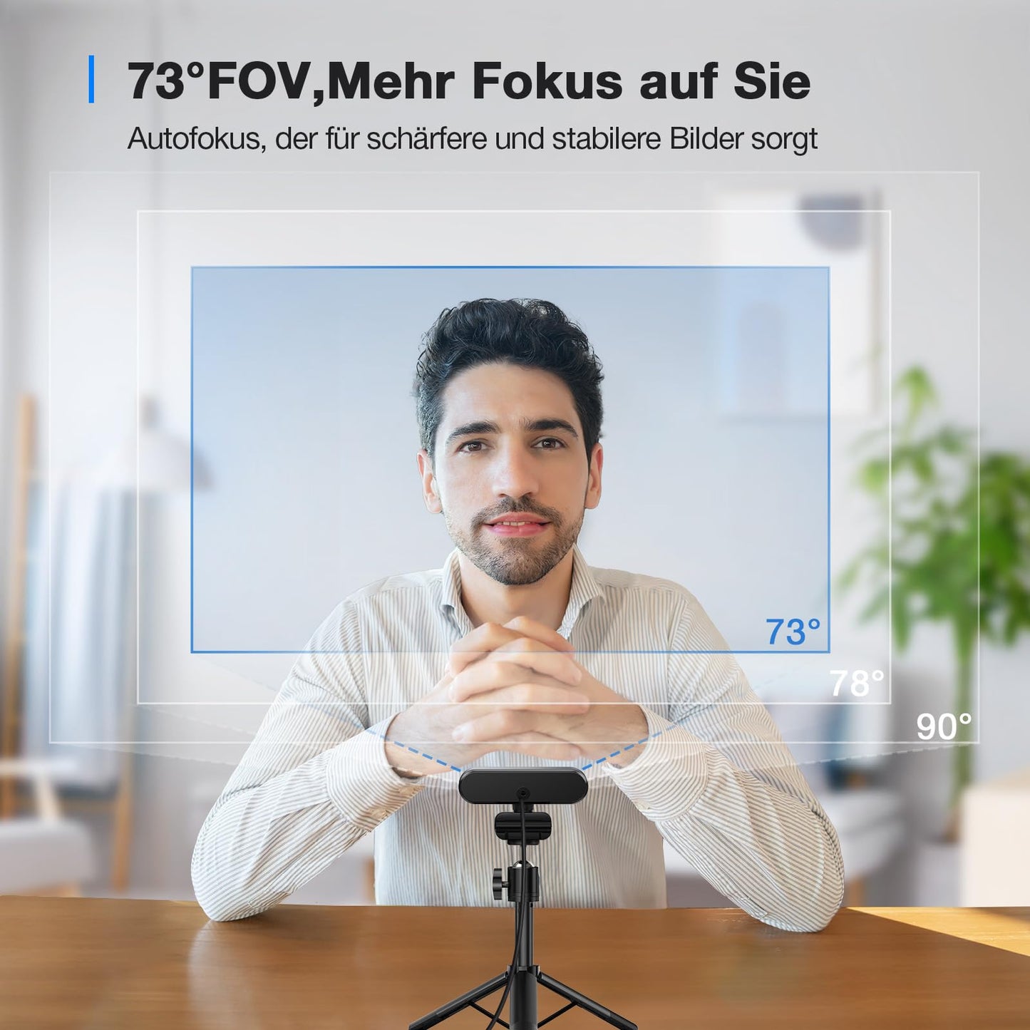 - 【Automatische Lichtkorrektur & 90° Sichtfeld】Die Streaming Kamera Überlegene Automatische Lichtkorrektur reduziert die Körnigkeit und bringt Details in dunkleren Umgebungen zur Geltung. Die eMeet Computer Webcam ist immer alles scharf eingestellt, egal welche Lichtverhältnisse herrschen. Das 90° Sichtfeld der Streaming Kamera ist groß genug, alle in der Videokonferenz zu sehen und alle Einzelheiten.