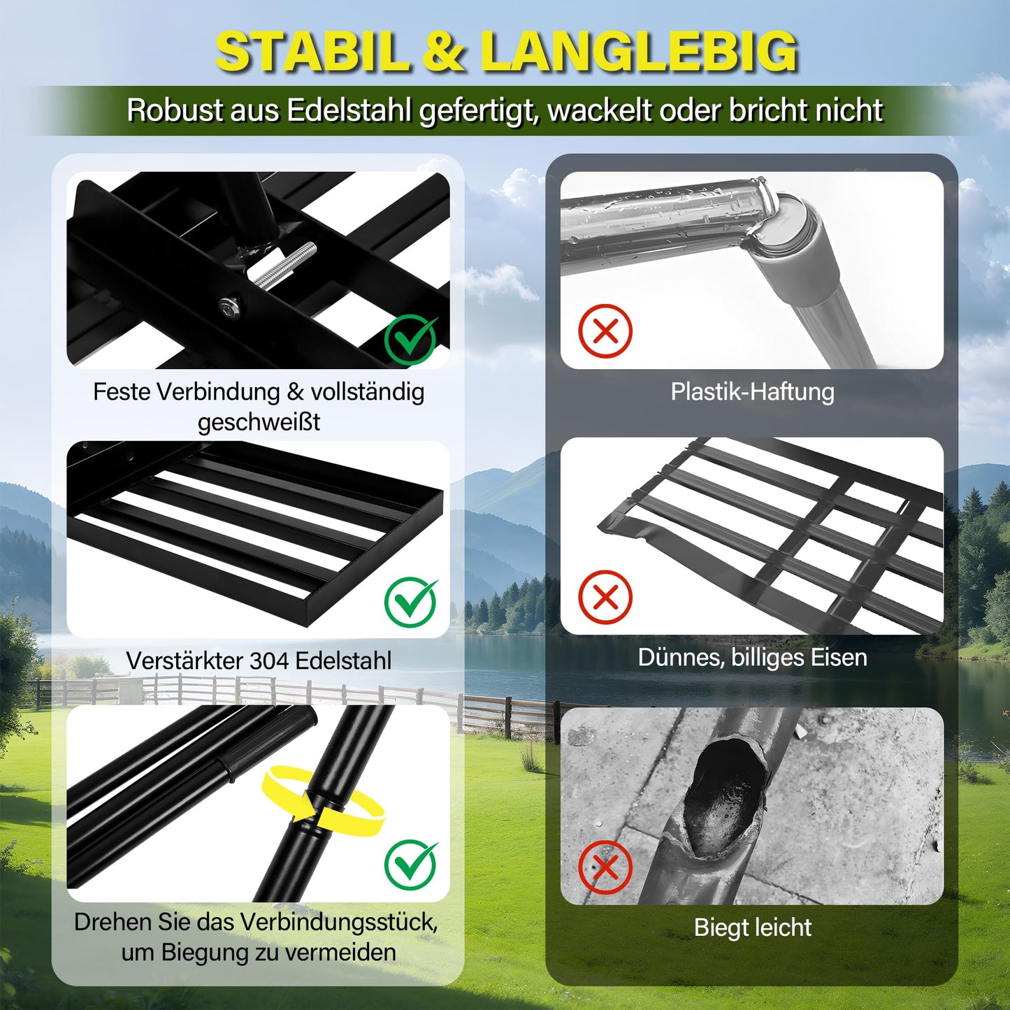 - 𝗥𝗼𝗯𝘂𝘀𝘁 & 𝗟𝗮𝗻𝗴𝗹𝗲𝗯𝗶𝗴:Diese Rasenebenharke ist aus doppelt punktgeschweißtem Edelstahl mit verstärkten Schweißnähten gefertigt und für anspruchsvolle Aufgaben konzipiert. Die verbesserte Verbindung zwischen Griff und Kopf sorgt für zusätzliche Stabilität und Langlebigkeit. Der rostfreie Stahlrahmen und die verstärkten Schweißnähte verhindern ein Verbiegen oder Beschädigen, was diese Harke besonders zuverlässig und langlebig macht.