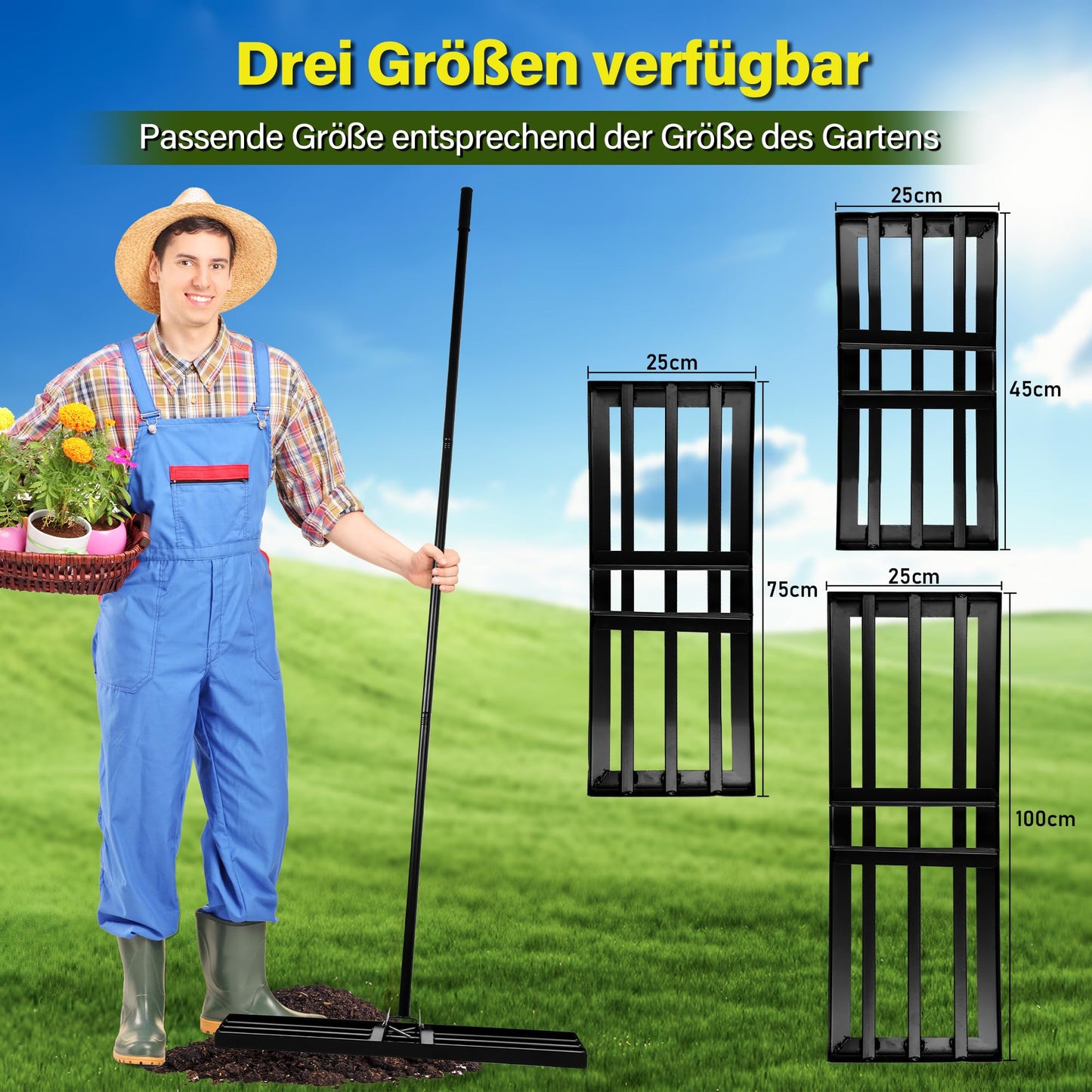 - 𝗩𝗲𝗿𝘀𝘁𝗲𝗹𝗹𝗯𝗮𝗿𝗲𝗿 𝗚𝗿𝗶𝗳𝗳 𝗳ü𝗿 𝗺𝗮𝘅𝗶𝗺𝗮𝗹𝗲𝗻 𝗞𝗼𝗺𝗳𝗼𝗿𝘁:Der verstellbare Griff, der sich von 68 cm bis 198 cm erstreckt, sorgt für eine komfortable Passform für jeden Benutzer. Egal ob Sie groß, klein oder mittelgroß sind – mit diesem Werkzeug können Sie Ihren Rasen ohne Bücken oder Anstrengung einebnen. Perfekt für Hausbesitzer, Profis und alle, die ein schmerzfreies Gartenerlebnis schätzen.
