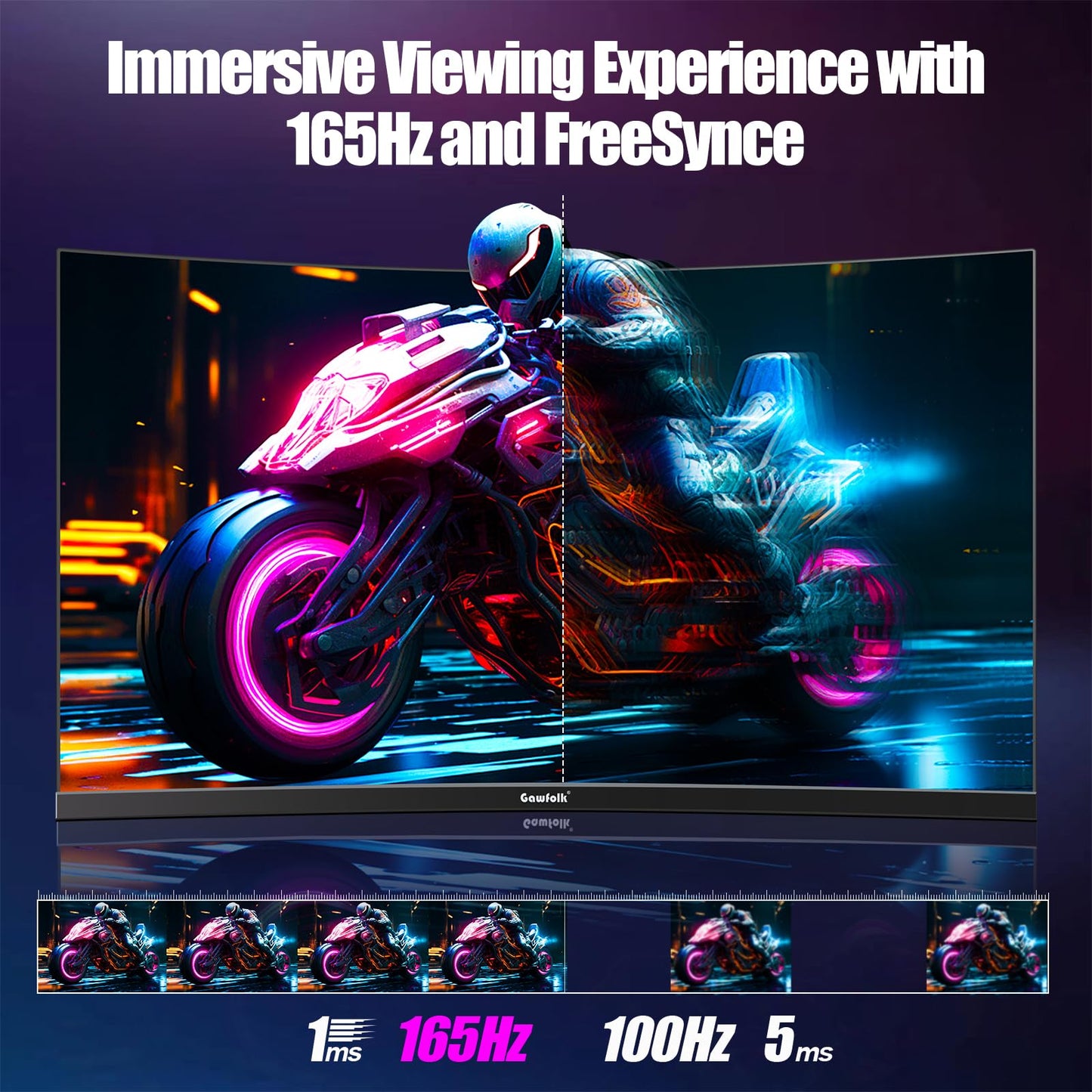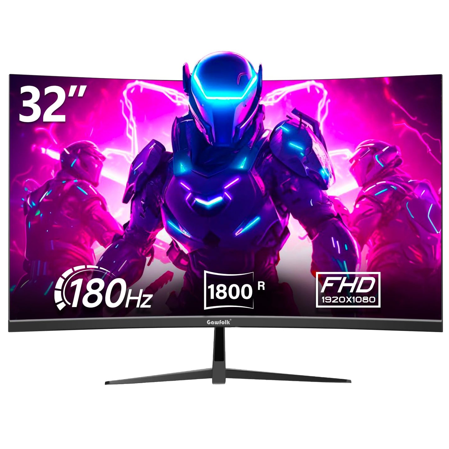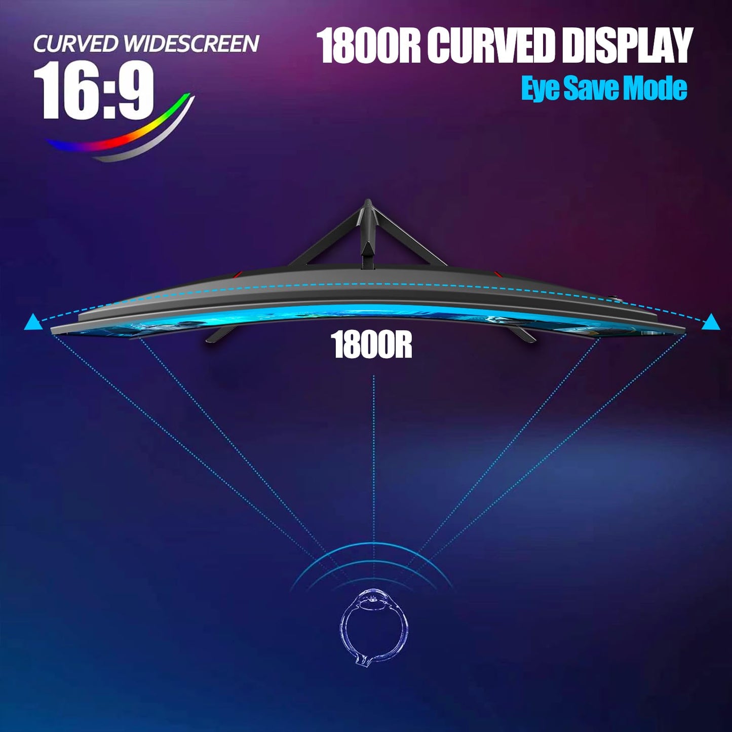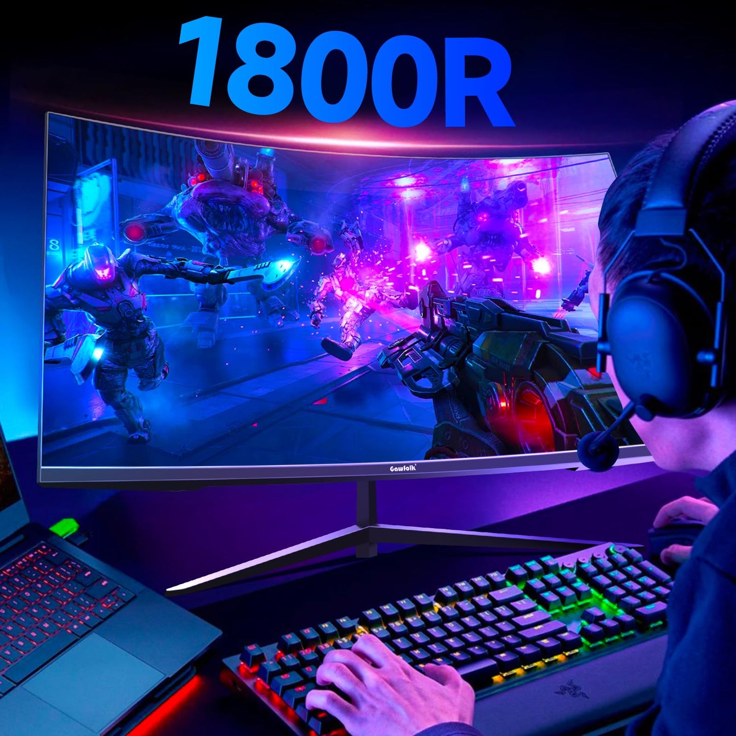 Gawfolk Curved Monitor 27 Zoll 100Hz, PC Bildschirm mit Lautsprecher 1080P, 1800R 75Hz Computerbildschirm mit Eye Care Technologie HDMI VGA, unterstützt VESA