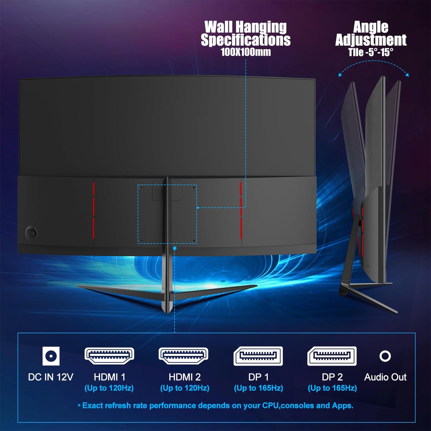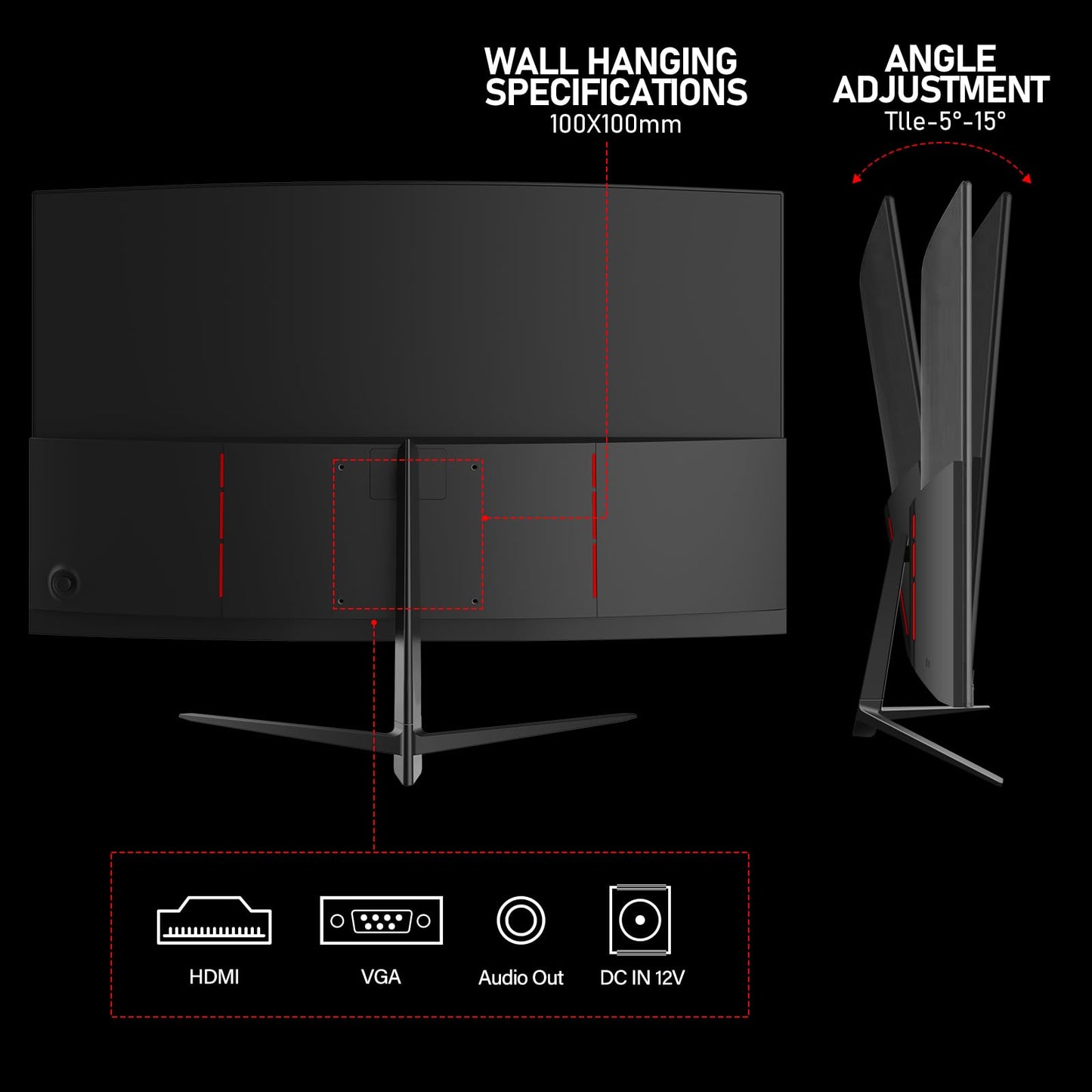 - Einstellbare Neigung - Dieser gebogene Gaming-Monitor kann um 15 Grad nach hinten und 5 Grad nach vorne geneigt werden und unterstützt eine 100*100mm Monitor-VESA-Halterung (VESA-Halterung NICHT IM LIEFERUMFANG), die mehrere Möglichkeiten bietet, den optimalen Blickwinkel auf den Bildschirm zu finden, so dass Arbeiten und Surfen mit Leichtigkeit durchgeführt werden können.