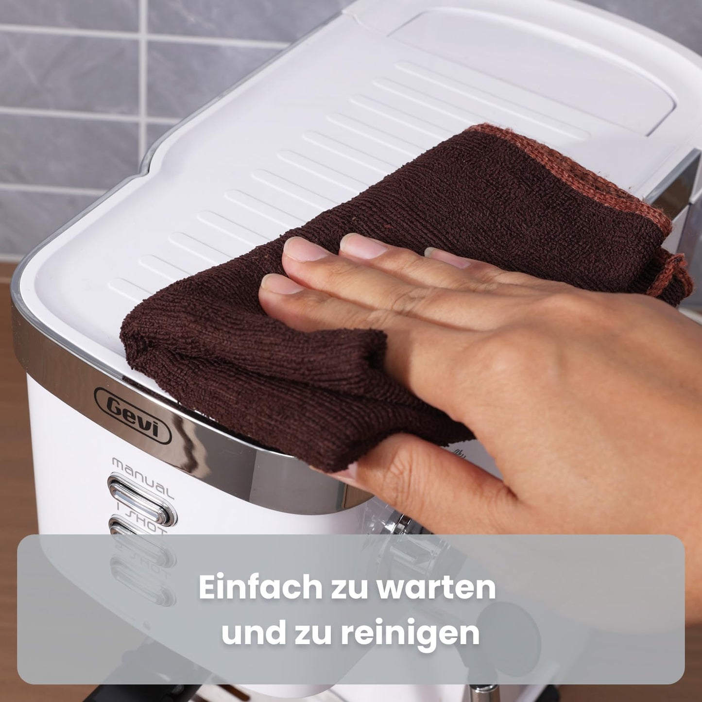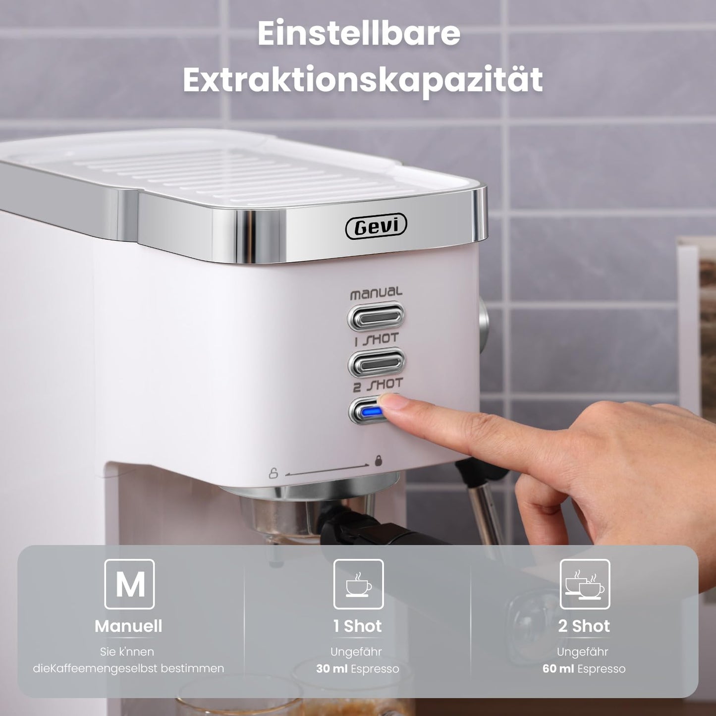 Gevi 20 Bar Espresso Kaffeemaschine Espressomaschine mit professionellem Milchaufschaumdüse, nur 15 cm breit,1350W schnelle Hitze für Cappuccino, Latte & Macchiato, 1,2L Wassertank, Weiß