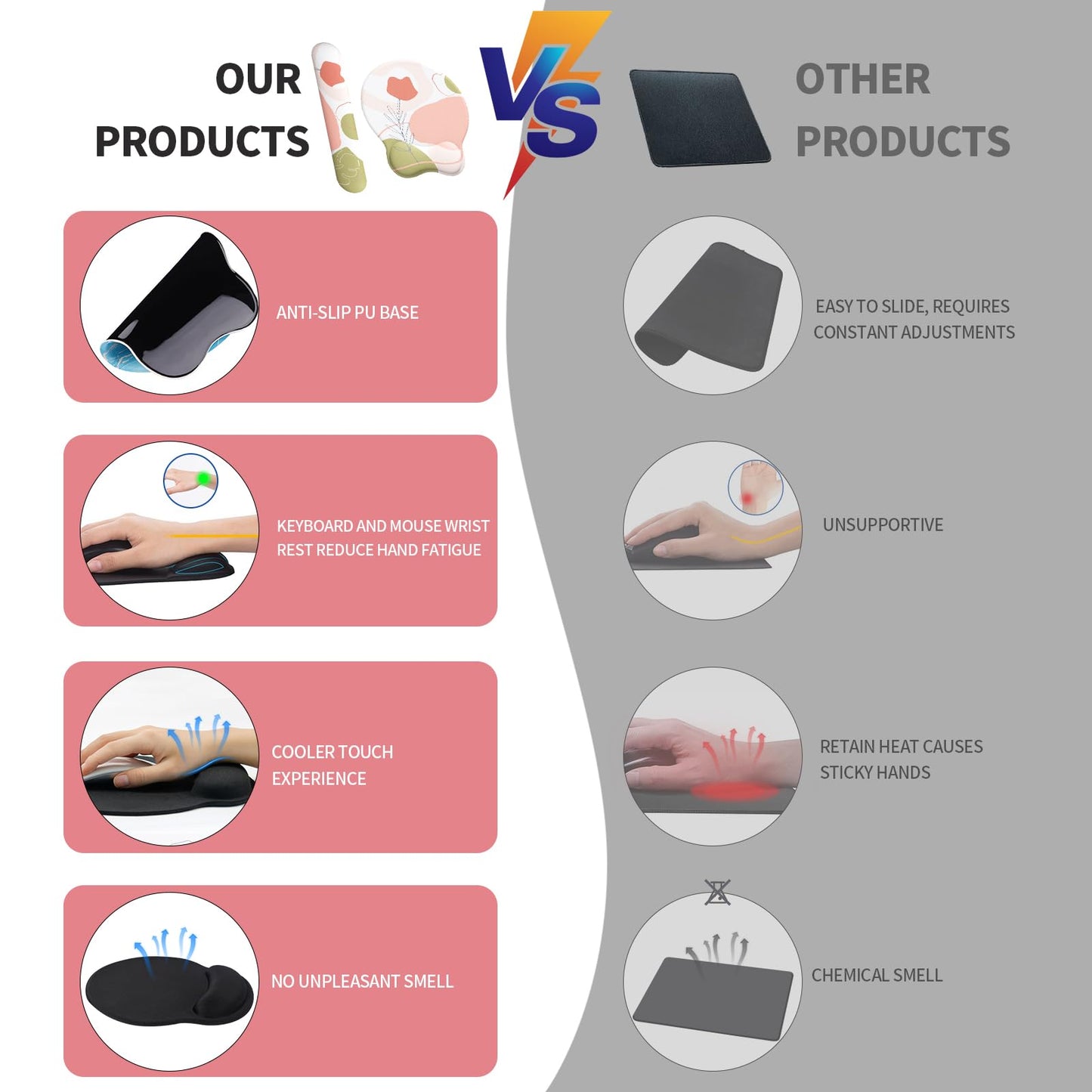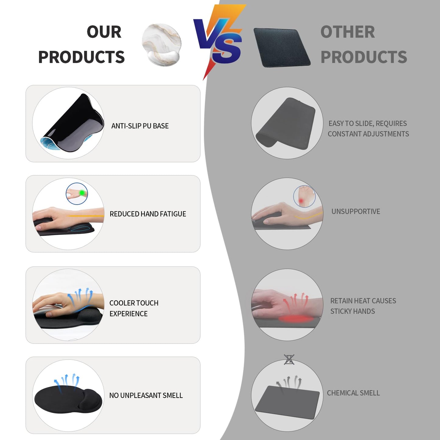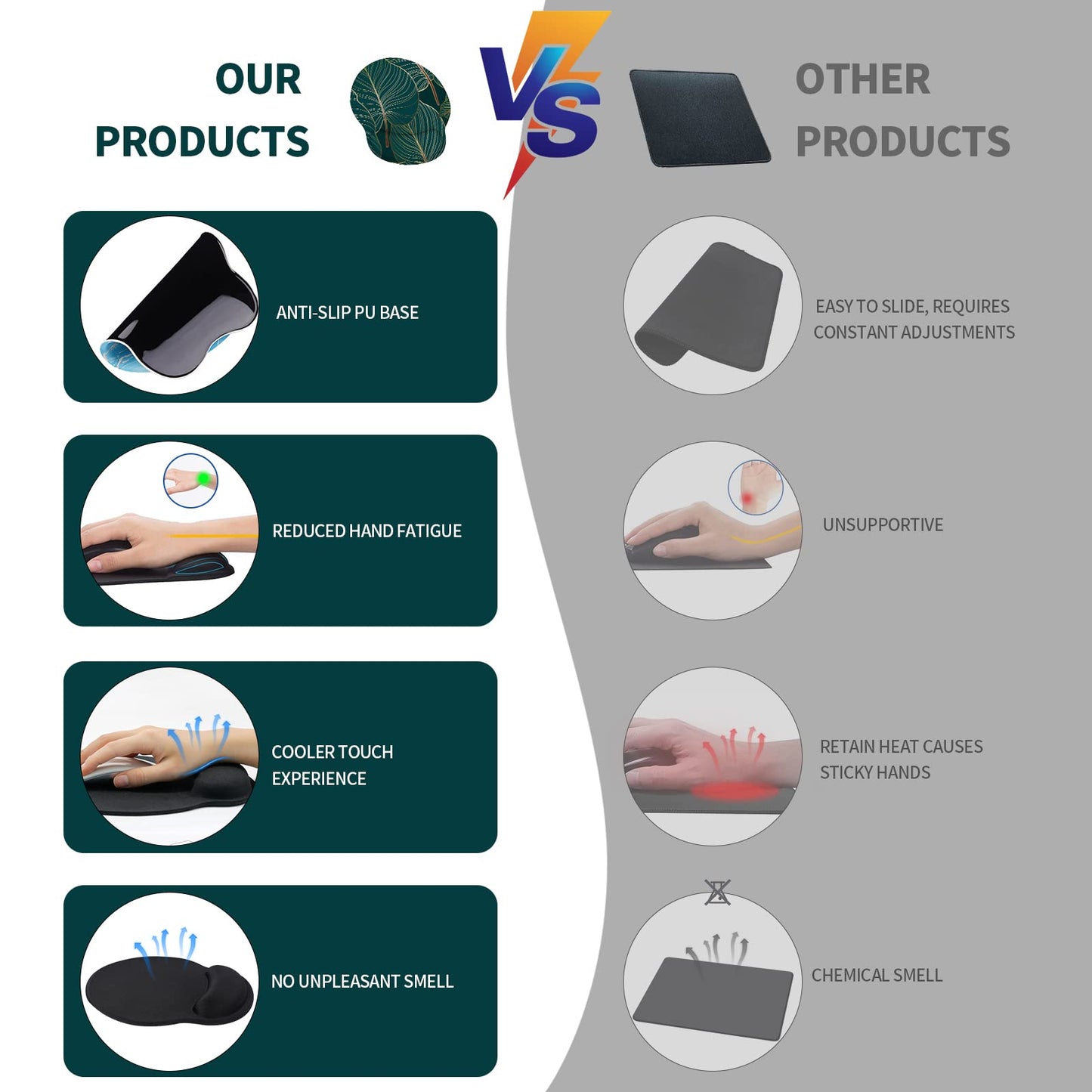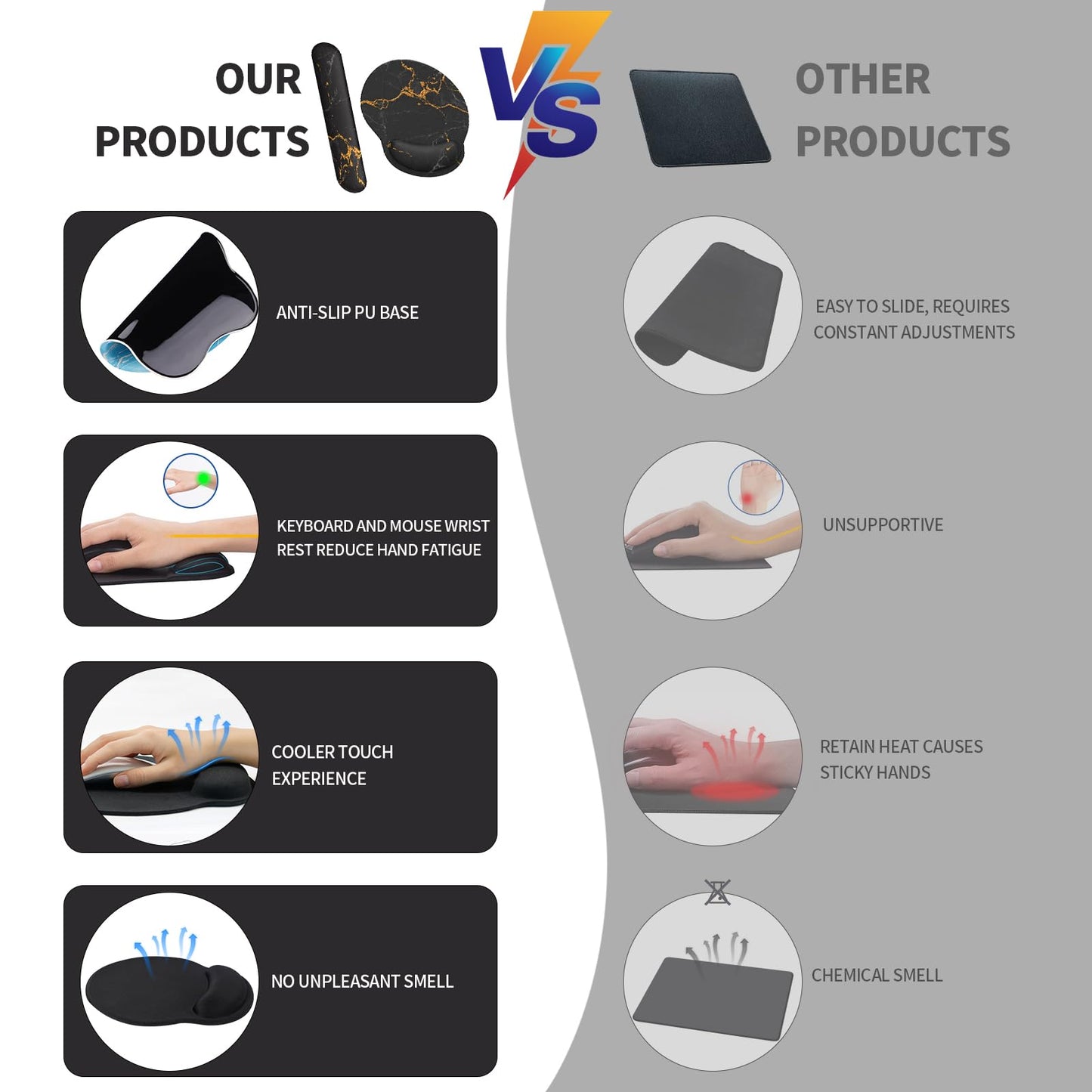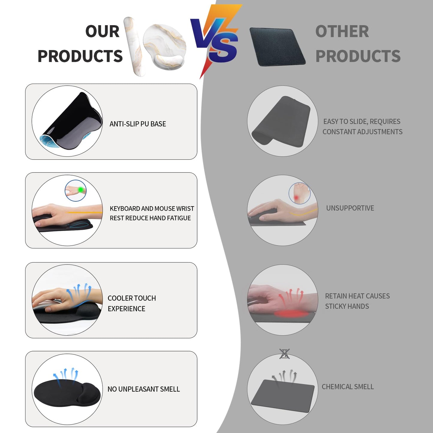 - 🖱️【Kühlungseffekt】Die Mauspads mit handgelenkauflage sind mit einem kühlenden Effekt konzipiert, der Schweiß und Feuchtigkeitsbildung am Handgelenk reduziert. Dadurch bleibt Ihr Handgelenk auch während langer Computeranwendungen trocken und komfortabel.