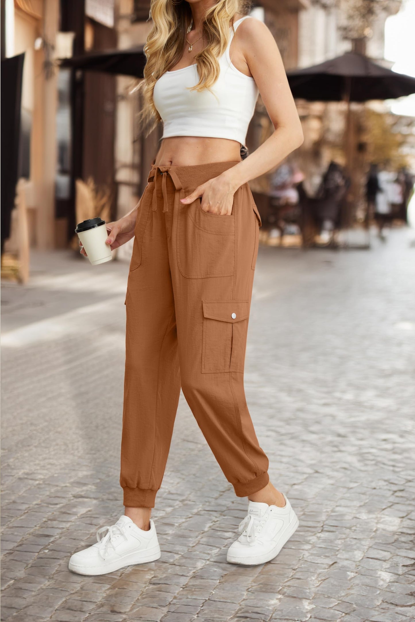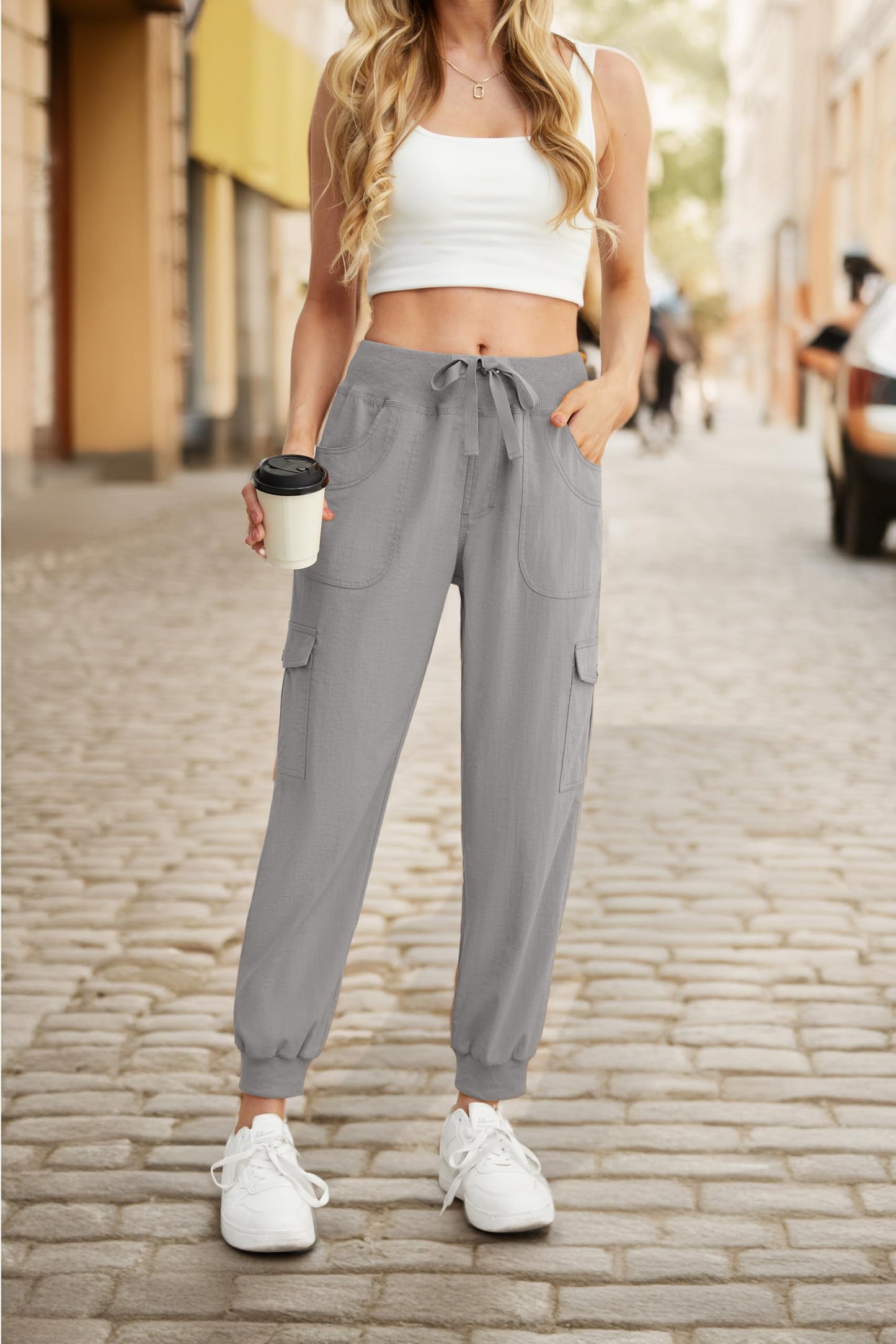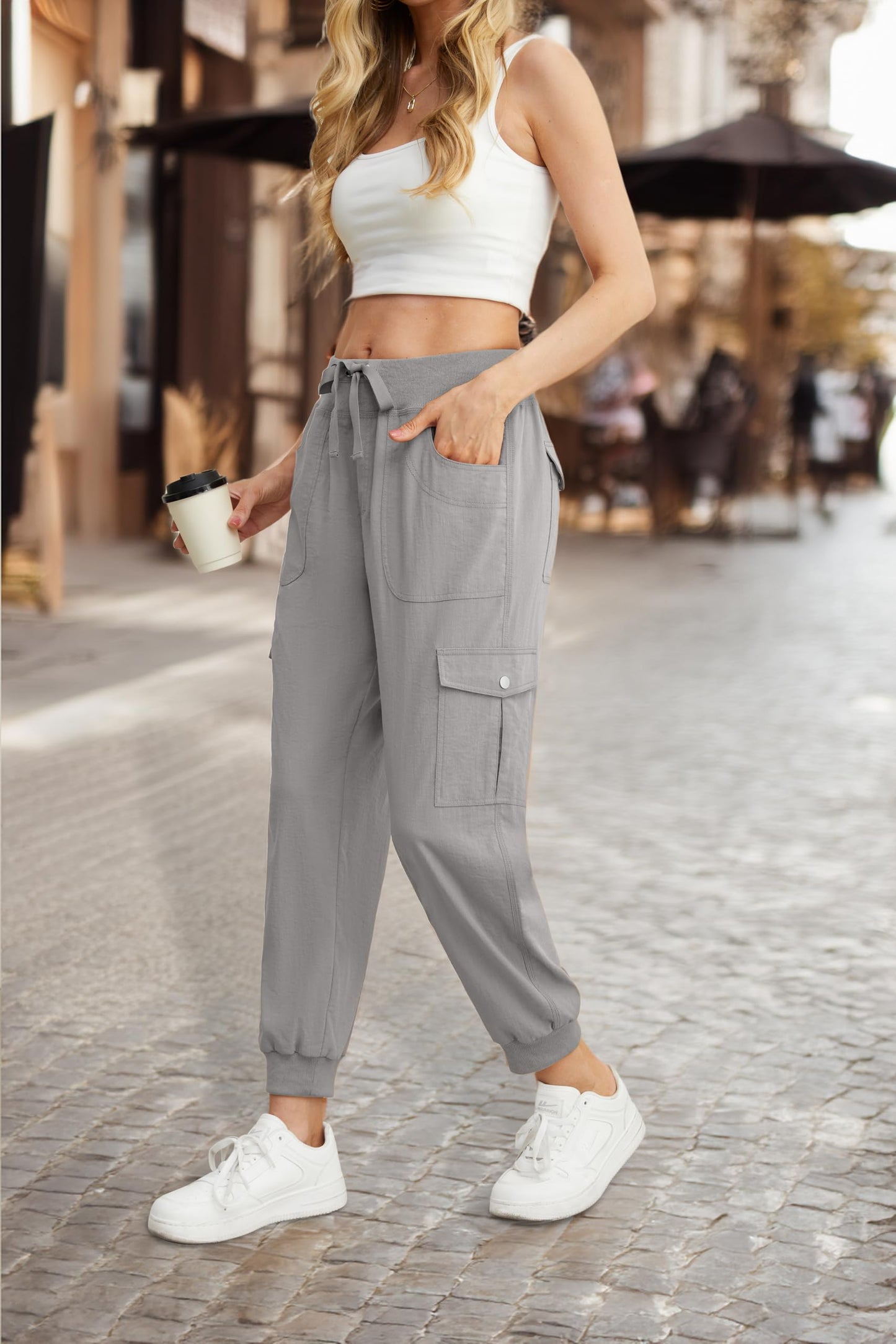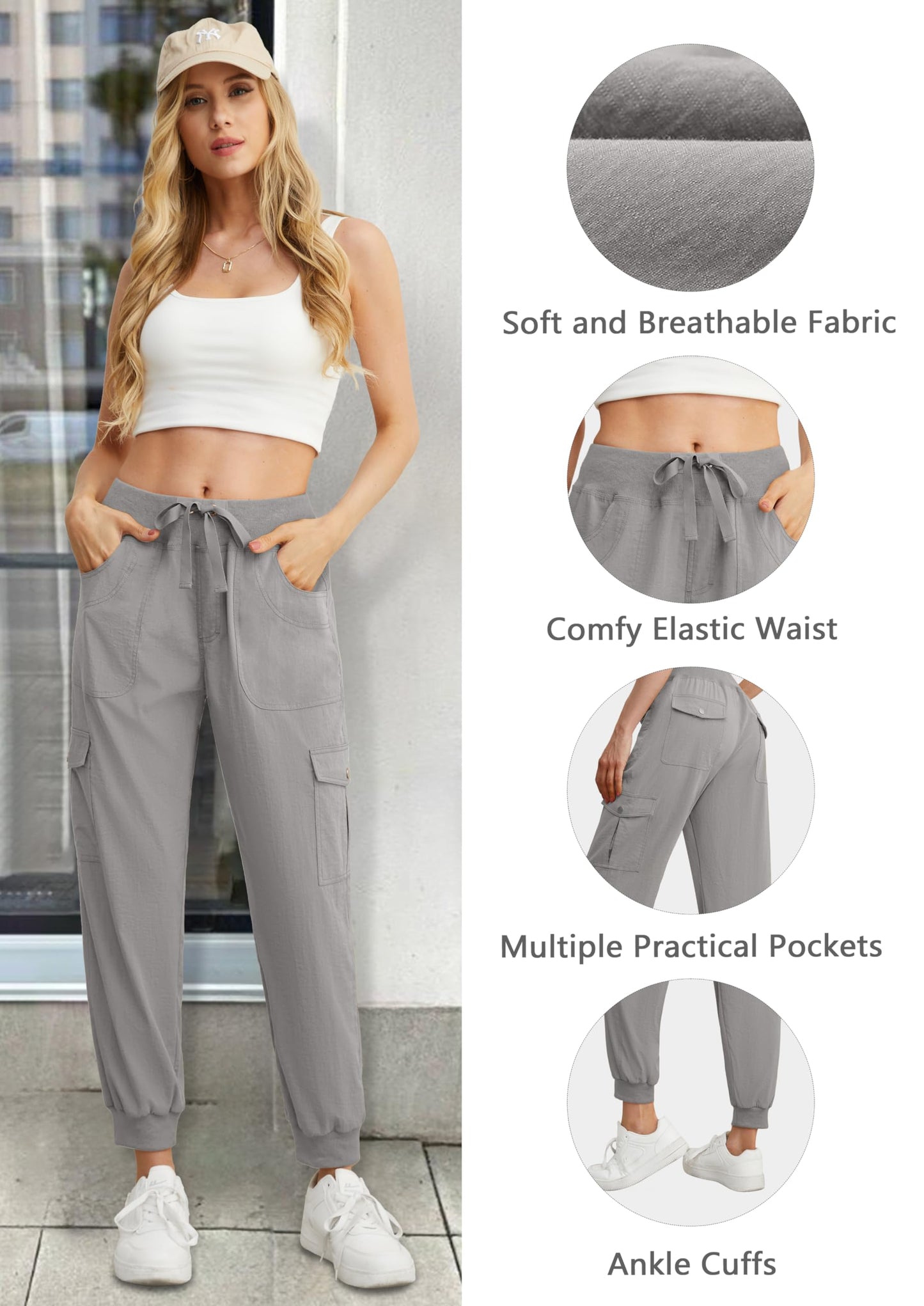 Stay stylish and comfortable with GRECERELLE's Women's Cargo Jogger Pants, perfect for sports and leisure. Crafted from a breathable, lightweight fabric blend, these joggers combine streetwear style with practical functionality. The elastic waistband and ankle cuffs ensure a secure fit while allowing full freedom of movement. With six spacious pockets, you have plenty of room to store essentials like your phone, keys, or wallet. Whether you're working out, hiking, or simply enjoying a day in the city, these joggers offer comfort, style, and versatility for every activity.