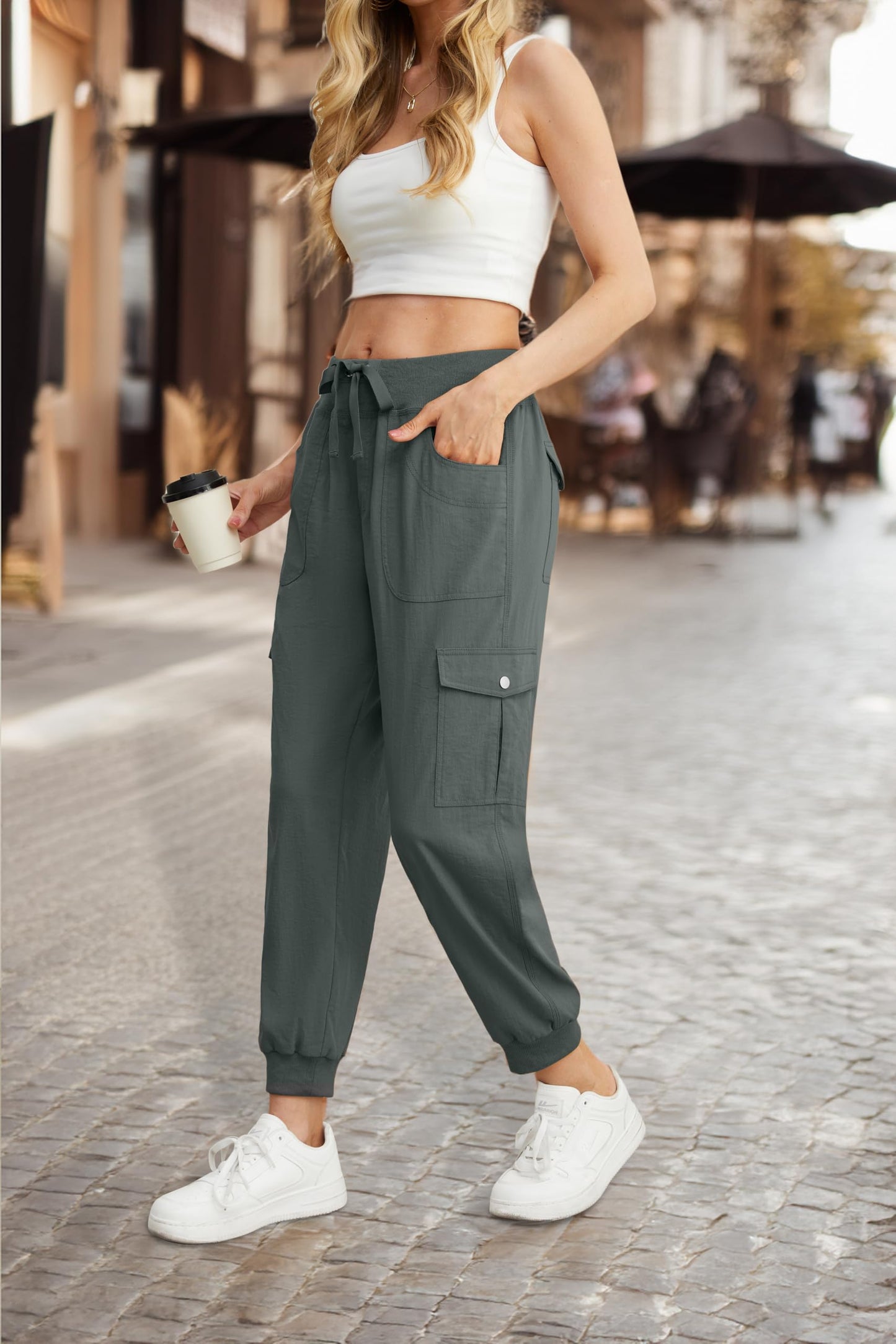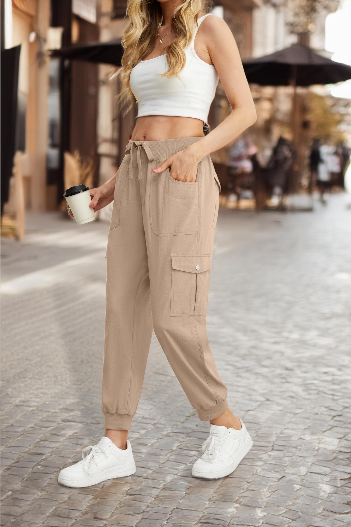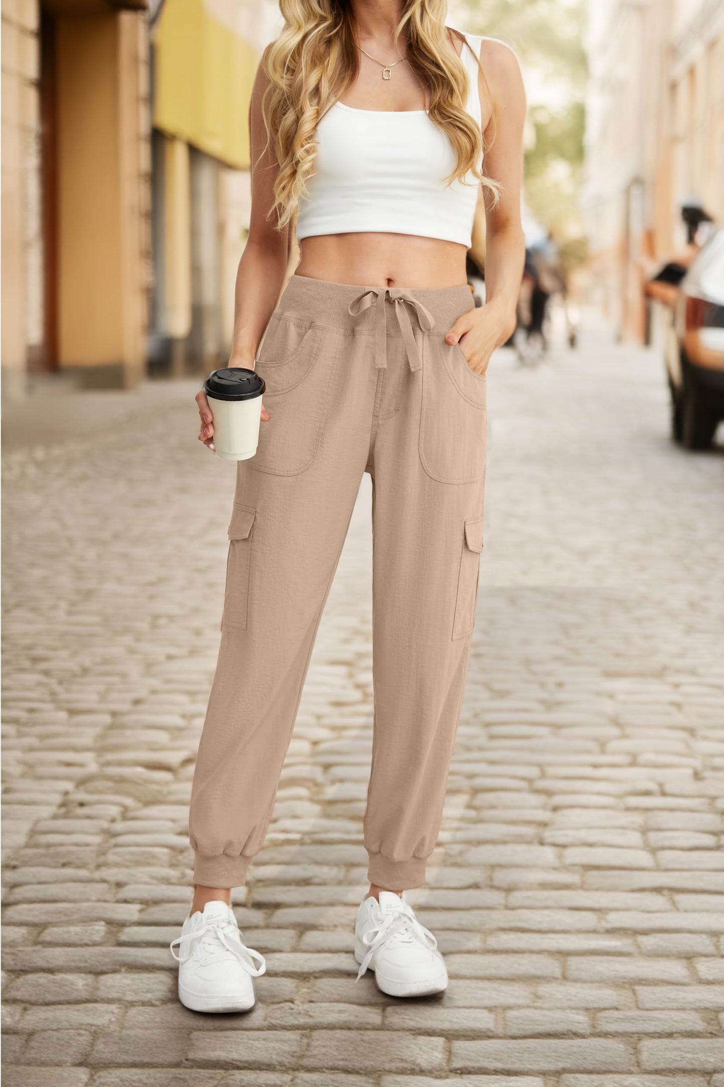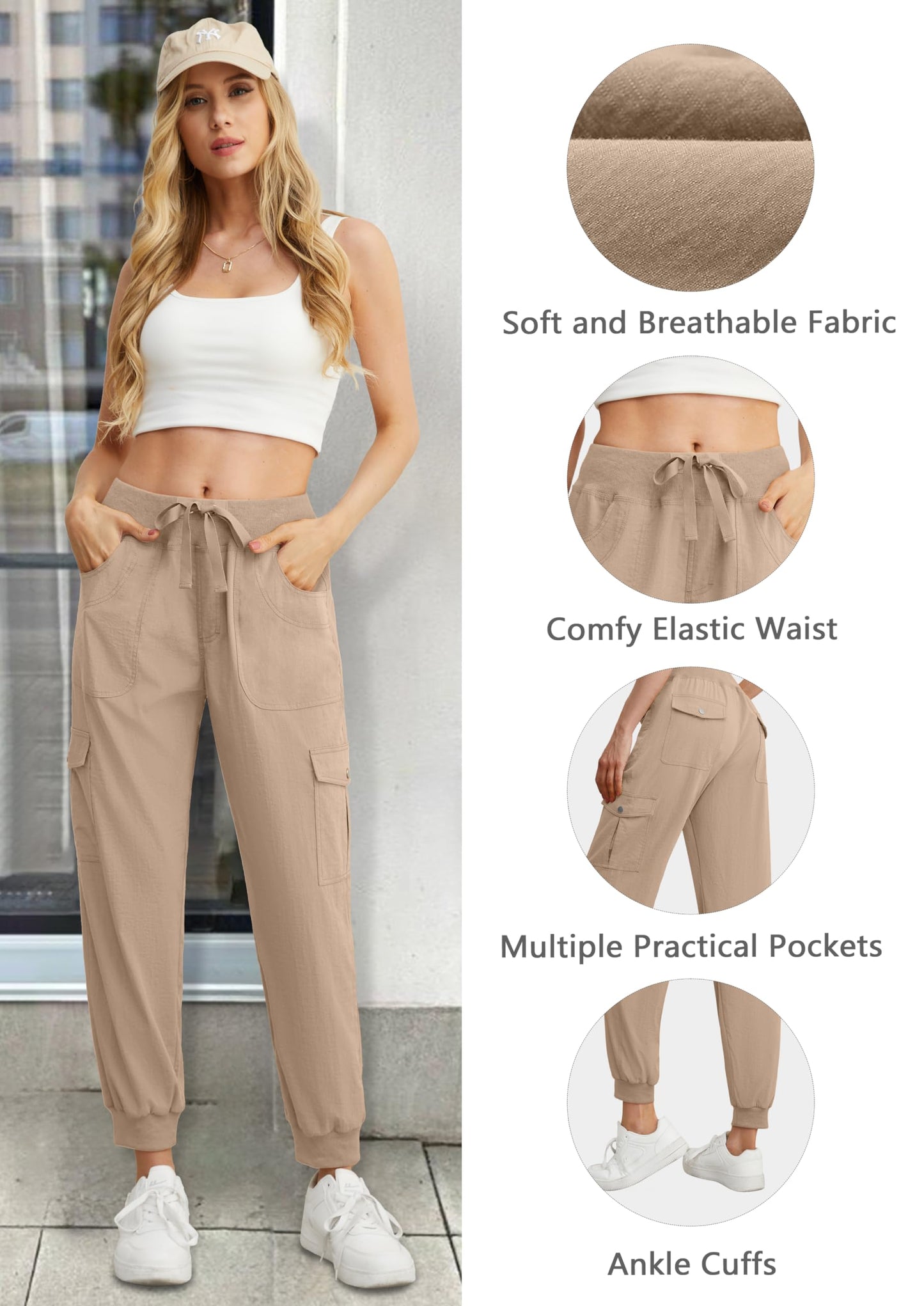 Stay stylish and comfortable with GRECERELLE's Women's Cargo Jogger Pants, perfect for sports and leisure. Crafted from a breathable, lightweight fabric blend, these joggers combine streetwear style with practical functionality. The elastic waistband and ankle cuffs ensure a secure fit while allowing full freedom of movement. With six spacious pockets, you have plenty of room to store essentials like your phone, keys, or wallet. Whether you're working out, hiking, or simply enjoying a day in the city, these joggers offer comfort, style, and versatility for every activity.