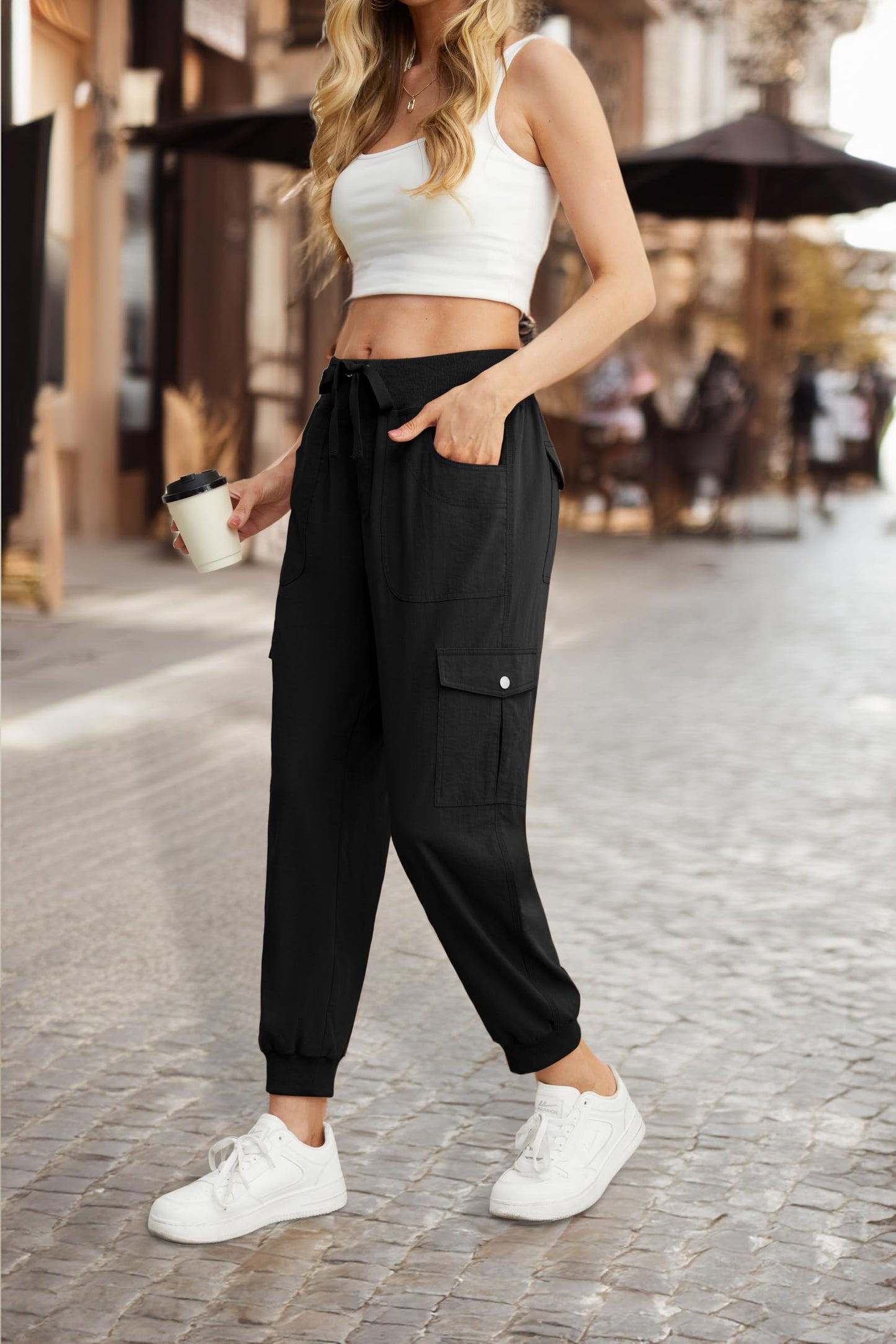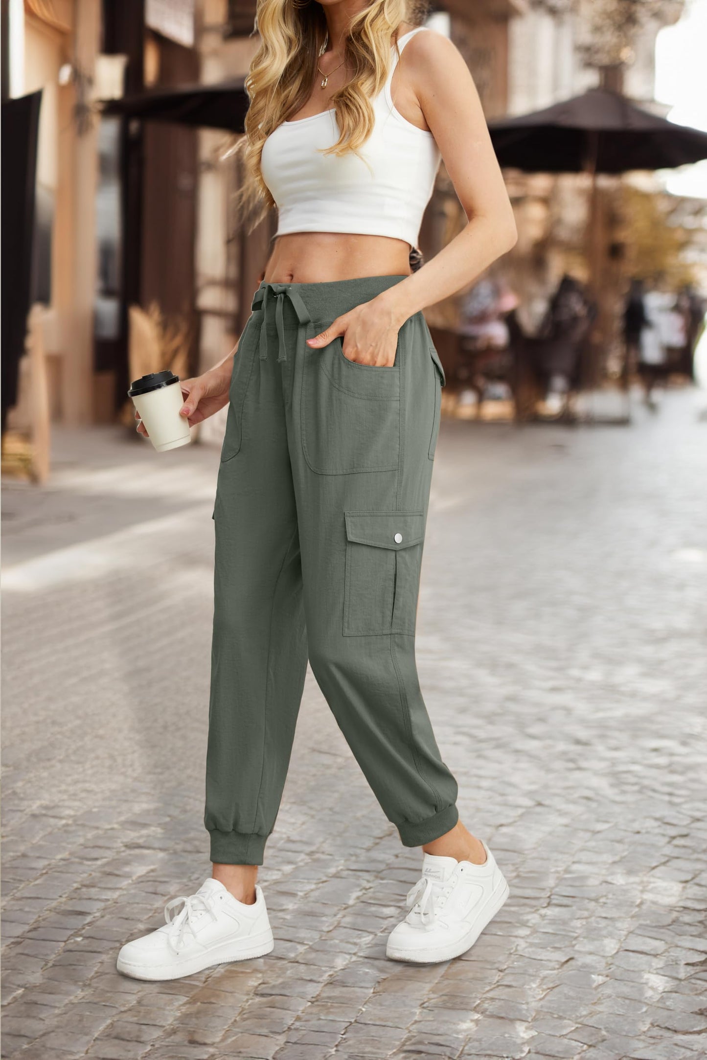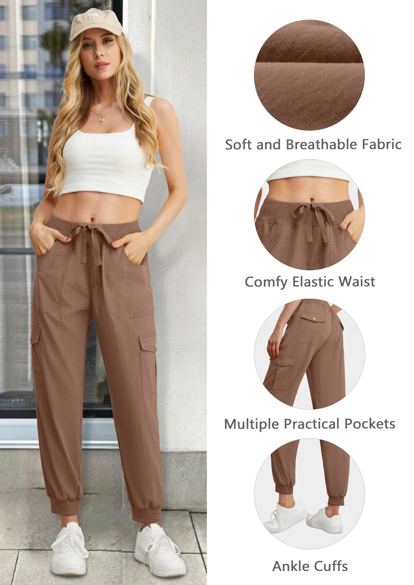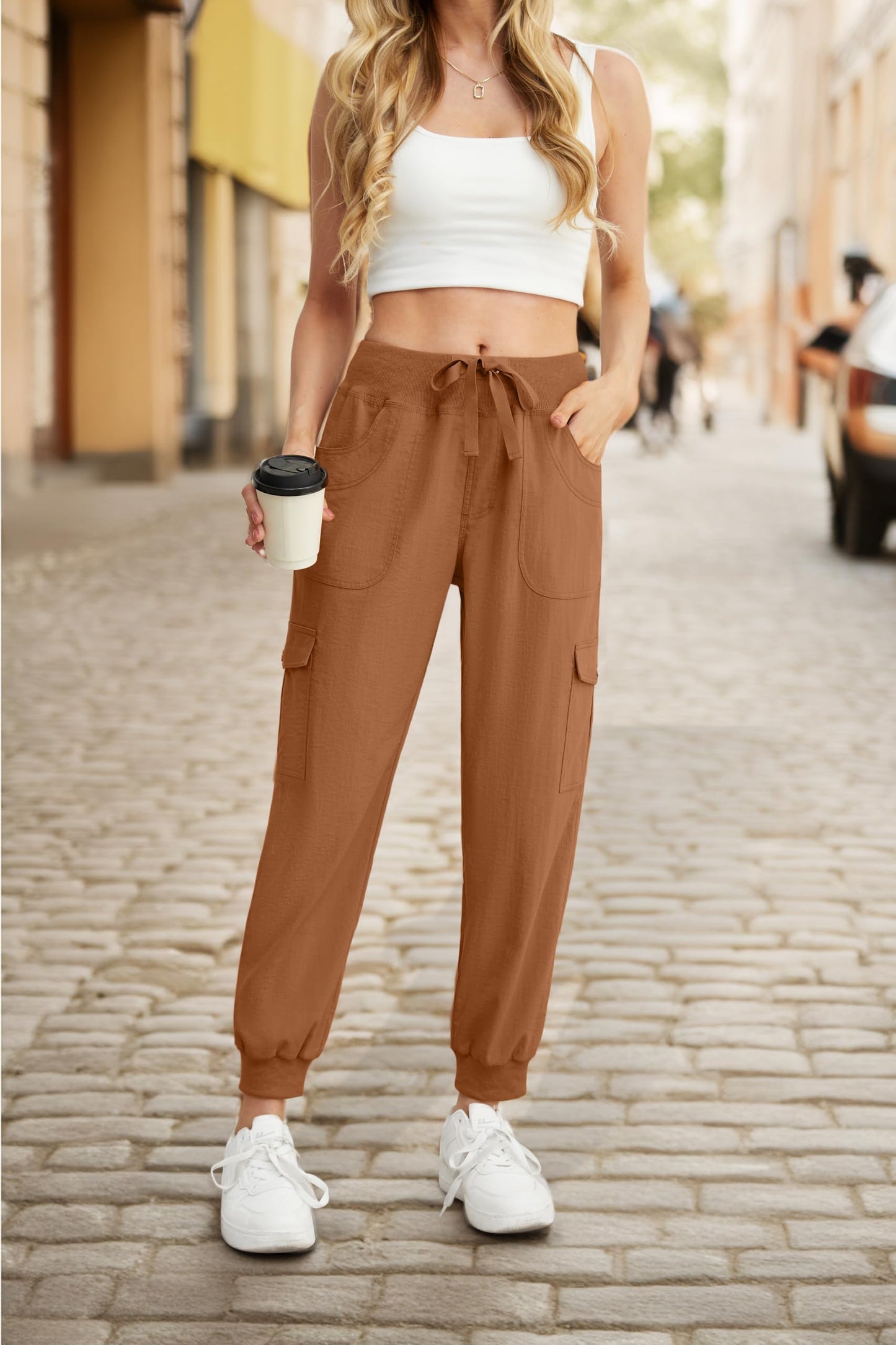 Stay stylish and comfortable with GRECERELLE's Women's Cargo Jogger Pants, perfect for sports and leisure. Crafted from a breathable, lightweight fabric blend, these joggers combine streetwear style with practical functionality. The elastic waistband and ankle cuffs ensure a secure fit while allowing full freedom of movement. With six spacious pockets, you have plenty of room to store essentials like your phone, keys, or wallet. Whether you're working out, hiking, or simply enjoying a day in the city, these joggers offer comfort, style, and versatility for every activity.