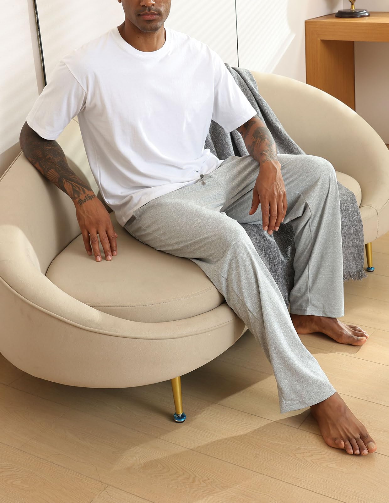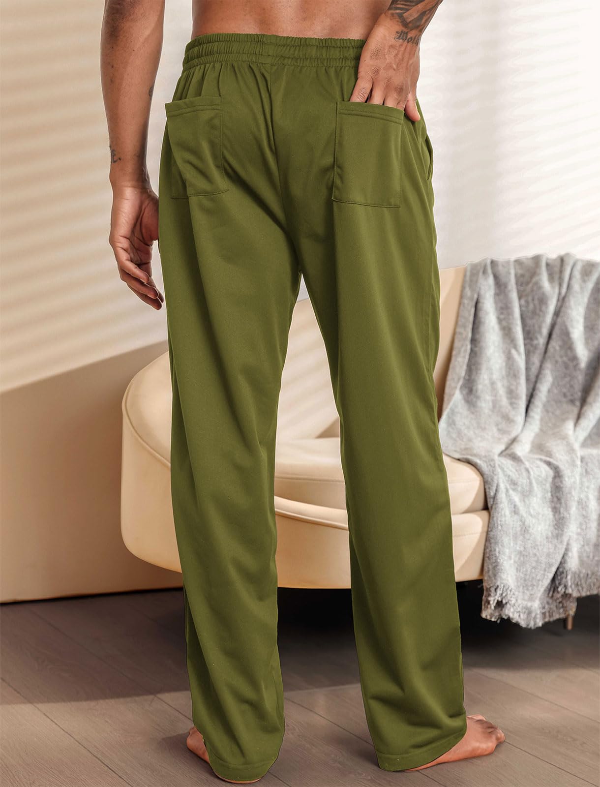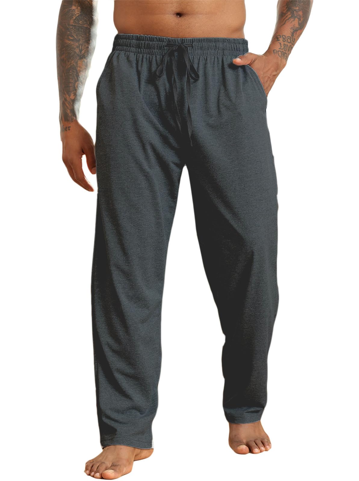 Loose Fit: Open-bottom, straight-leg design offers a relaxed fit ideal for comfort throughout the year