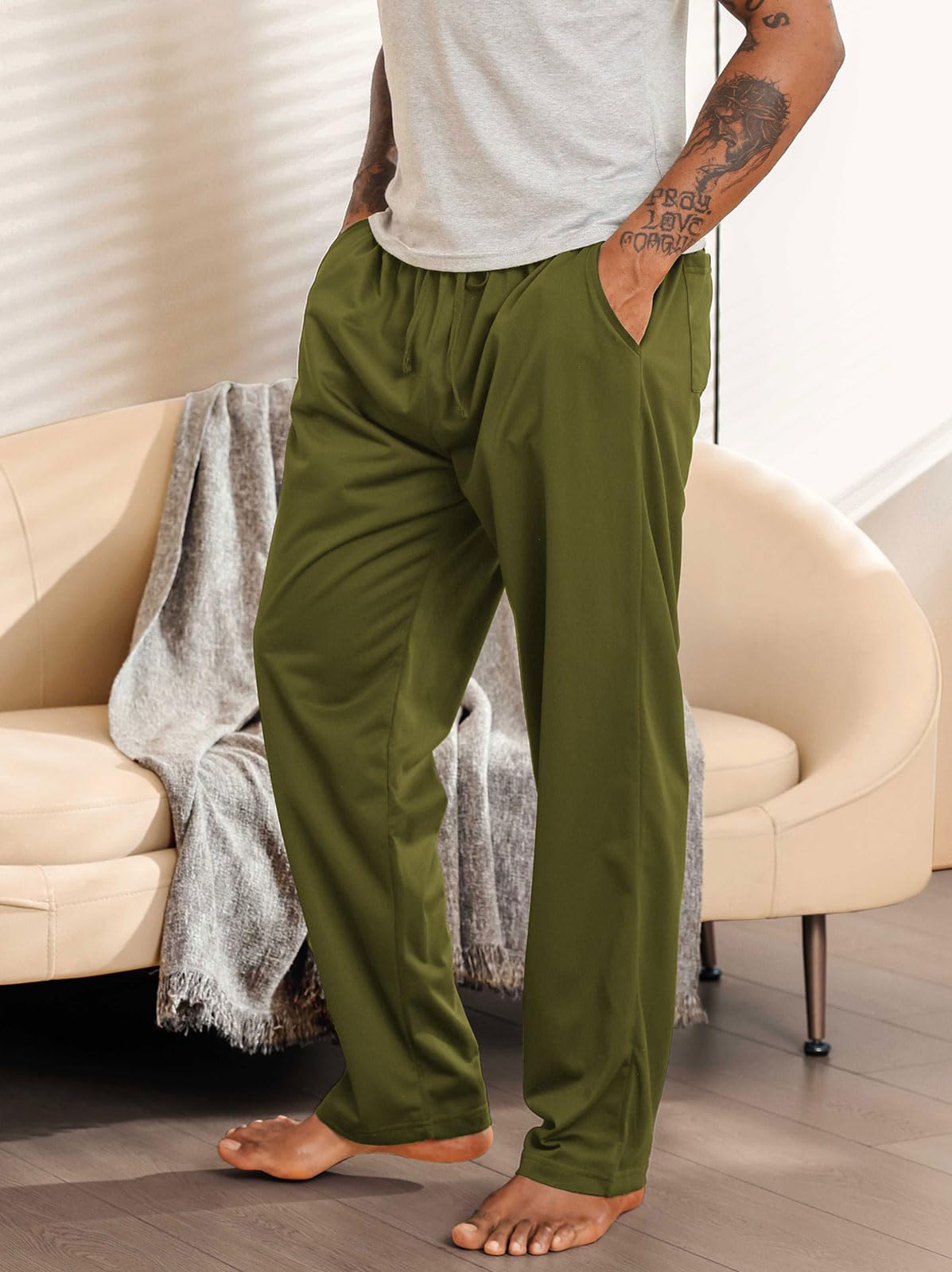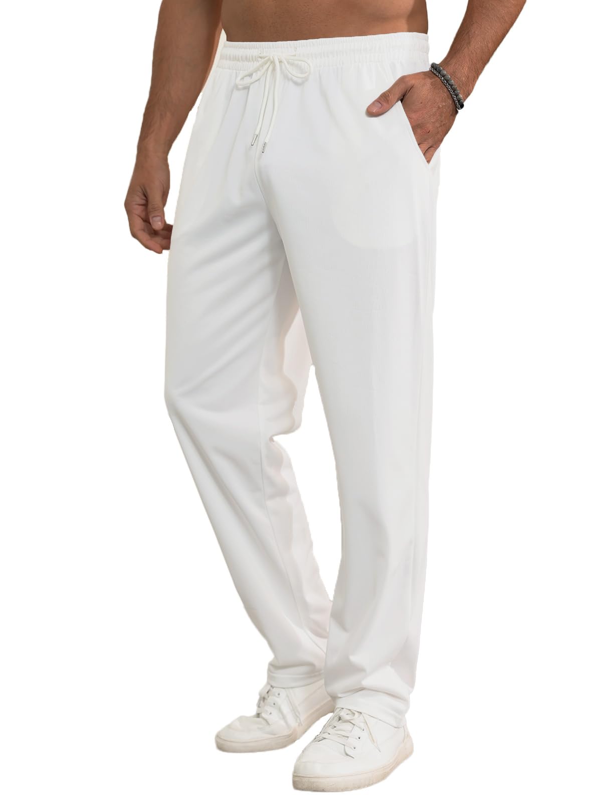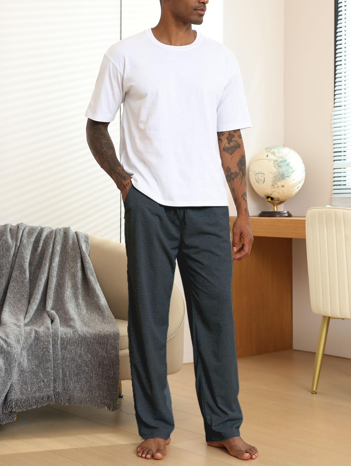 Loose Fit: Open-bottom, straight-leg design offers a relaxed fit ideal for comfort throughout the year