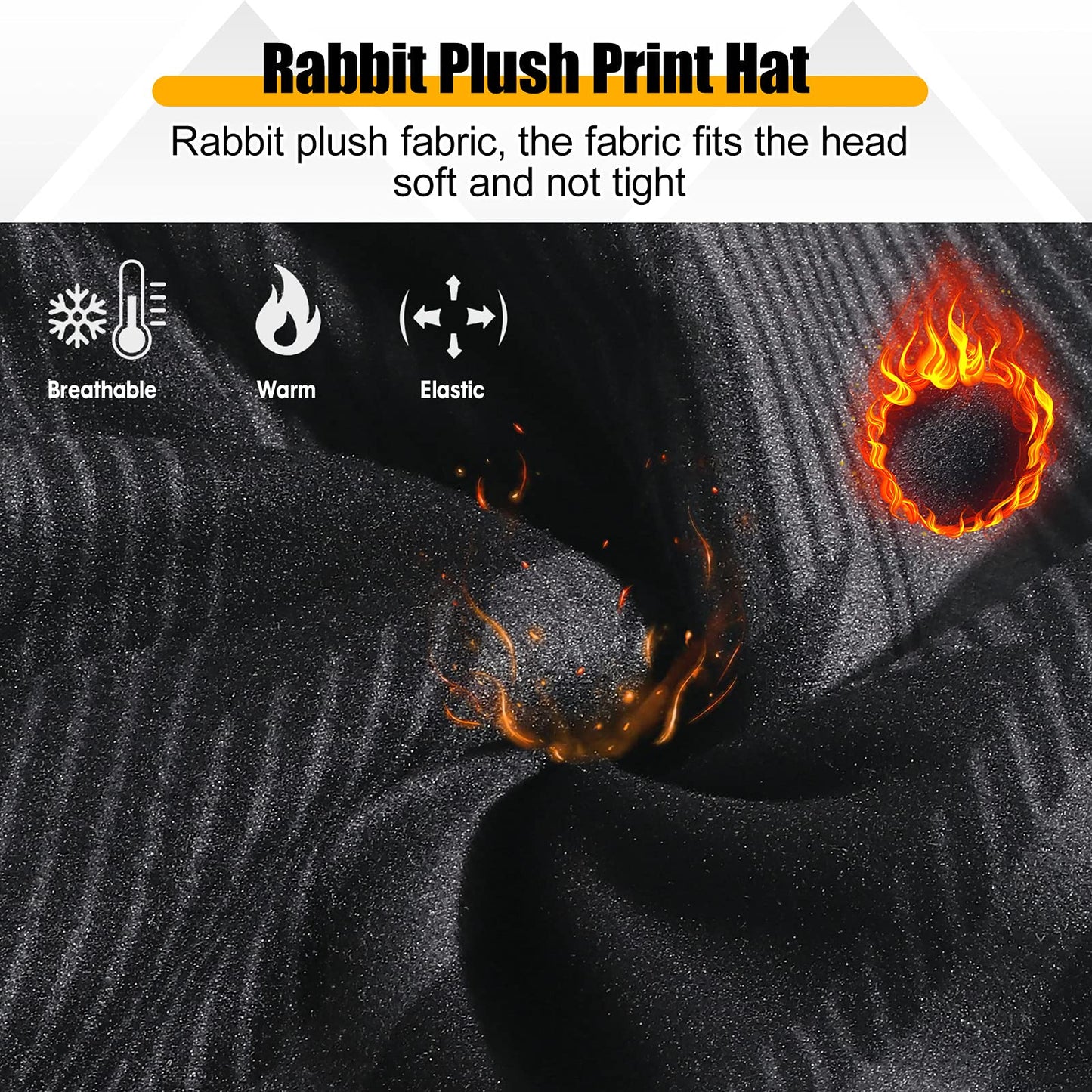 - 【Hochwertiges Thermogewebe】Diese bedruckte mütze besteht aus hochwertigem Kaninchenfleece-Thermogewebe, das aus 89,6% Polyesterfaser und 10,4% Elasthan-Gewebe besteht. Der Stoff der Mütze ist weich, bequem und elastisch. Der Kappenkörper ist weich und faltbar, um jederzeit ein einfaches Tragen zu ermöglichen. Sie können die Mütze in Ihre Rucksack- oder Jackentasche stecken, um sich dem häufig wechselnden Wetter im Herbst und Winter anzupassen und Kopf und Ohren rechtzeitig warm zu halten.