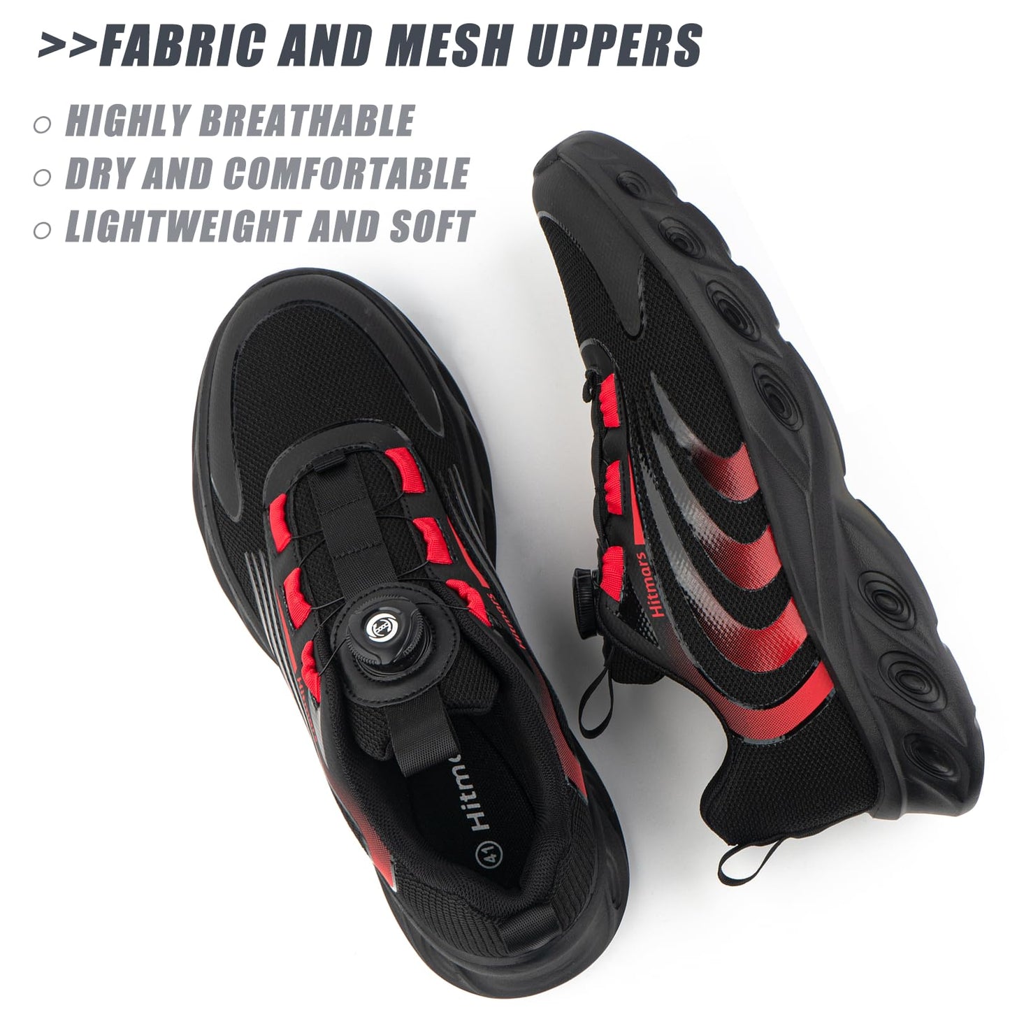 Experience ultimate comfort and convenience with the Hitmars Men’s Sneakers. Designed for runners and athletes, these shoes feature a breathable mesh upper that keeps your feet fresh during intense workouts. The innovative button design allows for easy, quick on/off in just 3 seconds, eliminating the need for traditional laces. Equipped with a slip-resistant sole and high-rebound midsole, these sneakers reduce impact and provide superior traction, even in wet or slippery conditions. Ergonomically designed to fit the natural shape of your feet, they offer a comfortable, supportive fit for all-day wear.