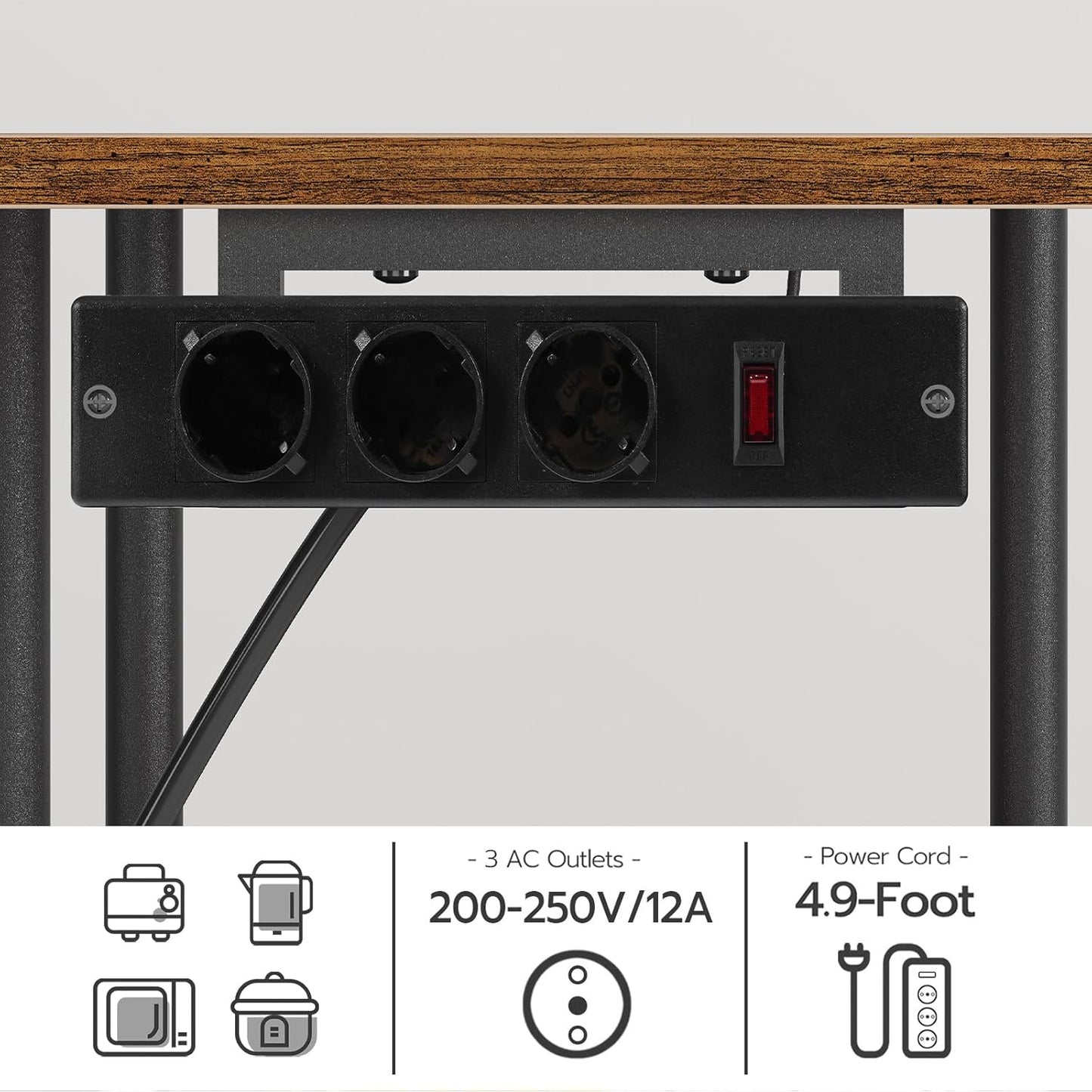 - Wiederaufladbarer Küchenhelfer: Dieses Bäckerregal wird mit 3 Standardsteckdosen und einem 1,5 m langen Netzkabel geliefert. Sie müssen keine sperrigen Mikrowellenherde, Heißluftfritteusen und Reiskocher mehr bewegen