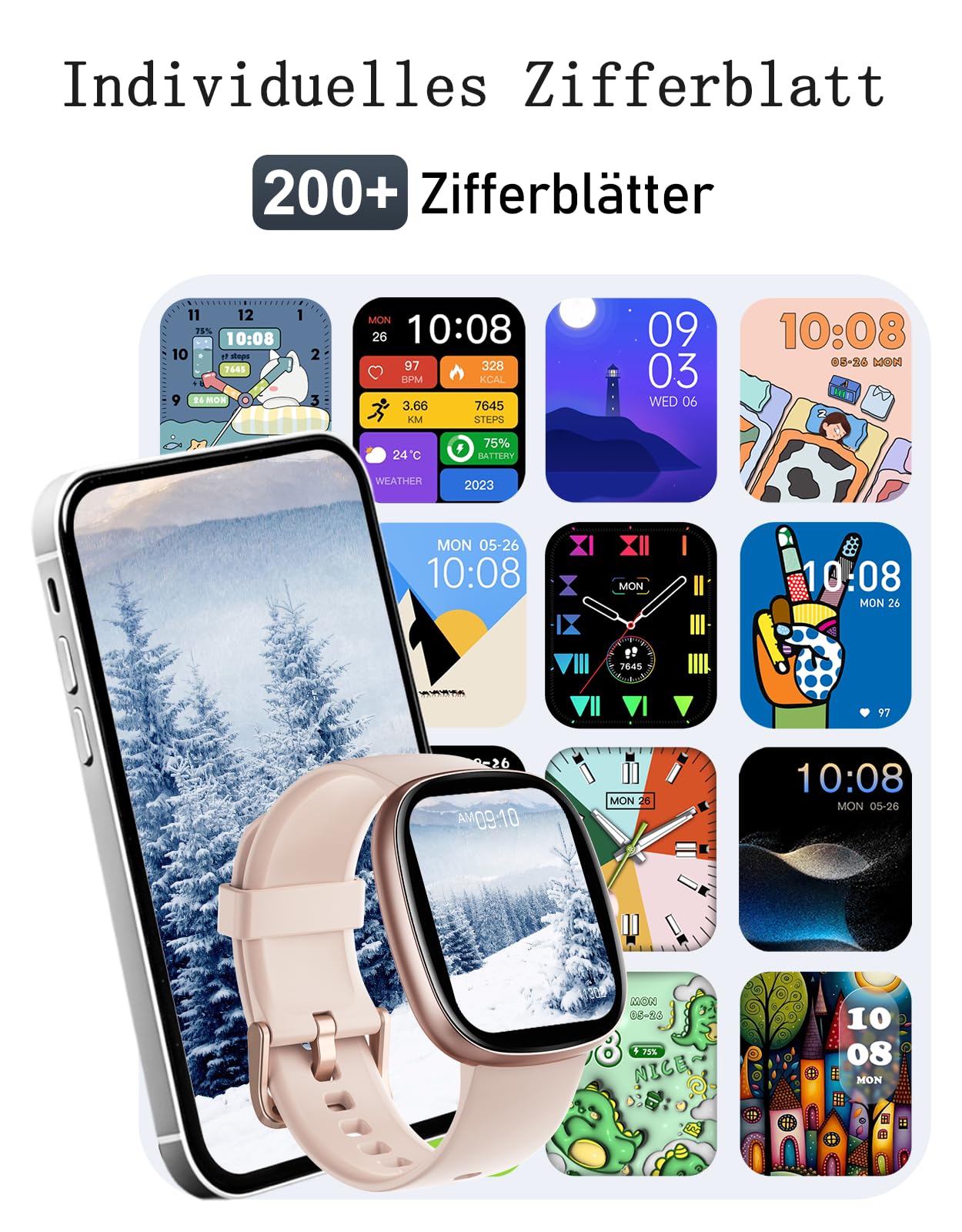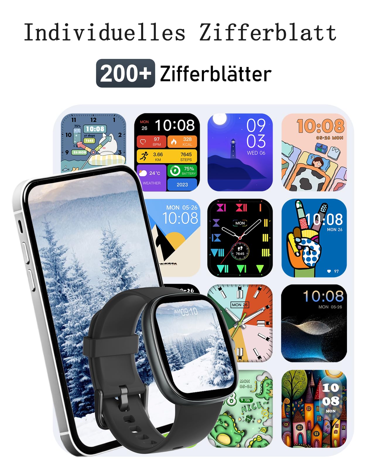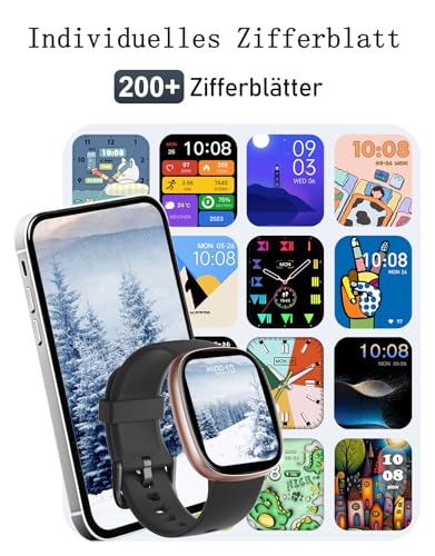 - 【200+ Zifferblätter & Eigene Fotos – Ihre Uhr, Ihr Stil】 Ihre Smartwatch – so individuell wie Sie selbst! Wählen Sie aus über 200 Zifferblättern, um Ihren Stil perfekt zu unterstreichen. Oder noch besser: Laden Sie Ihr Lieblingsfoto hoch und gestalten Sie Ihre Uhr ganz nach Ihrem Geschmack. Ob ein Familienfoto, Ihr Haustier oder ein inspirierendes Motiv – mit nur einem Klick wird Ihre Smartwatch einzigartig.