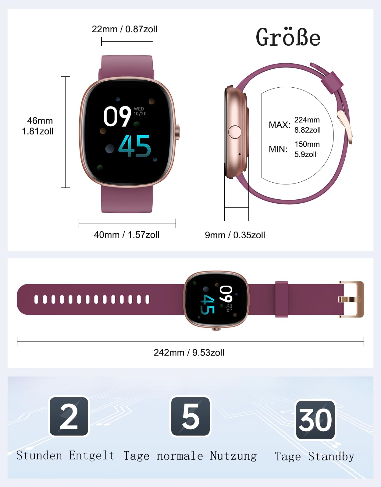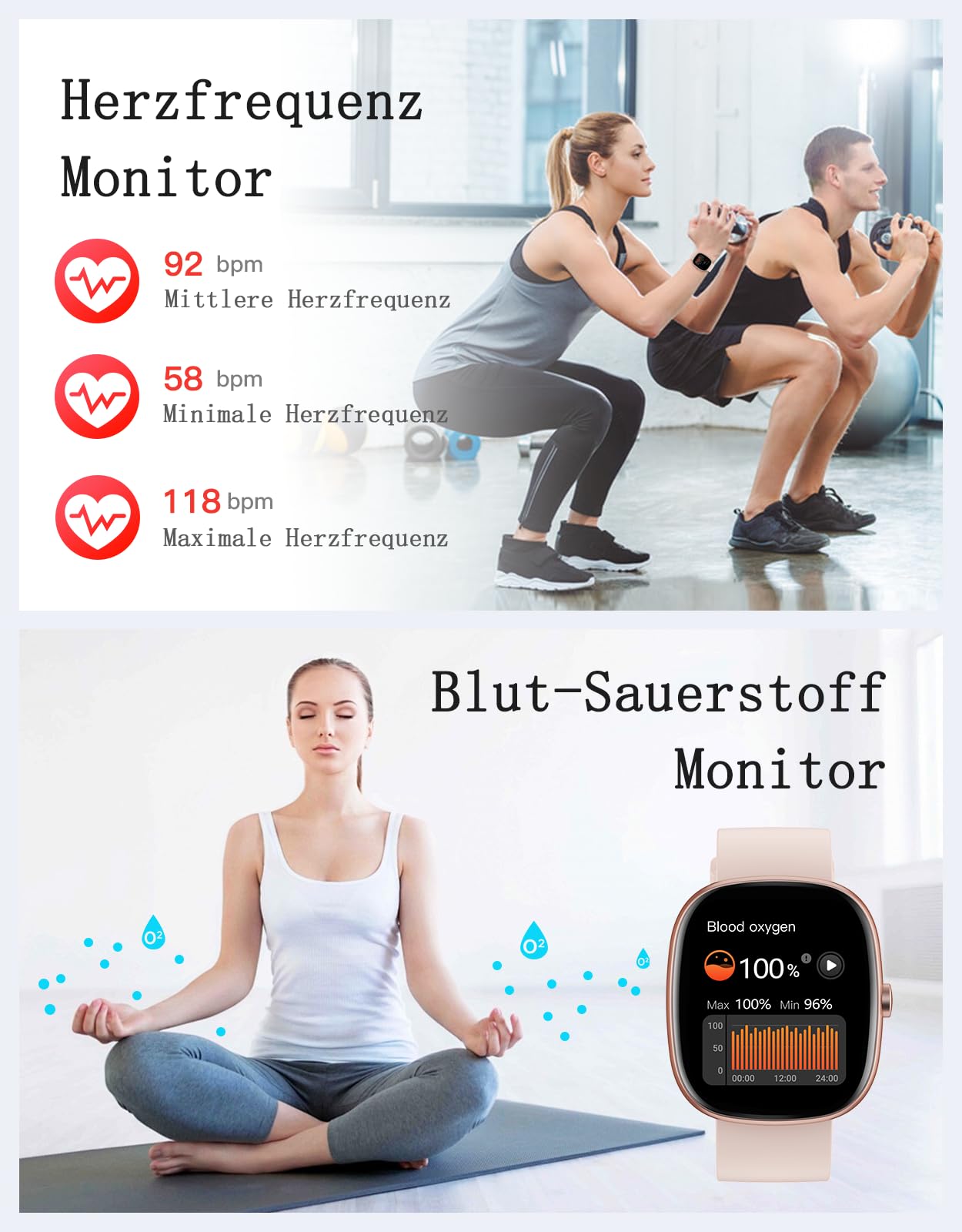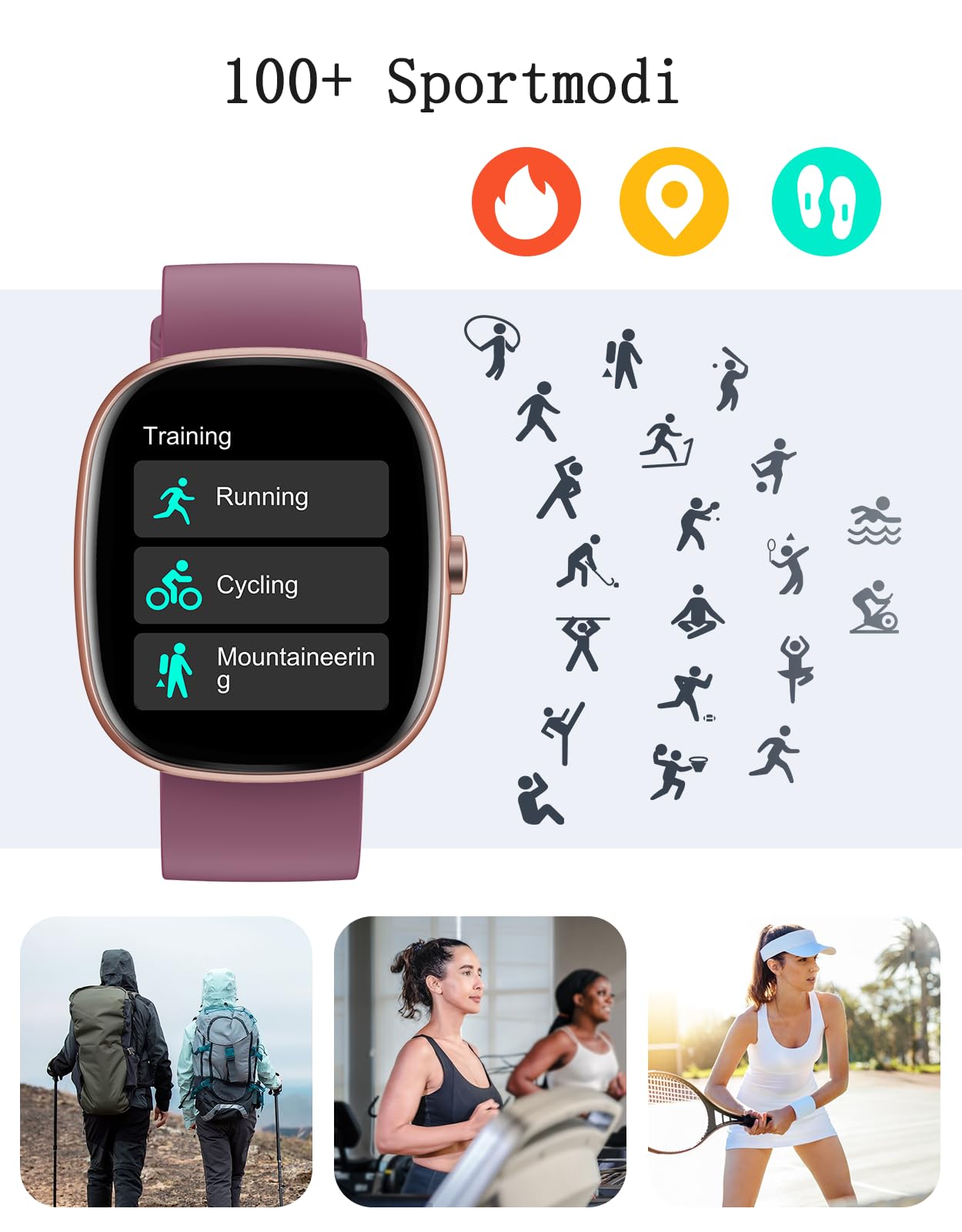 - 【100+ Sportmodi – Für alle, die sich gerne bewegen】 Laufen durch den Stadtpark, Radfahren entlang des Rheins, Yoga nach einem langen Tag oder Wandern in den Alpen – Ihre Smartwatch begleitet Sie bei jeder Aktivität! Mit über 100 Sportmodi werden Ihre Bewegungen automatisch erfasst, egal ob Sie Krafttraining im Fitnessstudio oder ein Outdoor-Abenteuer genießen. Ihre Fortschritte, immer auf einen Blick!