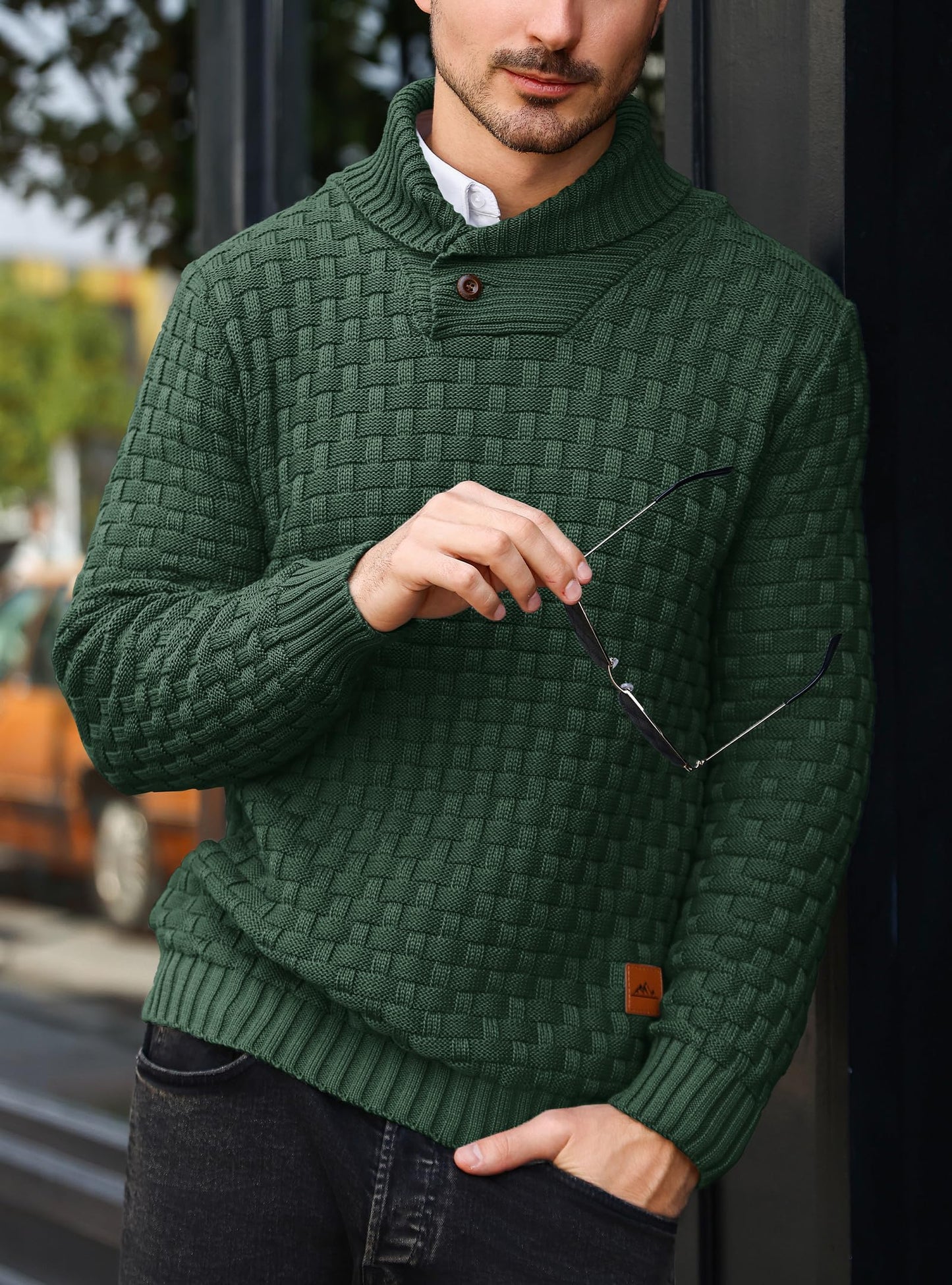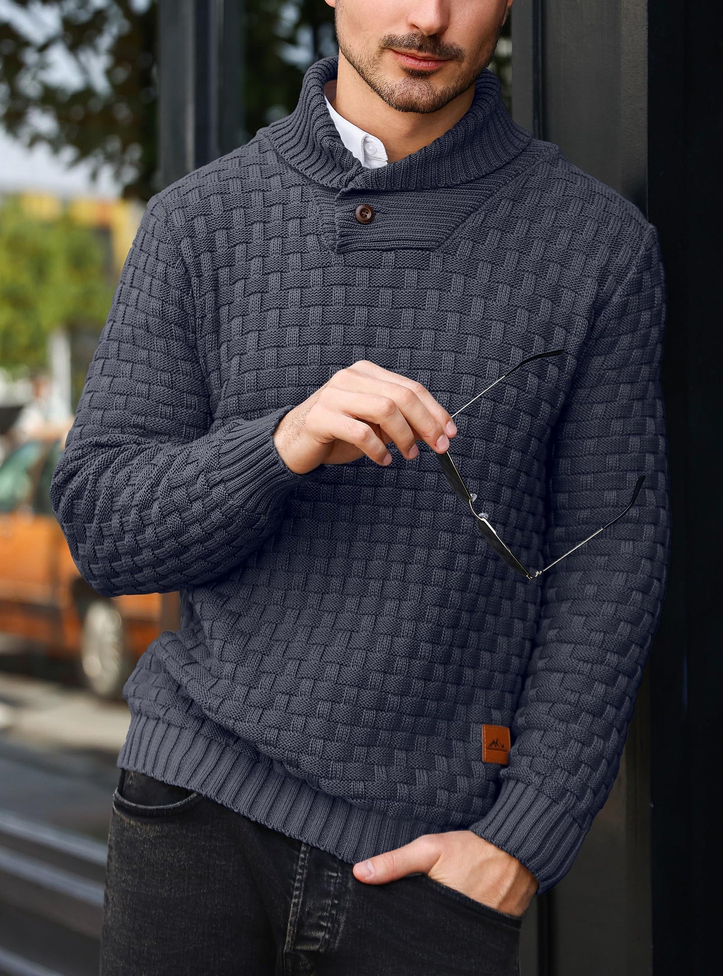 HYPESTFIT Men’s Mock Neck Sweater – Textured Knit Pullover