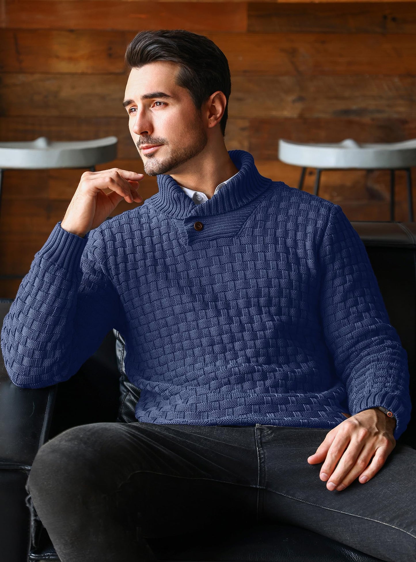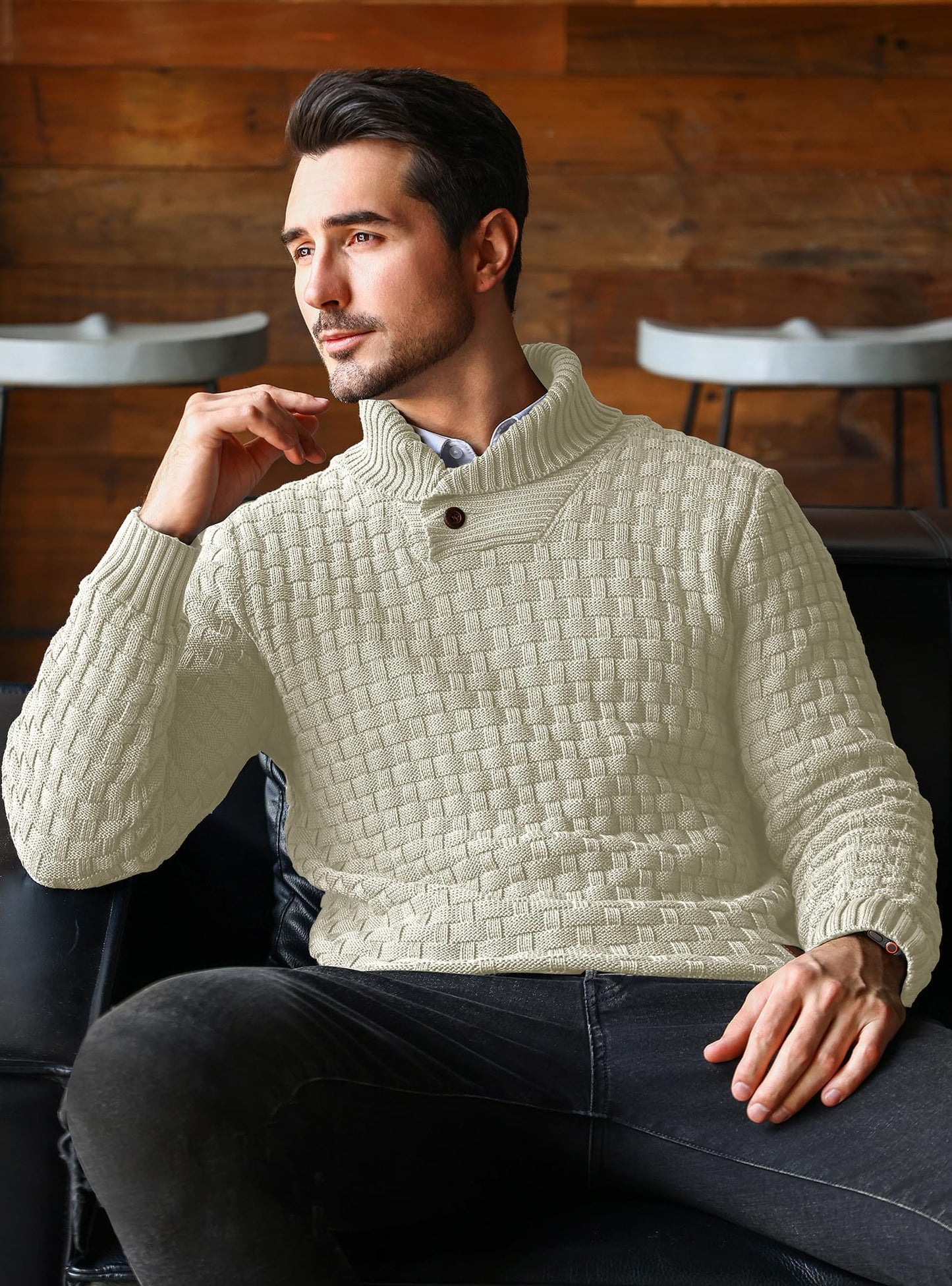 Add timeless style and cozy warmth to your wardrobe with this HYPESTFIT men’s mock neck sweater. Featuring a textured chessboard knit, ribbed details, and a two-button collar, this long-sleeve pullover blends casual elegance with comfort. Ideal for layering or wearing solo during chilly autumn and winter days.