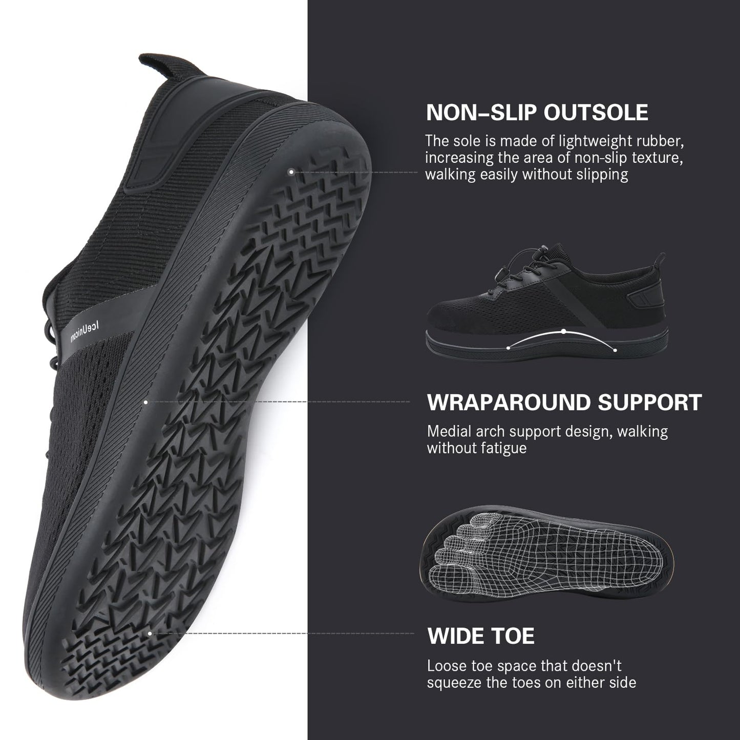 Experience the ultimate in barefoot comfort with the IceUnicorn Barefoot Shoes. These lightweight trail running and walking sneakers are designed to provide maximum freedom of movement. Featuring an extra-wide toe box, they allow your toes to wiggle freely for all-day comfort. The breathable knitted upper ensures your feet stay cool and dry while allowing natural foot movement. The anti-slip rubber sole is flexible and provides excellent grip, offering a barefoot-like experience. Ideal for everyday wear, light outdoor activities, or casual outings, these shoes provide a minimalist design that connects you to the ground beneath your feet.