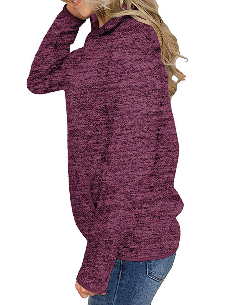 Stay cozy and stylish with the iWoo women’s quarter-zip pullover sweatshirt. Designed with a stand collar, practical side pockets, and soft stretch fabric, this casual jumper is perfect for cool-weather layering. Whether you're out for a walk or relaxing at home, this comfy top pairs effortlessly with jeans or leggings for a laid-back, flattering look.