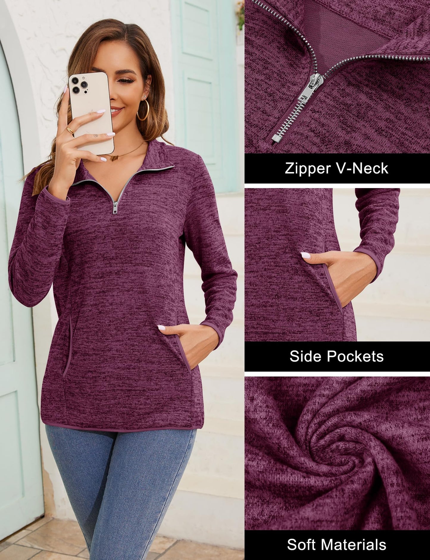 iWoo Women’s 1/4 Zip Pullover Sweatshirt – Casual Long Sleeve Top