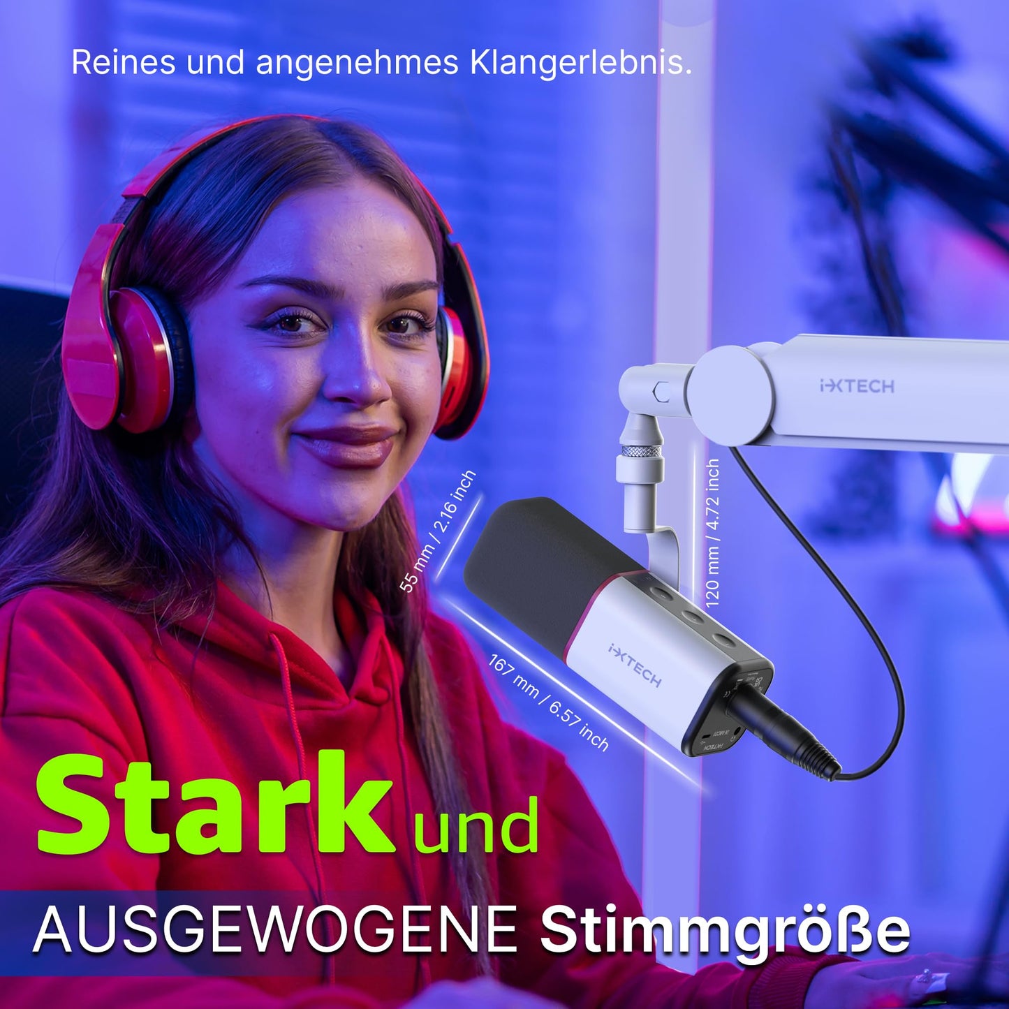IXTECH Dynamisches Mikrofon mit Nierencharakteristik RGB Gesangsmikrofon USB XLR Studiomikrofon Software Stummschalttaste Microphone für Podcasting Streaming Aufnahme Gaming und Voice-Over Schwarz