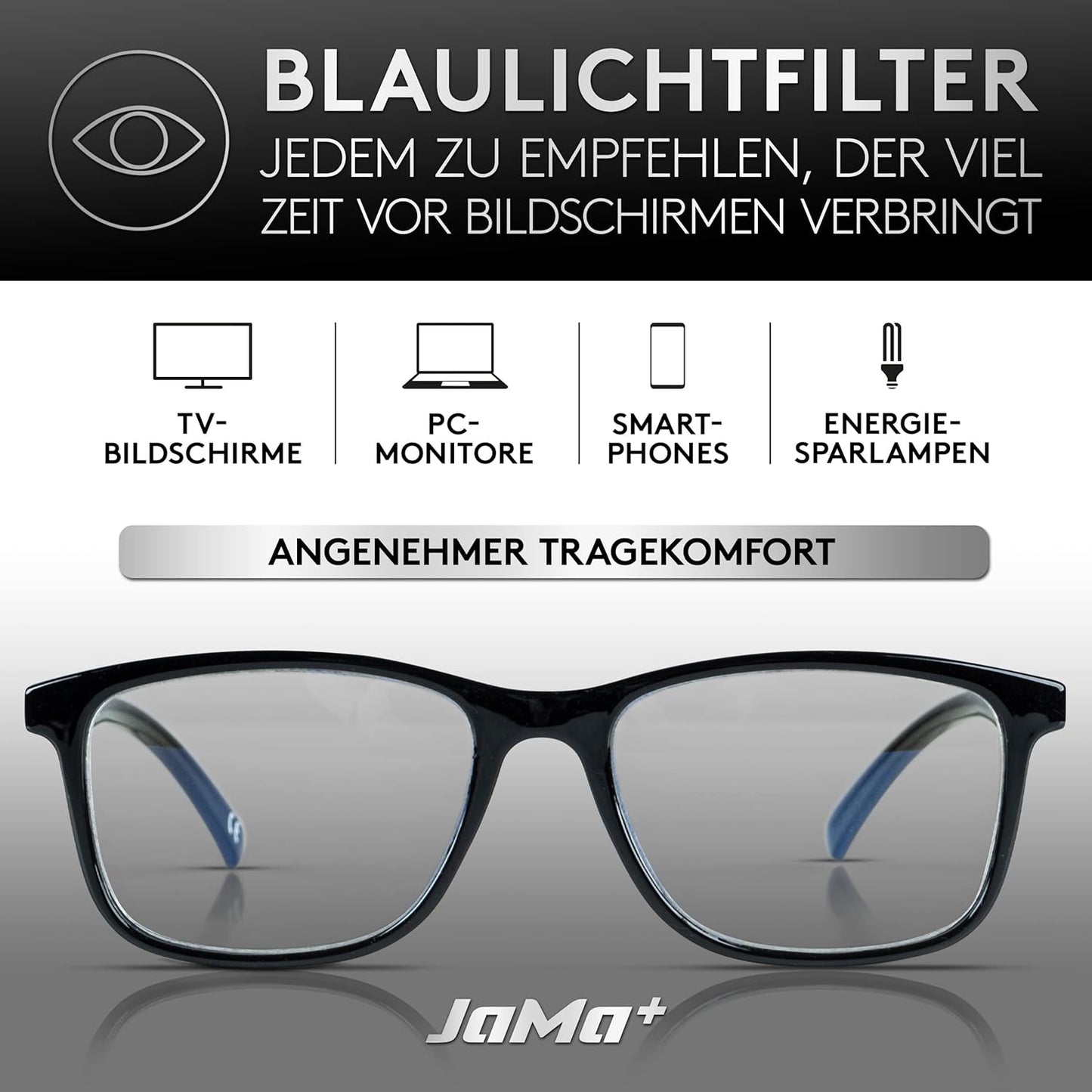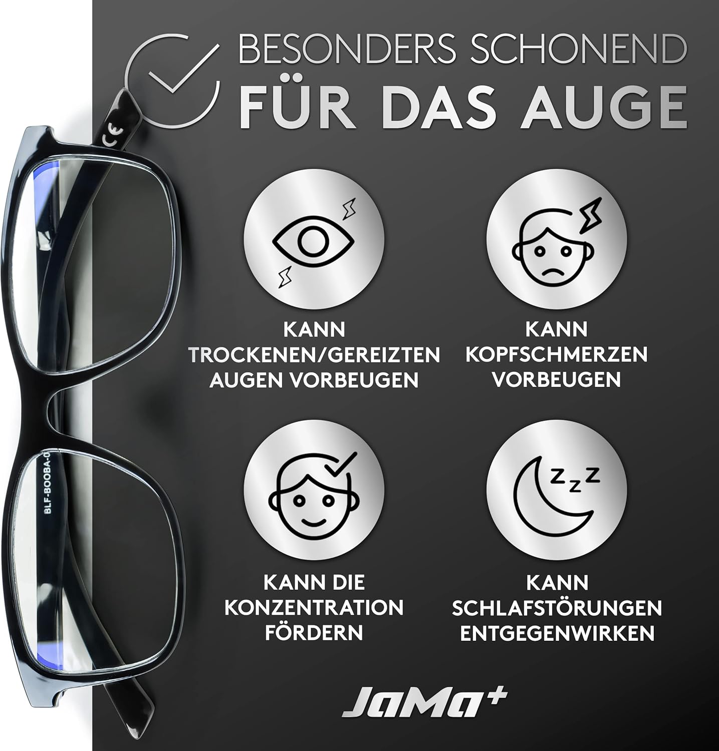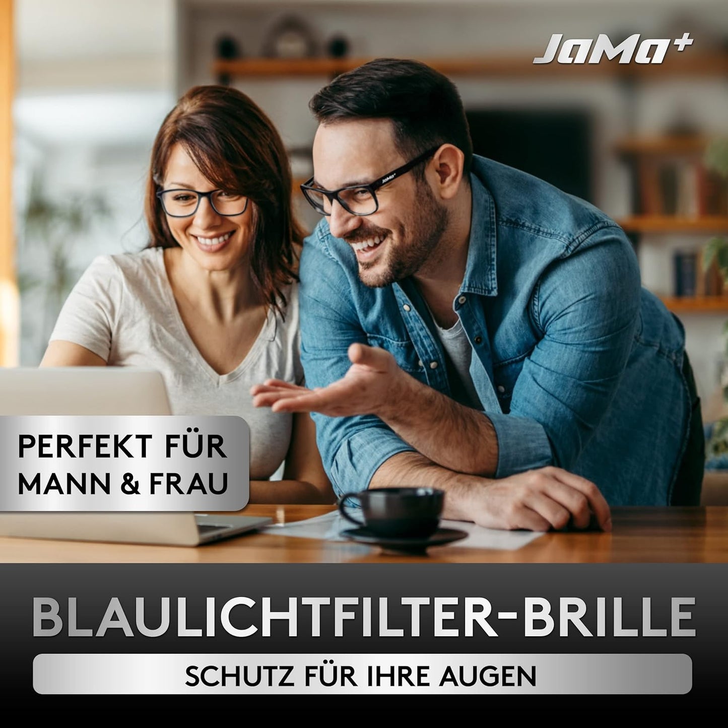 JaMa+ | Das Original | Blaulichtfilter Brille für Damen und Herren - Unisex - inkl. Etui - Blaufilter Brille für PC, TV, Gaming & Handy - UV 400 Schutz - schonend für das Auge