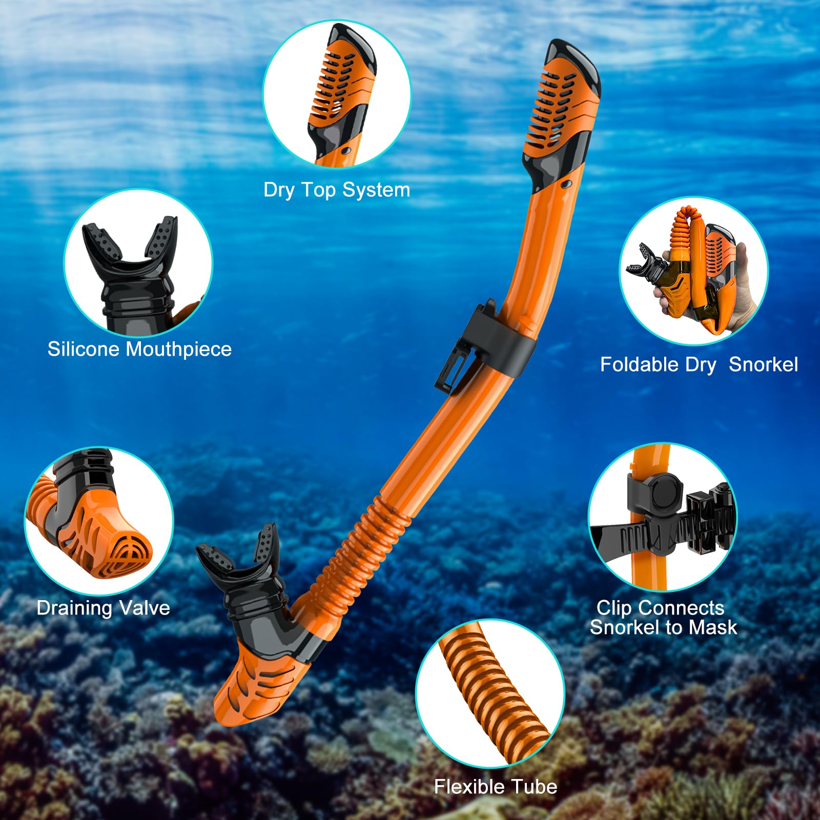 - EINFACH ATMEN & FALTBAR DRY TOP SCHNORCHEL: Unser Schnorchelpaket für Erwachsene ist mit einem voll trockenen Schnorchel ausgestattet, der Luft beim Auftauchen einlässt und automatisch blockiert, um zu verhindern, dass Wasser in den Schnorchel eindringt, wenn Sie sich unterhalb der Wasserlinie befinden. Das Spülventil ermöglicht das einfache Reinigen und Ablassen von Wasser aus dem Schnorchel , was das Schnorcheln lustiger, sicherer und einfacher macht!