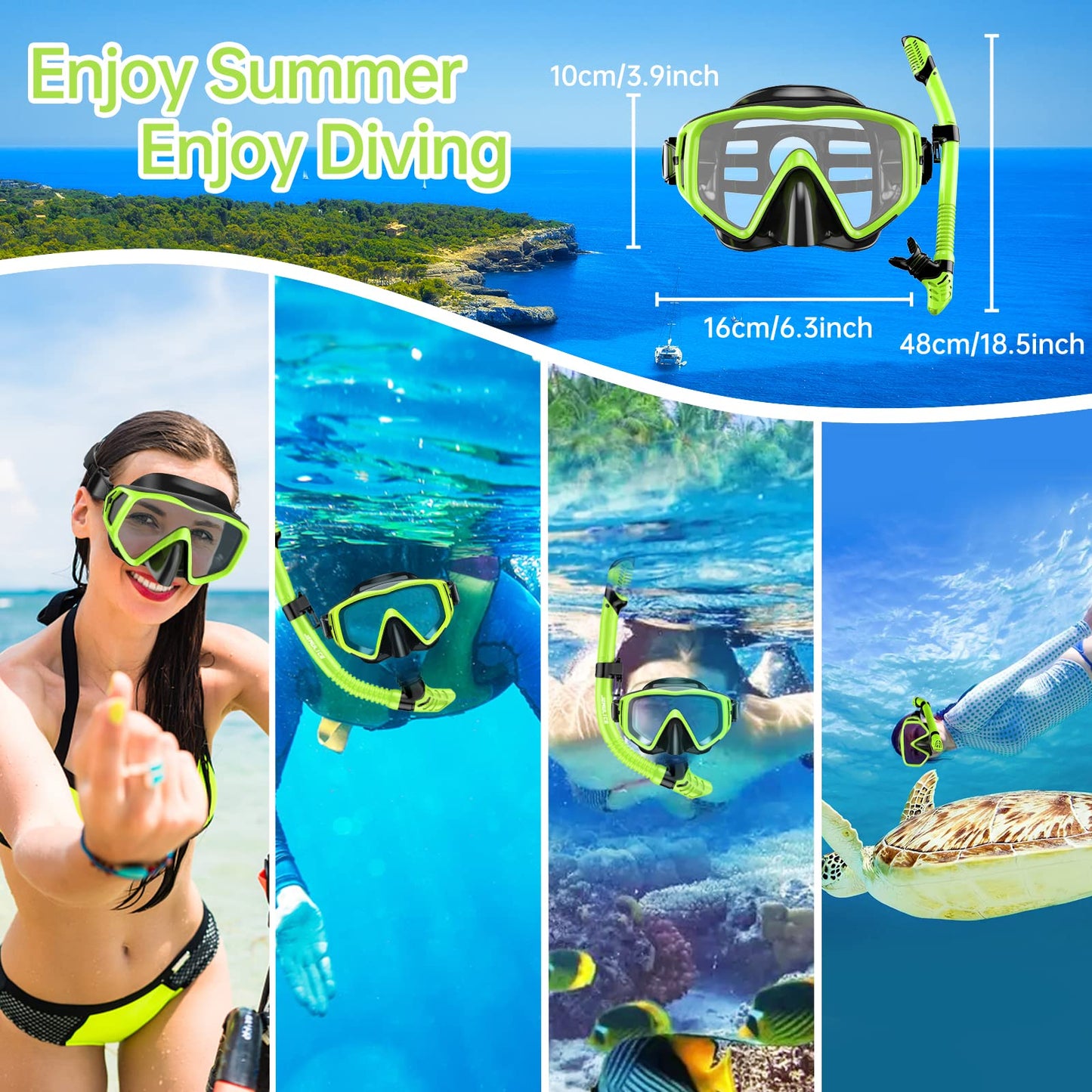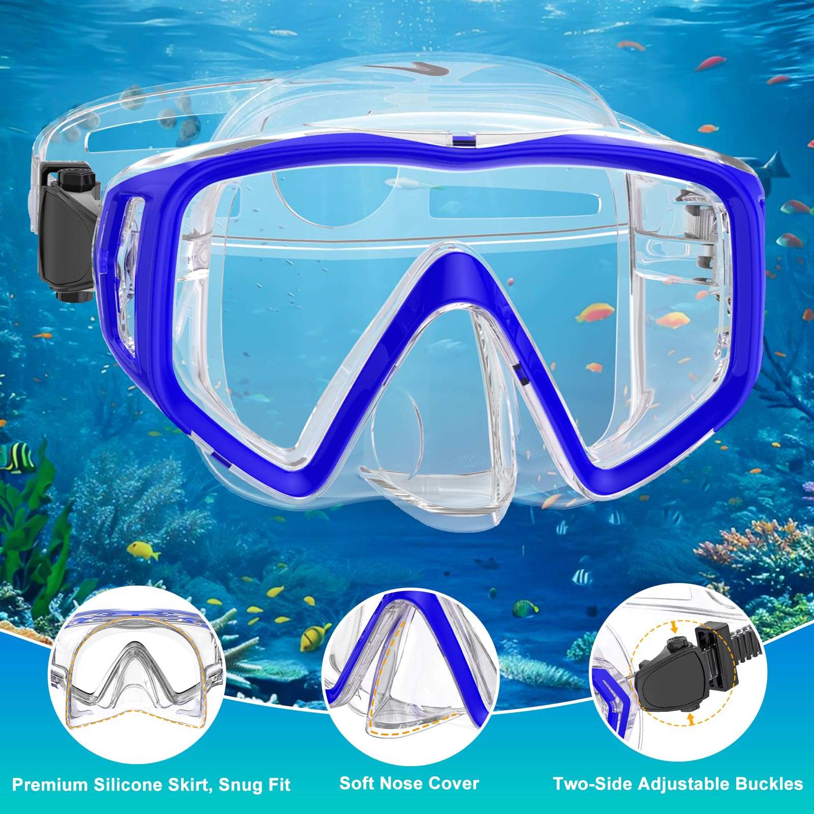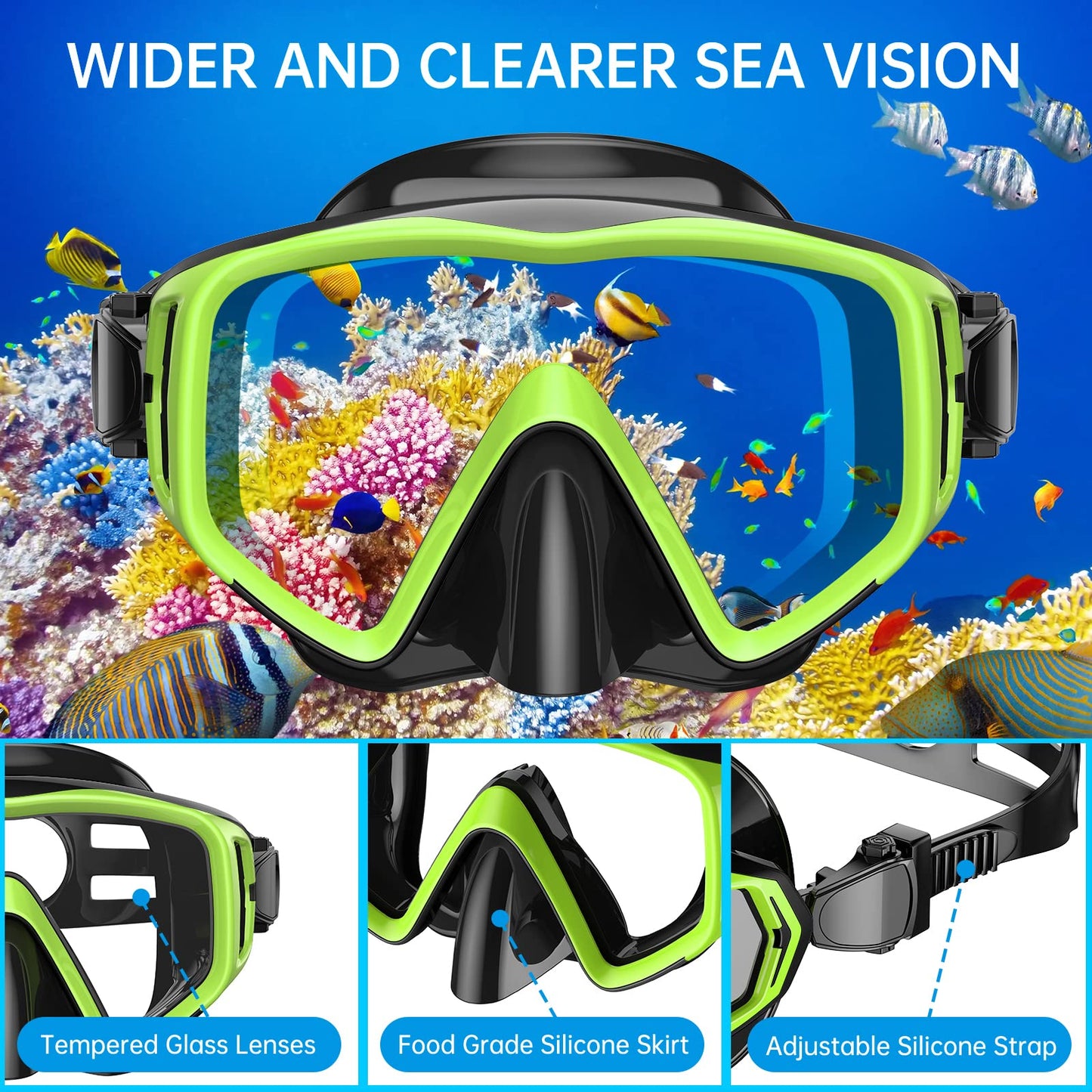 - ANTI-FOG GEHÄRTETES GLAS SCHNORCHELBRILLE: Die Schnorchel-Tauchmaske verfügt über eine Hartglaslinse mit 180° Panoramablick zum Schnorcheln, Schwimmen und Tauchen. Taucherbrille mit ergonomischem Design für maximale Passform mit unterschiedlichen Gesichtsformen, angenehmerem Tragekomfort und stärkerer Versiegelung; Der Rock besteht aus weichem, flüssigem, transparentem Silikon in Lebensmittelqualität und bietet Ultra-Sichtbarkeit. Sie werden ein kristallklares Unterwassererlebnis haben!