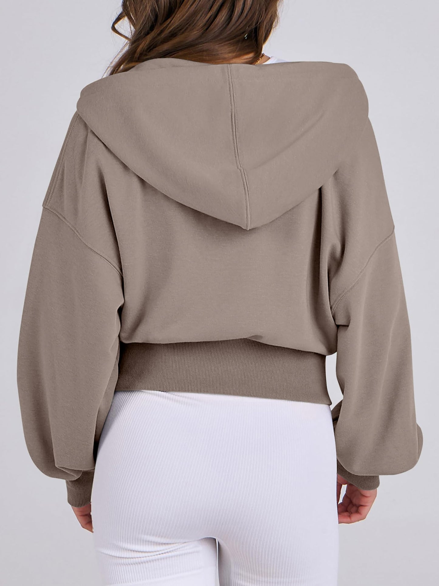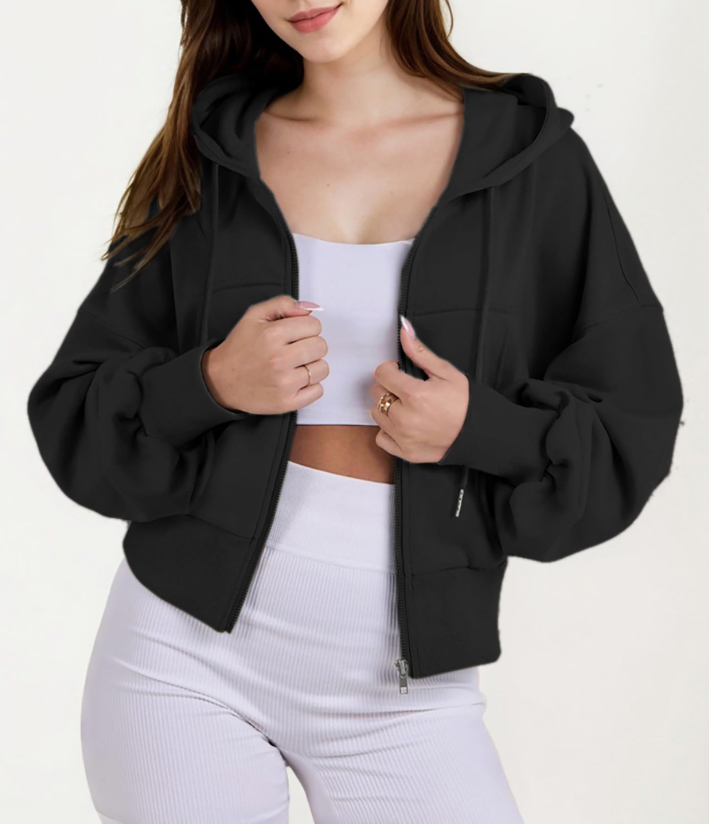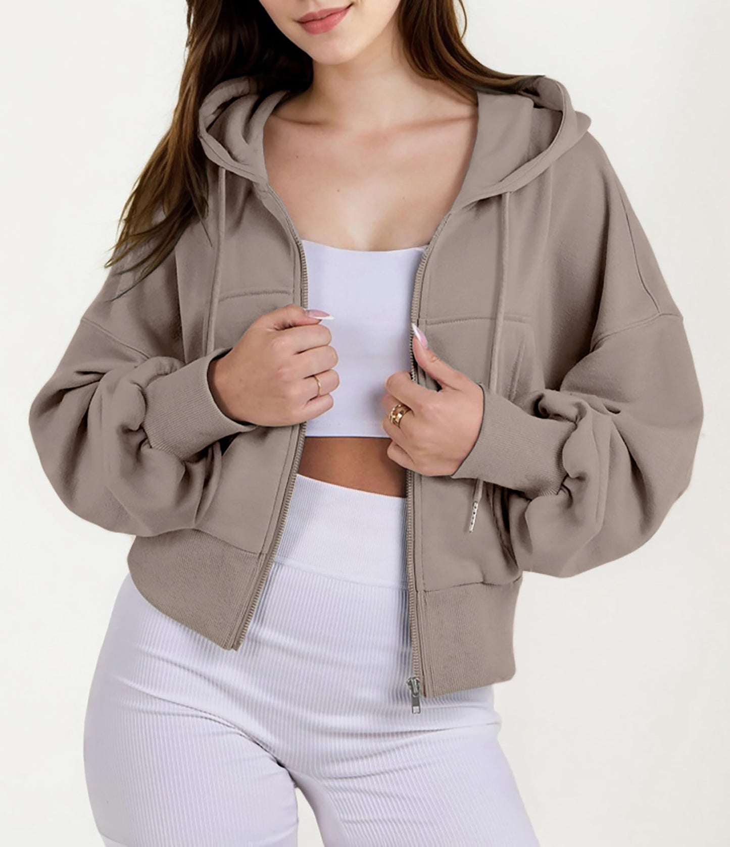 Jhsnjnr Women’s Cropped Zip-Up Hooded Sweat Jacket