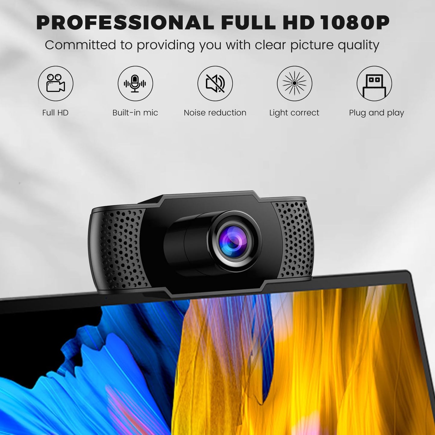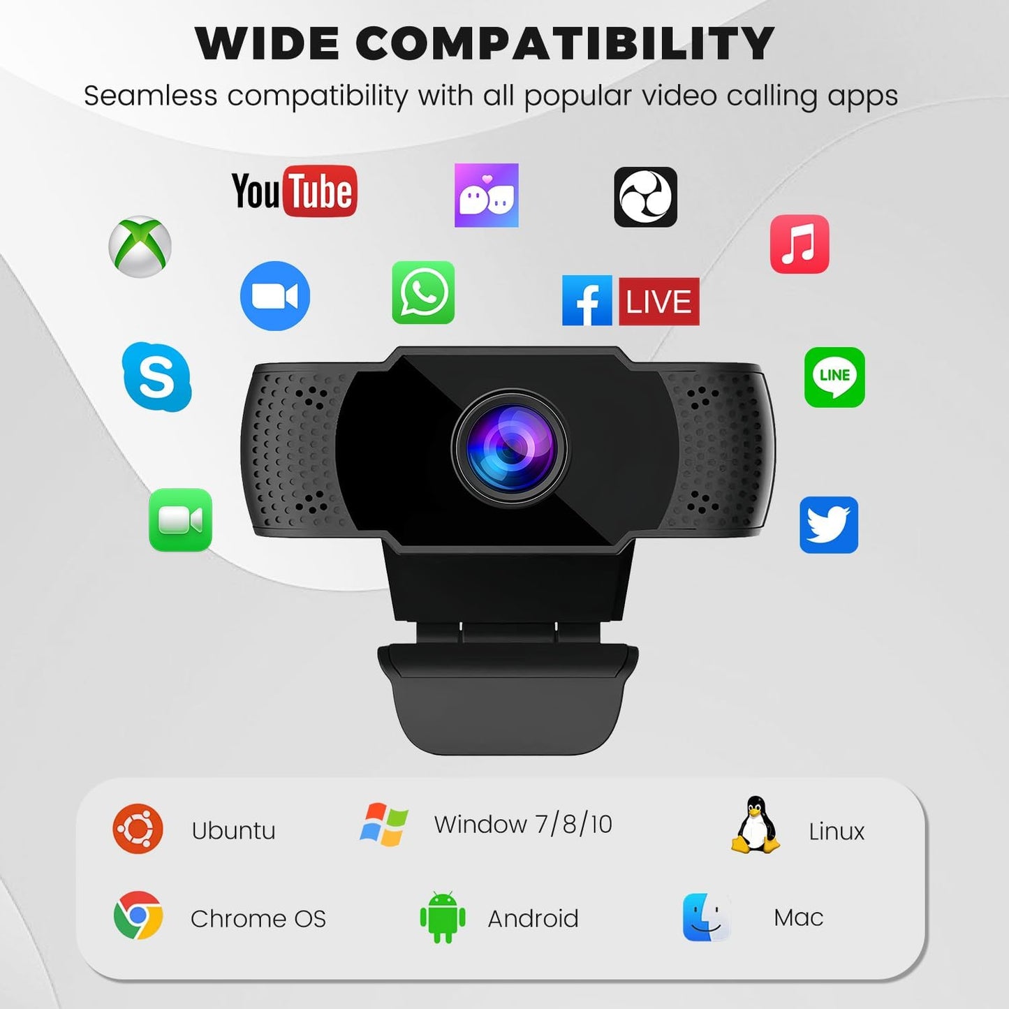 kacylzom Full HD Webcam 1080P mit Mikrofon,Automatischer Lichtkorrektur, Plug & Play, für Laptop, PC, Desktop, für Live-Streaming, Videoanruf, Konferenz, Online-Unterricht,Spiel