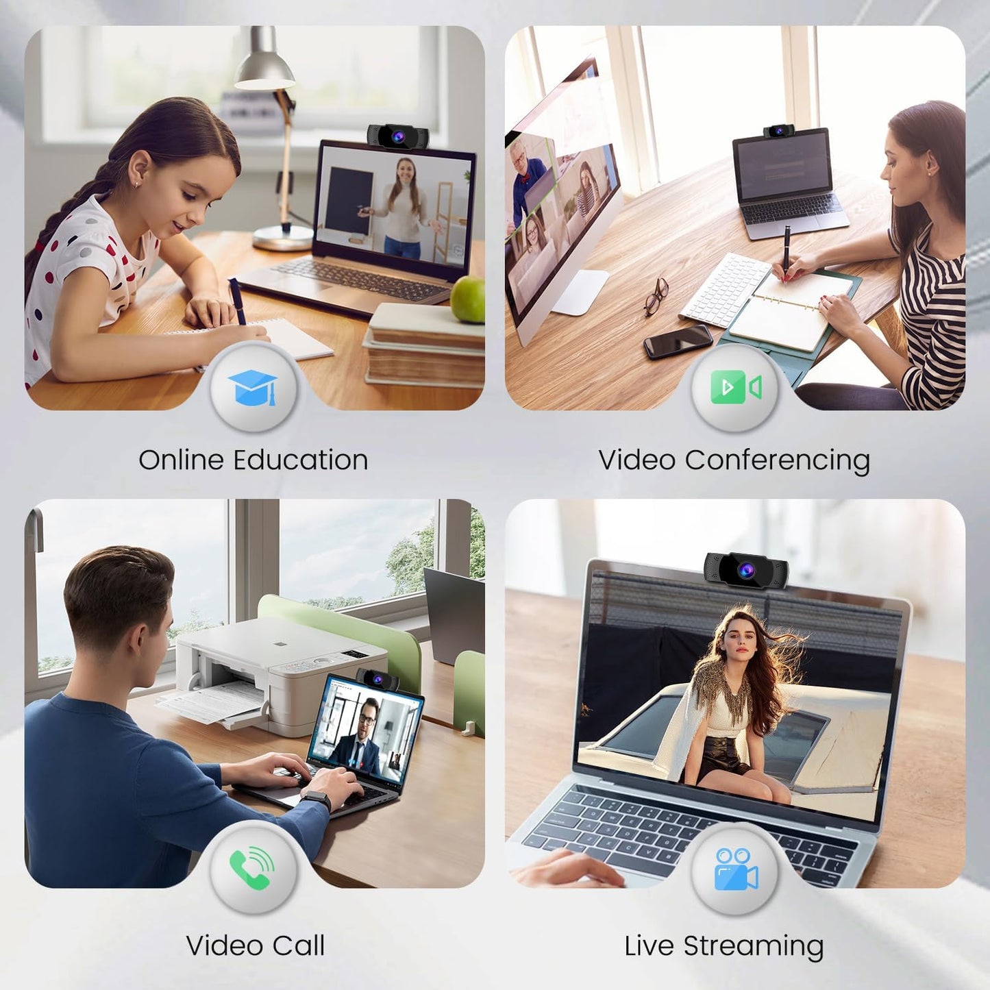 - Full HD 1080P Webcam - Angetrieben von einem 1080p FHD 1/3"2MP Sensor, produziert die Webcam außergewöhnlich scharfe und klare Videos mit einer Auflösung von bis zu 1920 x 1080 mit 30fps. Das 5-fach entspiegelte Objektiv sorgt für ein scharfes Bild bei festen Entfernungen und ist zwischen 19,6 Zoll und 13 Fuß optimiert, wodurch es ideal für fast alle Innenräume geeignet ist.
