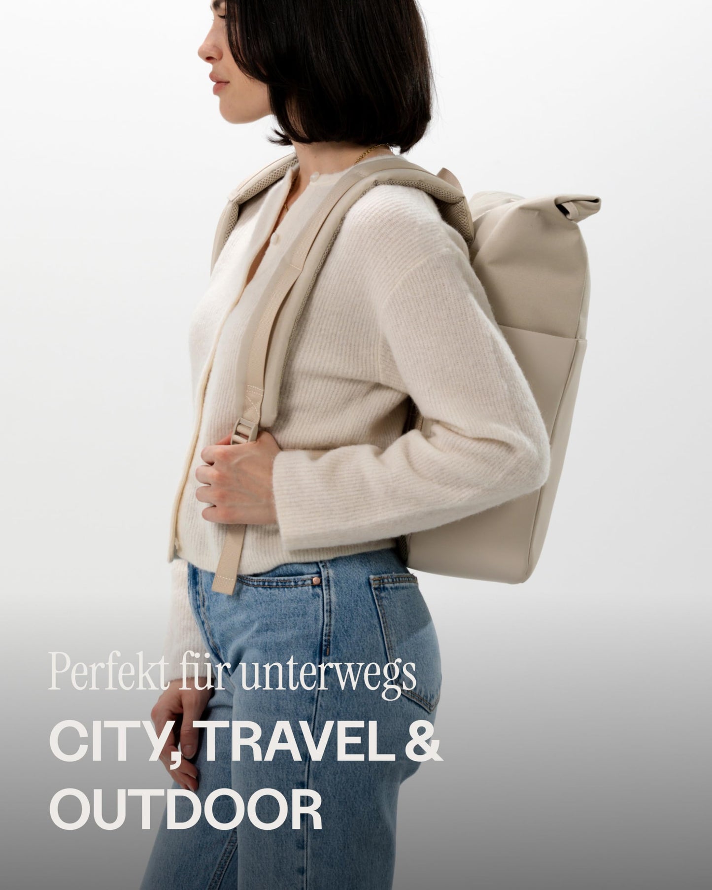 - Design: Minimalist rolltop with secure zipper closure
