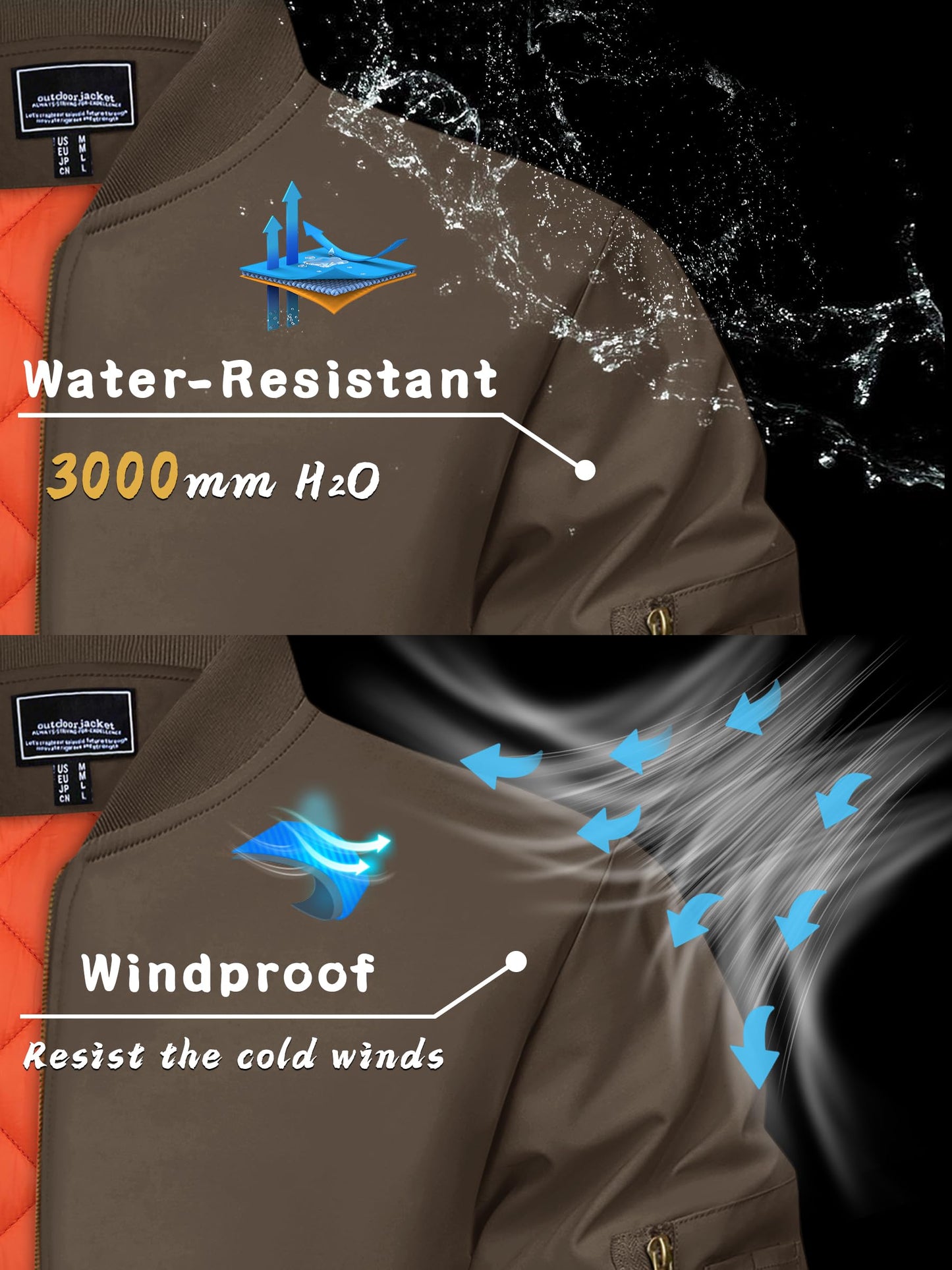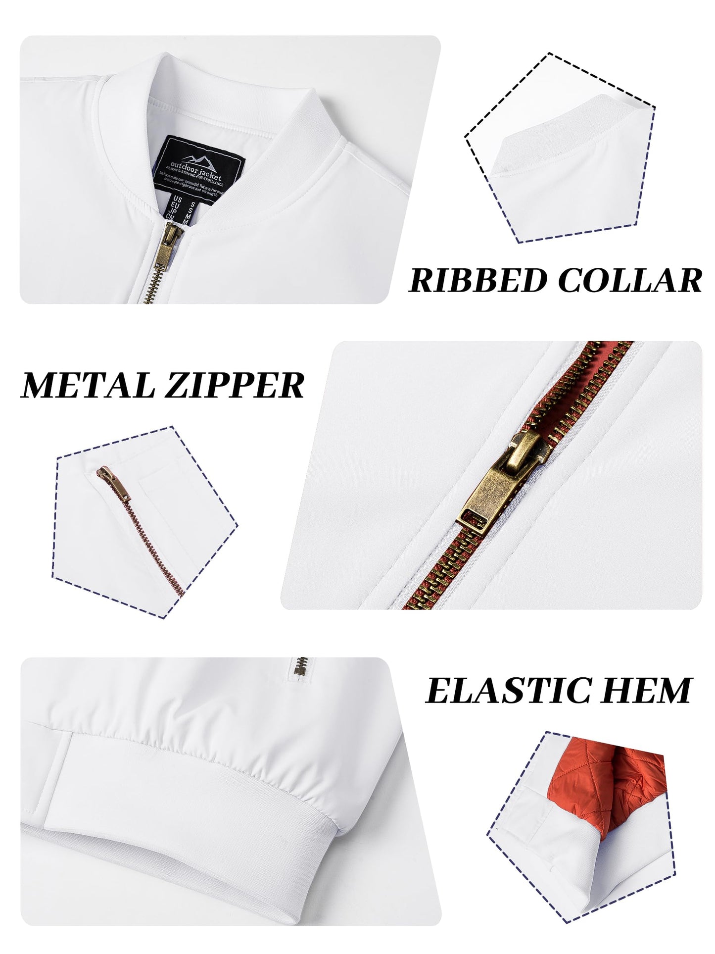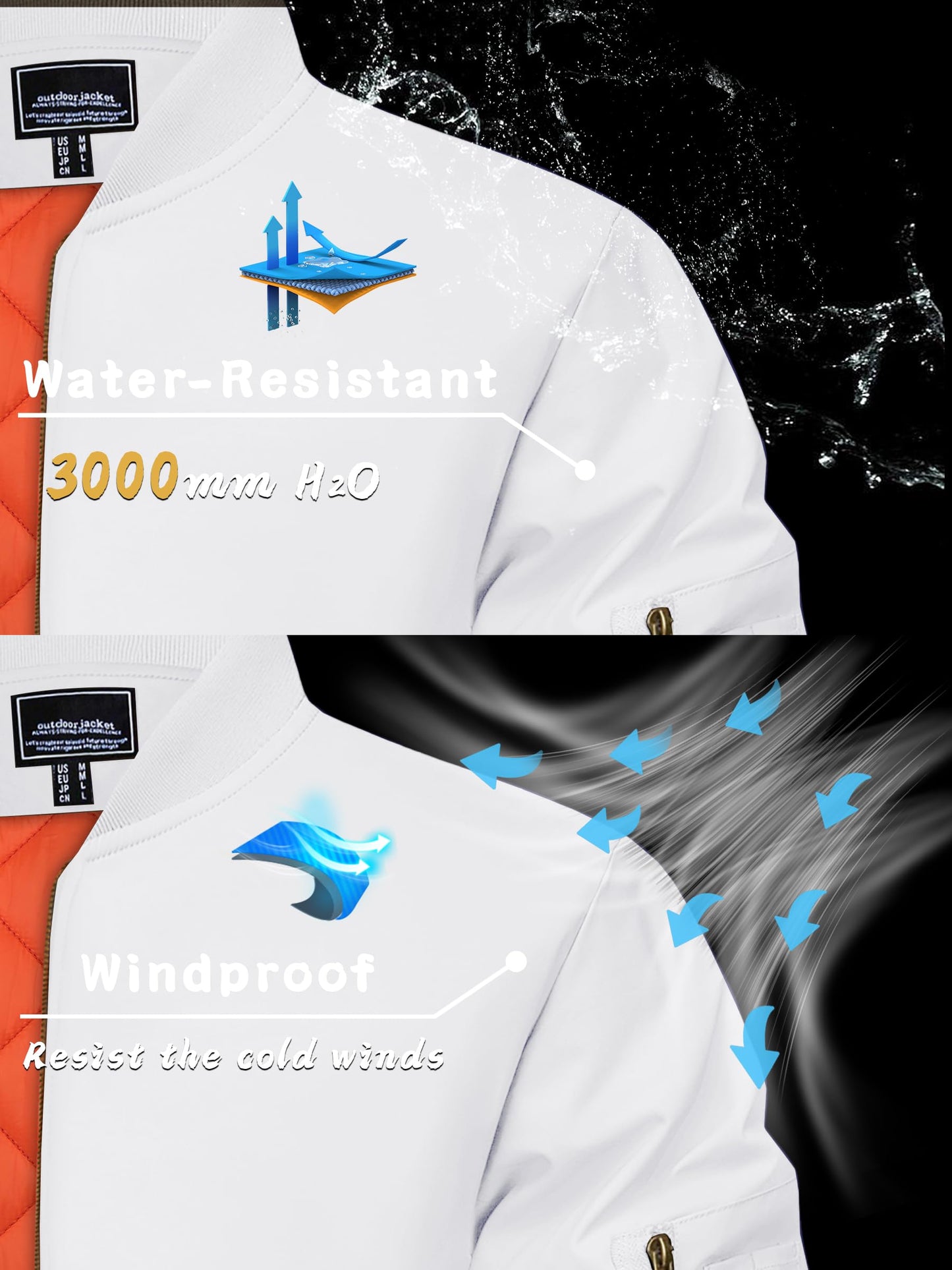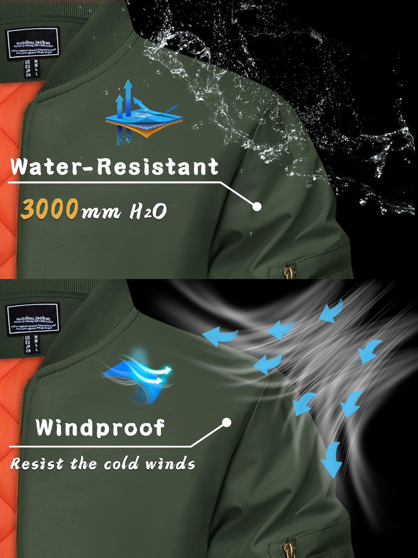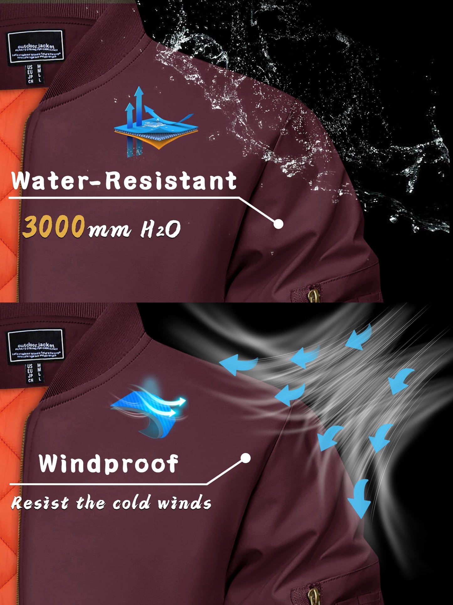 - Bomber-Style Collar: Classic bomber design with a stand-up collar for added protection against the wind