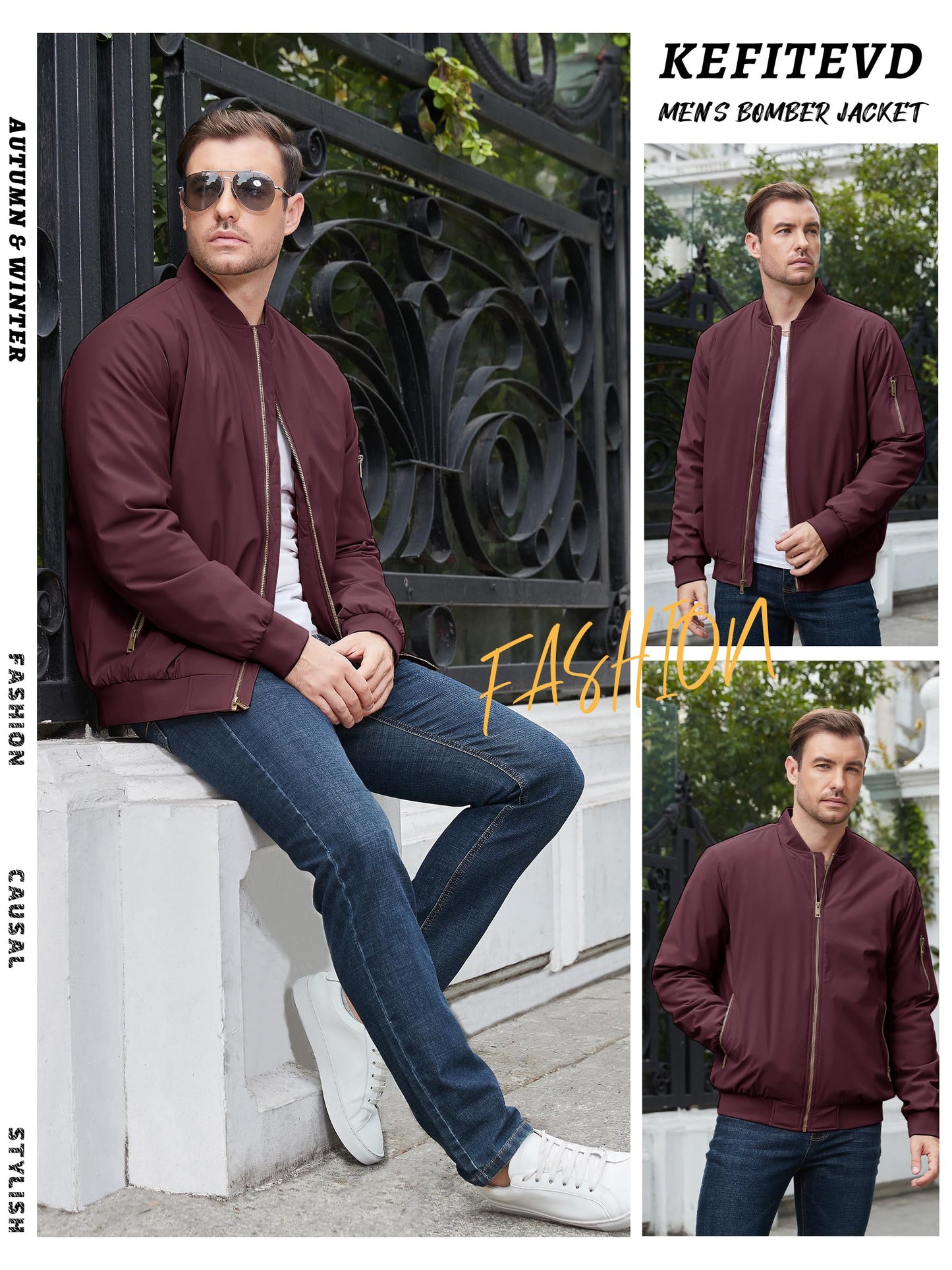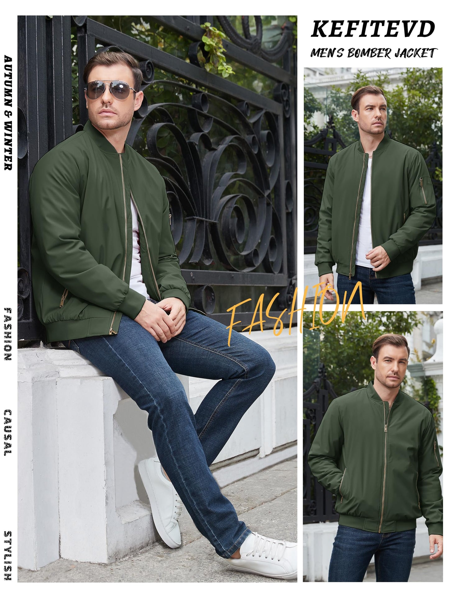 KEFITEVD Men’s Bomber Jacket – Casual Windproof Zip-Up Jacket