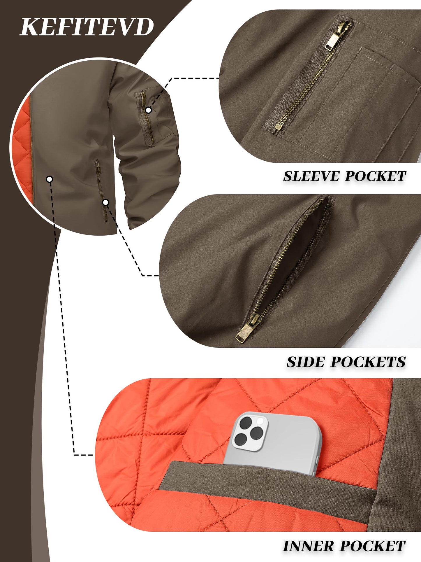 The KEFITEVD Men’s Bomber Jacket is a stylish and practical choice for cooler weather, designed with a classic bomber-style collar and padded polyester insulation. Whether you're heading out for a casual day, riding a motorcycle, or fishing, this windproof jacket offers warmth and comfort. Featuring multiple functional pockets and a vintage-inspired design with a bold orange lining, it's the perfect jacket for the spring, fall, and early winter seasons.