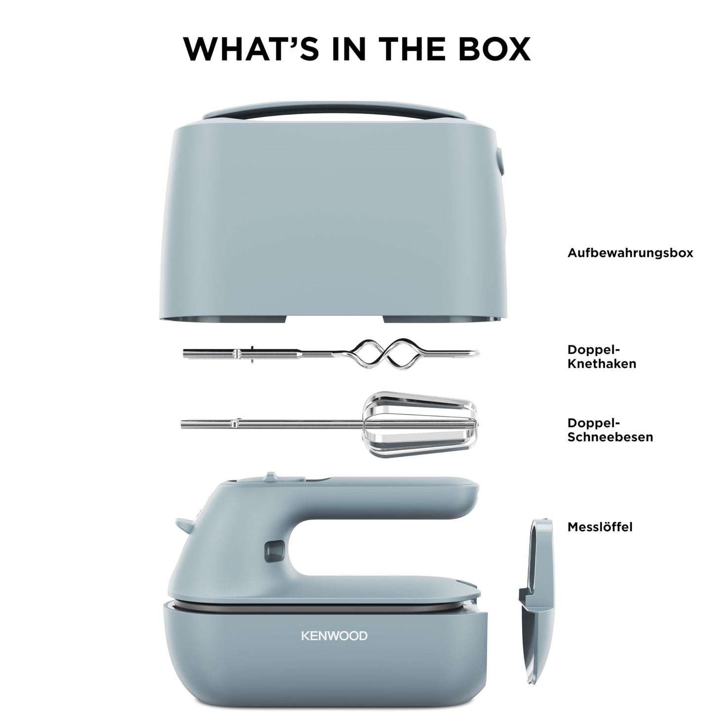 Kenwood MultiPro Go FDP22.130GY, Kompakt-Küchenmaschine nur 30cm hoch, zum Schneiden, Reiben, Pürieren und Teig Kneten, Express-Serve, 1,3 l Arbeitsbehälter, 650 W, Blau