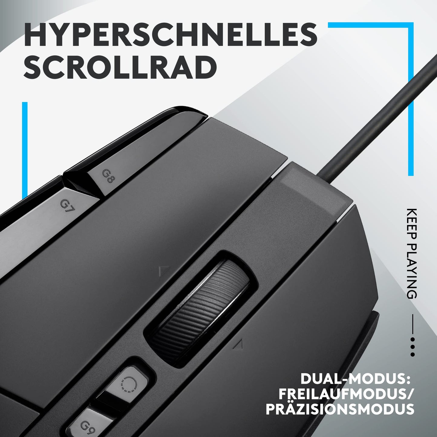 - Neu gestaltetes, hyperschnelles Scrollrad: Zwischen hyperschnellem Freilauf und Rastmodus wechseln und das Rad nach links und rechts neigen, um zwei personalisierbare Steuerungen zu erhalten