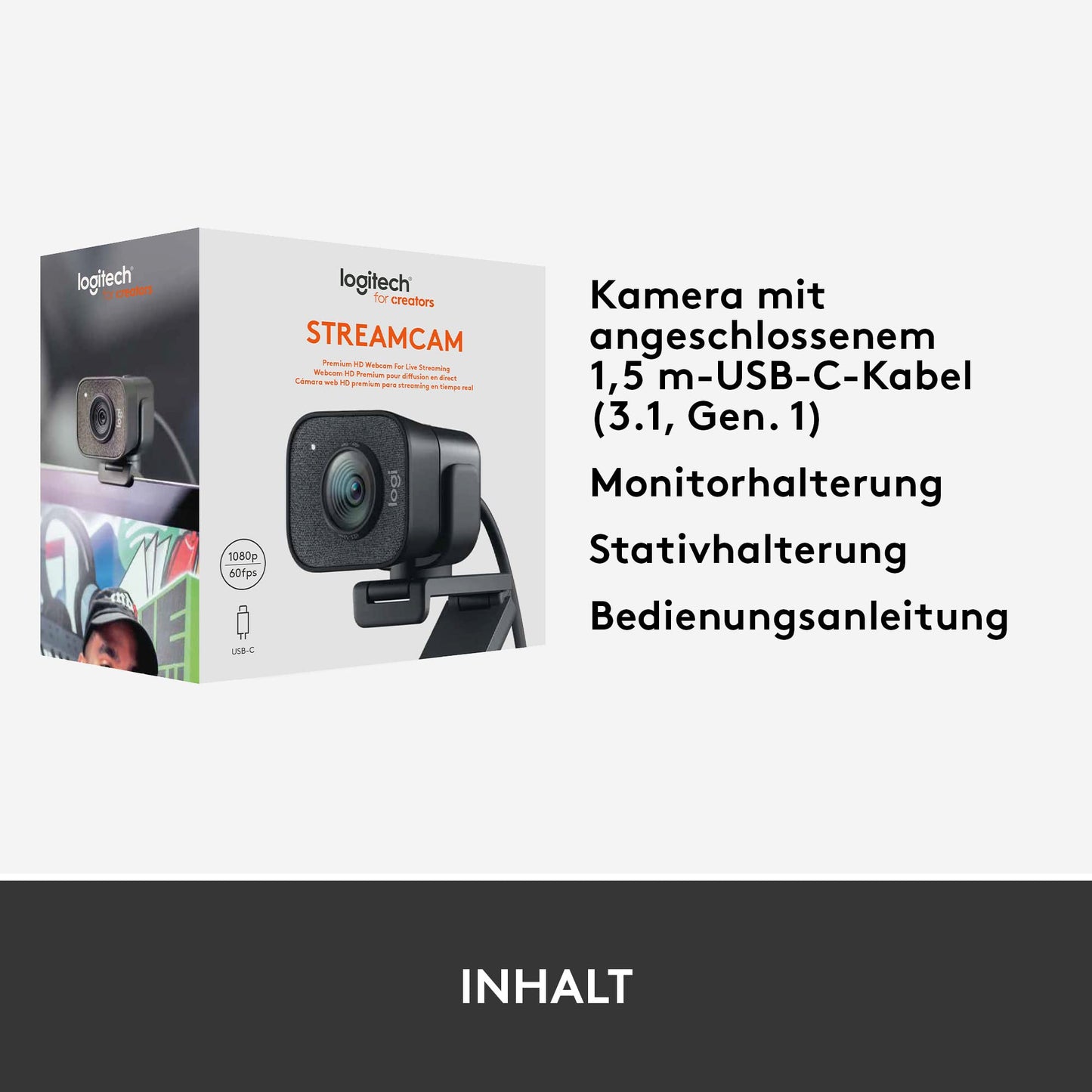 Logitech StreamCam - Livestream-Webcam für Youtube und Twitch, Full HD 1080p, 60 FPS, USB-C Anschluss, Gesichtserkennung durch Künstliche Intelligenz, Autofokus, vertikales Video - Graphit, Schwarz